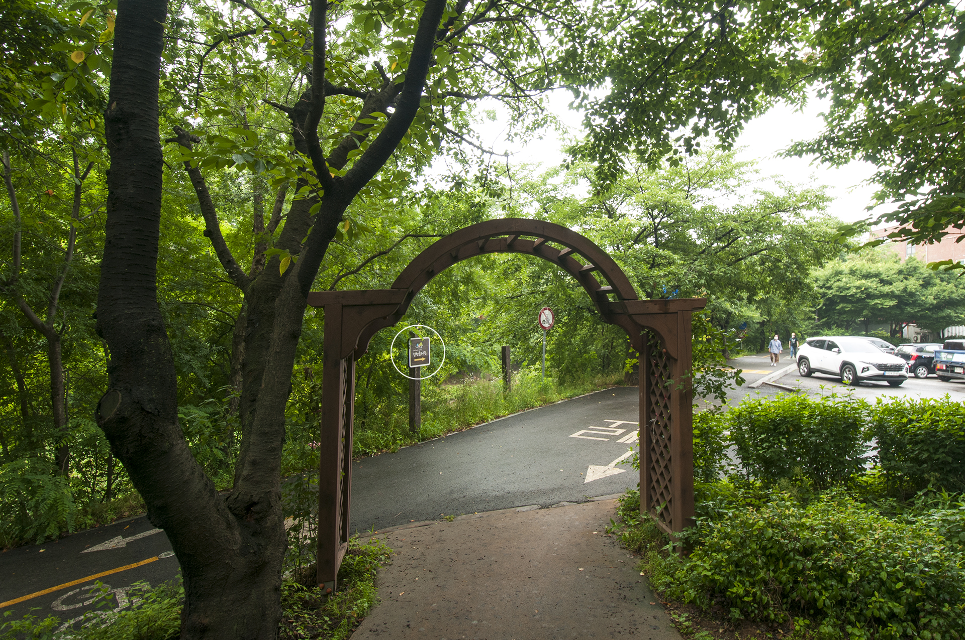 좌측길은 인천대공원으로 갈수 있는 도로로 나가는 쪽문이고, 전방으로 둘레길이 길게 펼쳐진다.