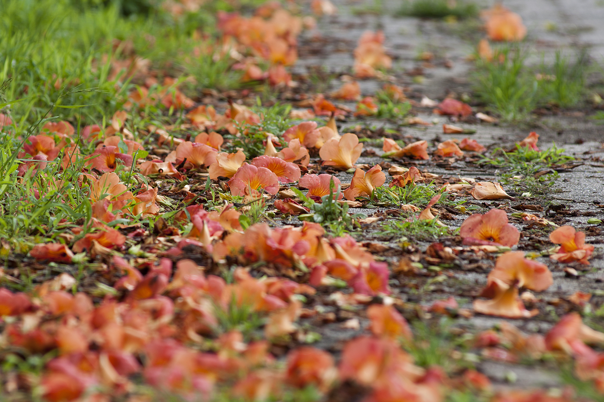 장마철 즈음에 피다 보니 폭우라도 쏟아지면 꽃송이가 한꺼번에 떨어지기도 한다.