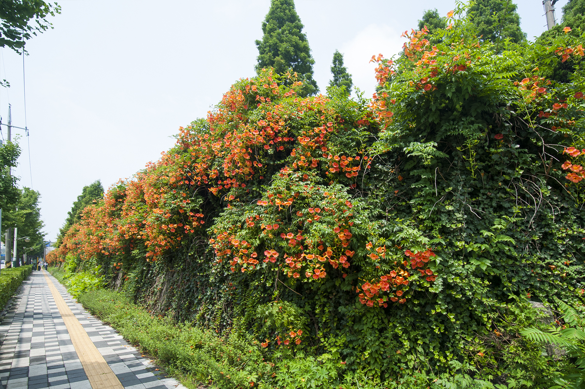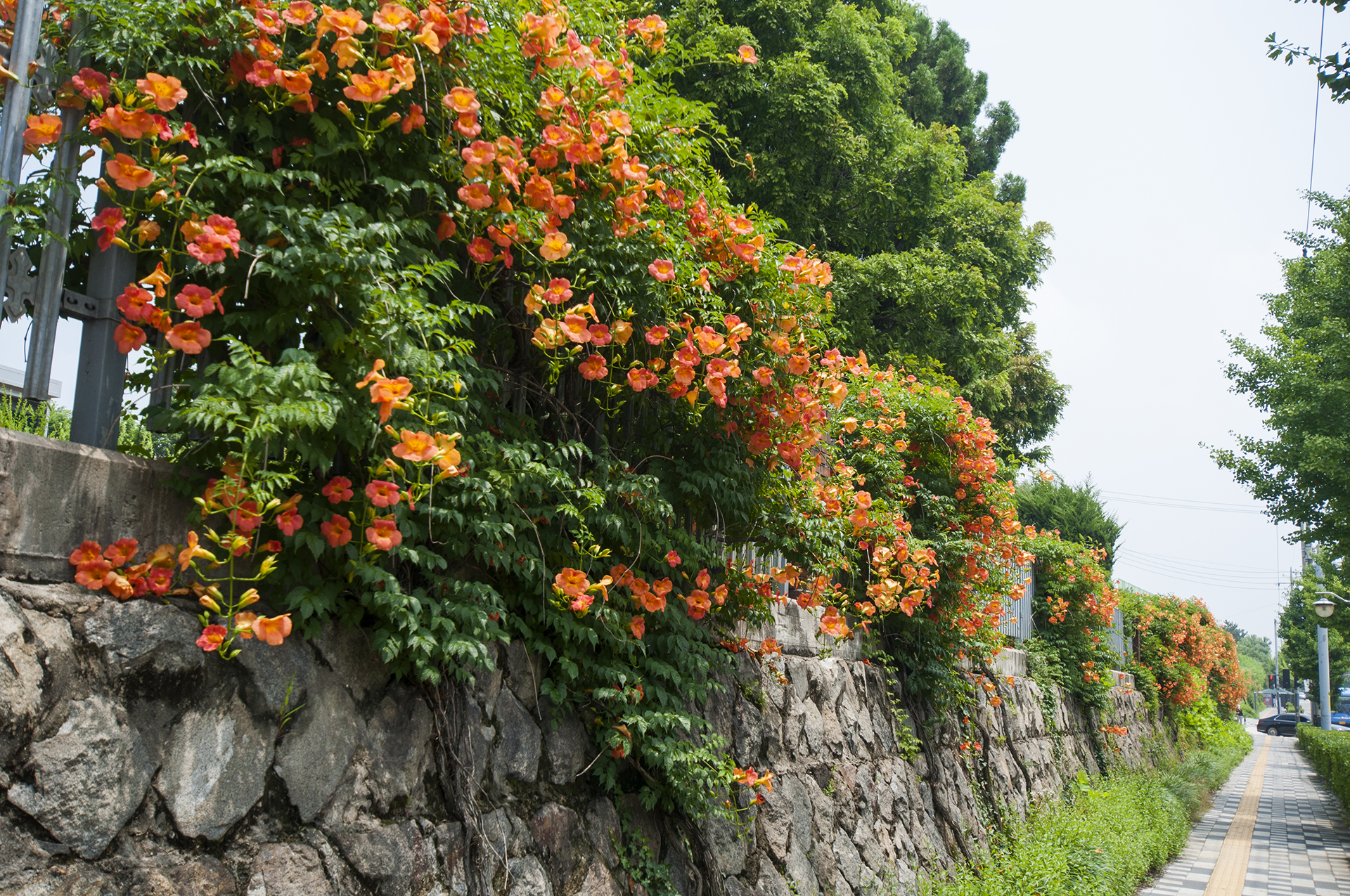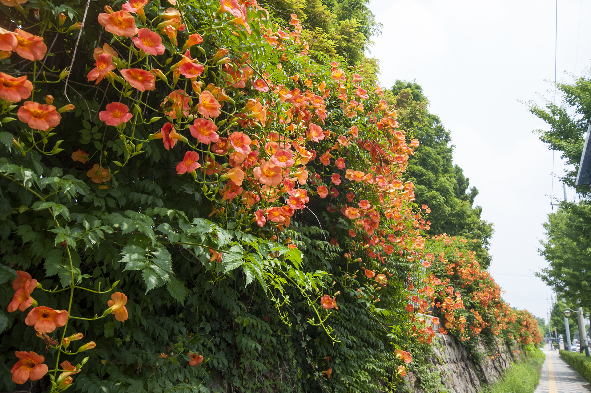 부천시 도로에서는 가로등 옆에 능소화를 심은 모습을 흔하게 볼 수 있을 정도다.