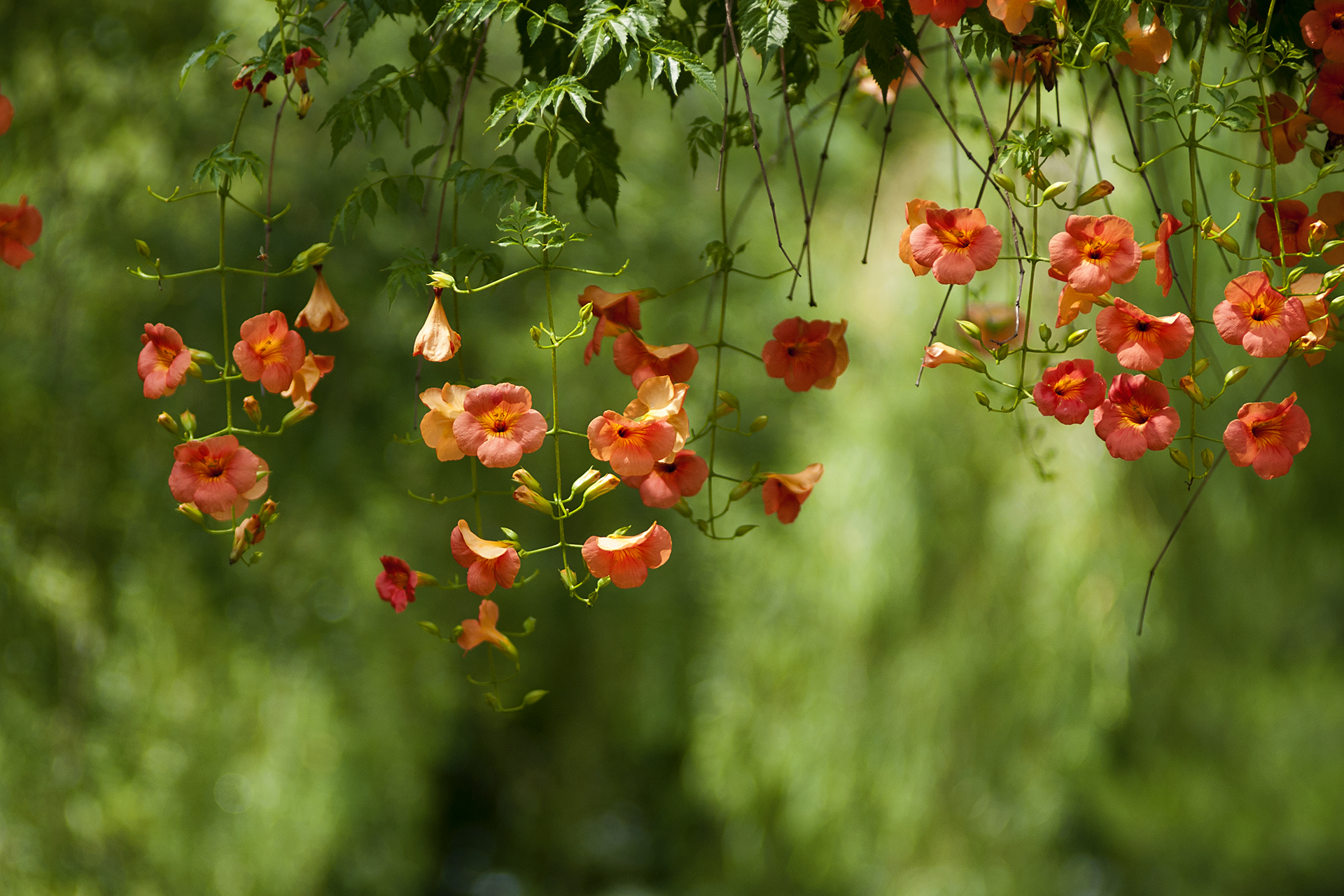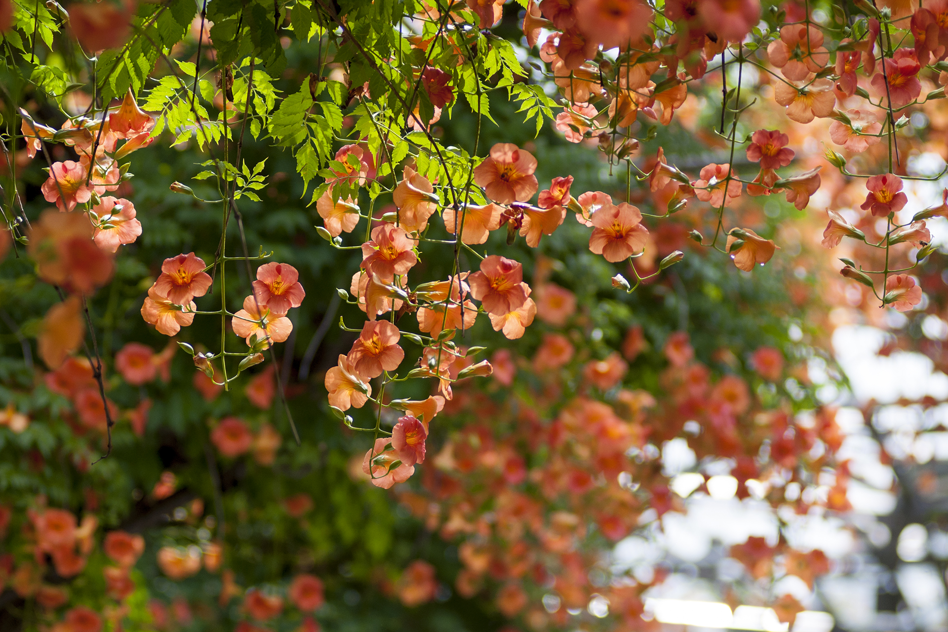 능소화는 햇빛을 잘 받아야 꽃이 예쁘고 오래 간다고 한다.