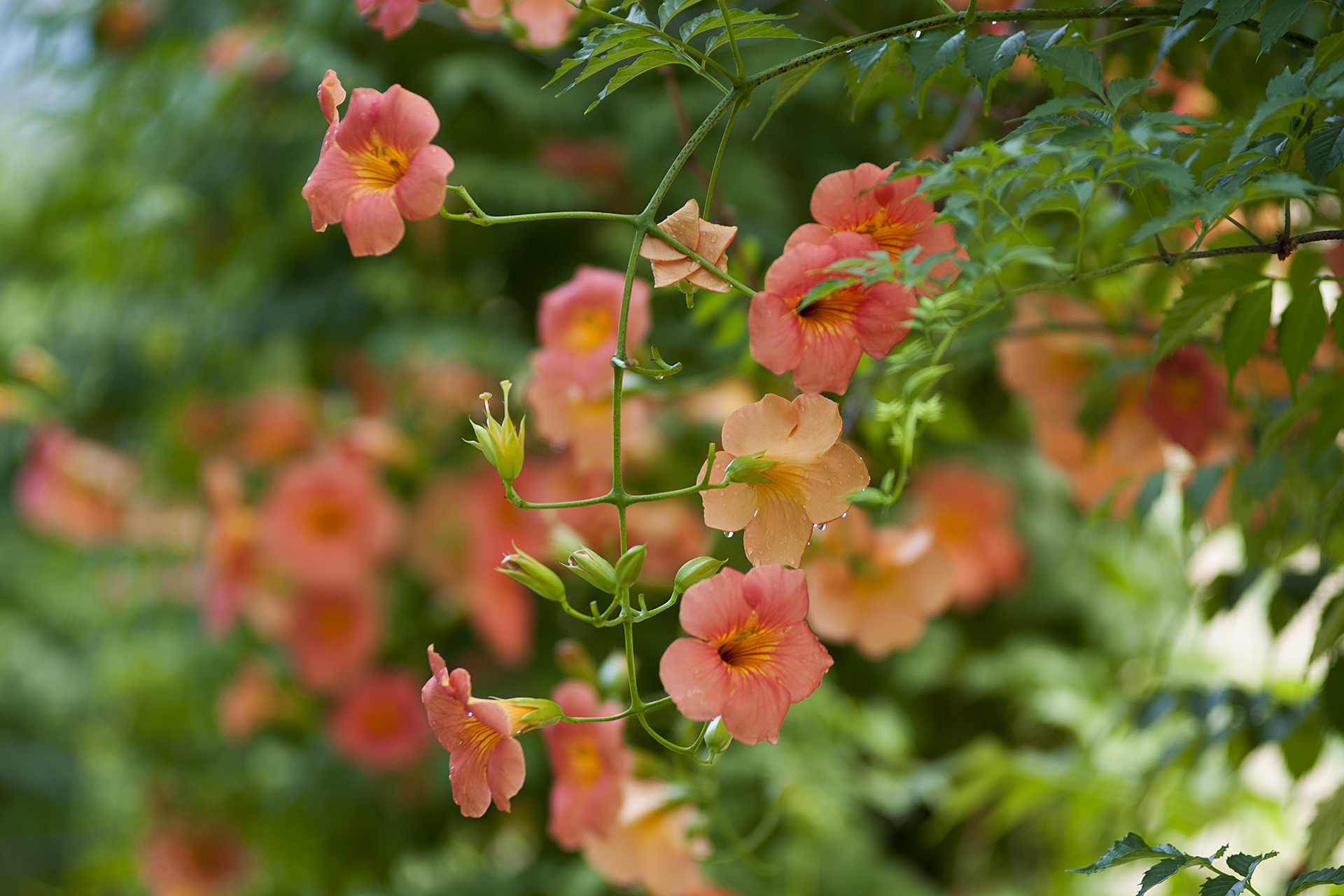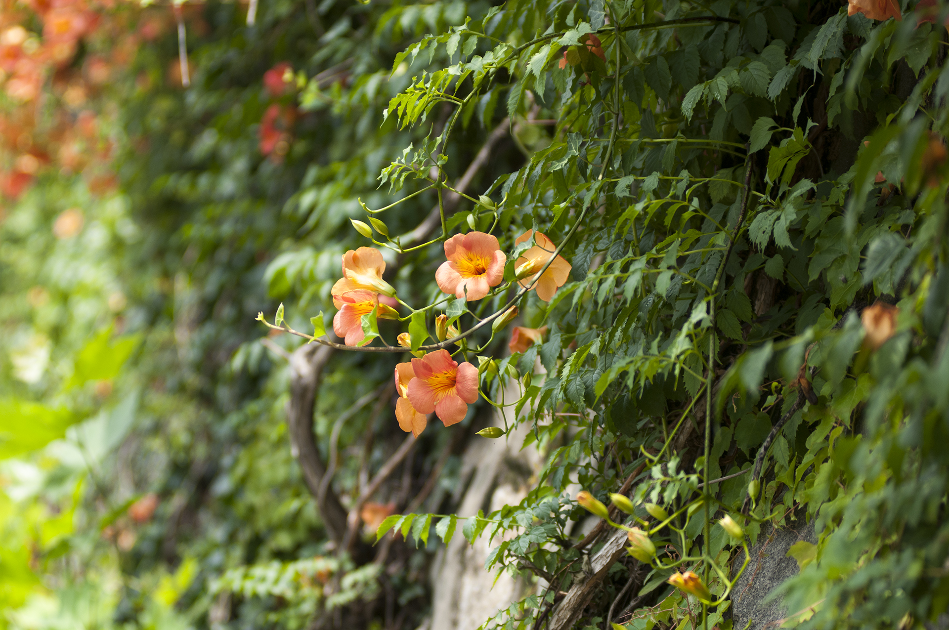 능소화를 예쁘게 담기 위해서는 광각렌즈 보다는 망원렌즈가 훨씬 더 유리하다.