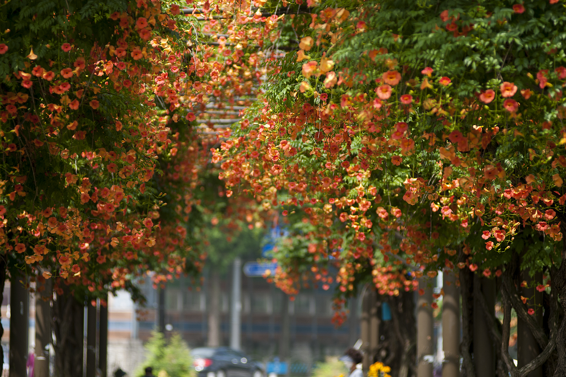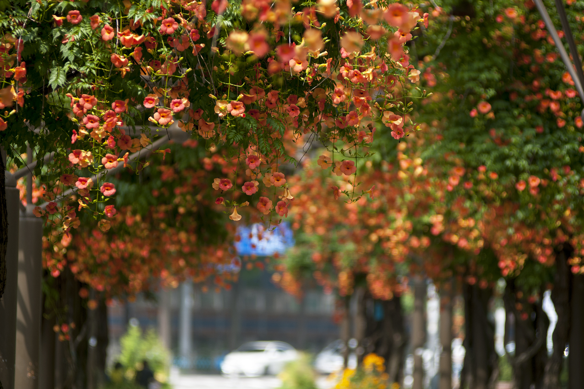 능소화가 터널을 이룬 모습이 얼마나 아름다운지~