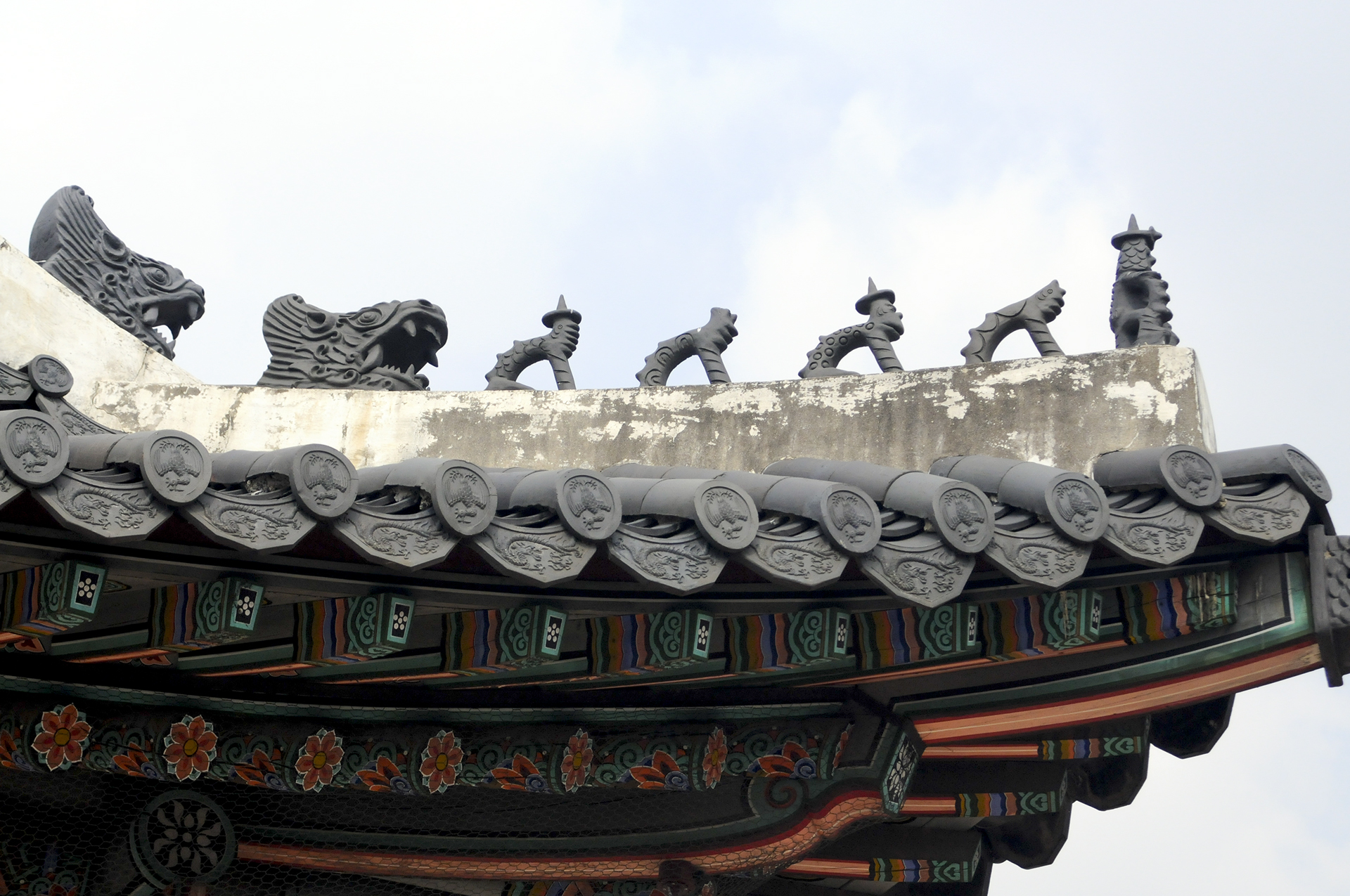 추녀마루에는 용두와 그 앞으로 7개의 잡상을 세웠고, 추녀끝에는 토수를 끼워 살짝 올라가는 곡선을 마무리했다.