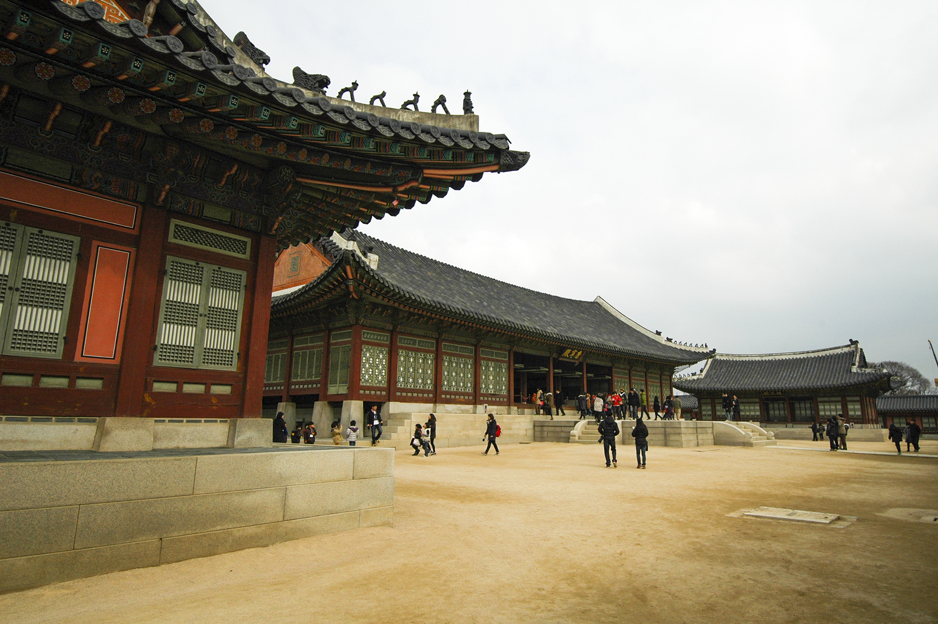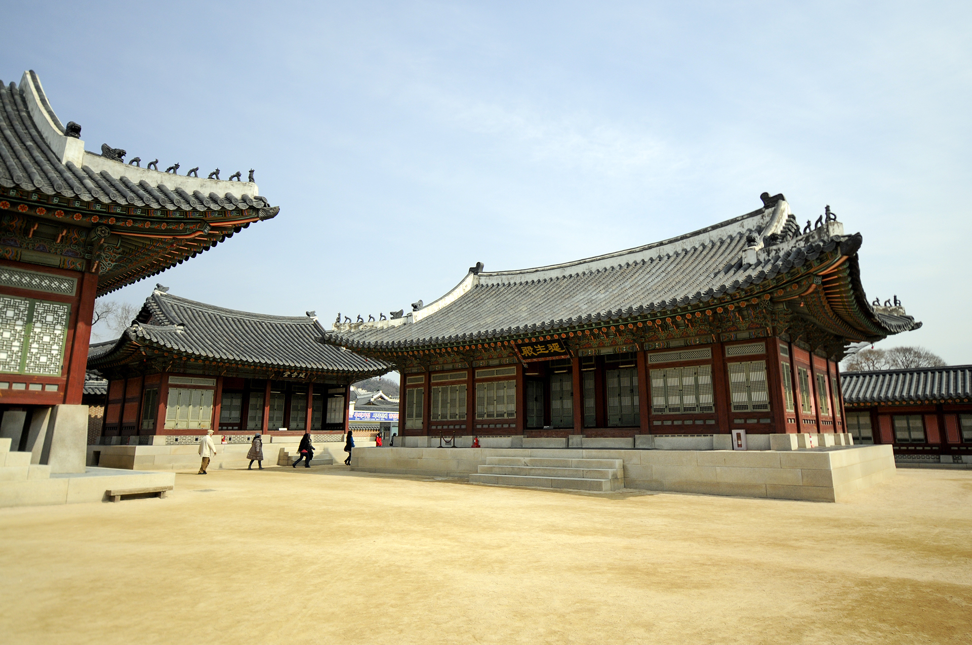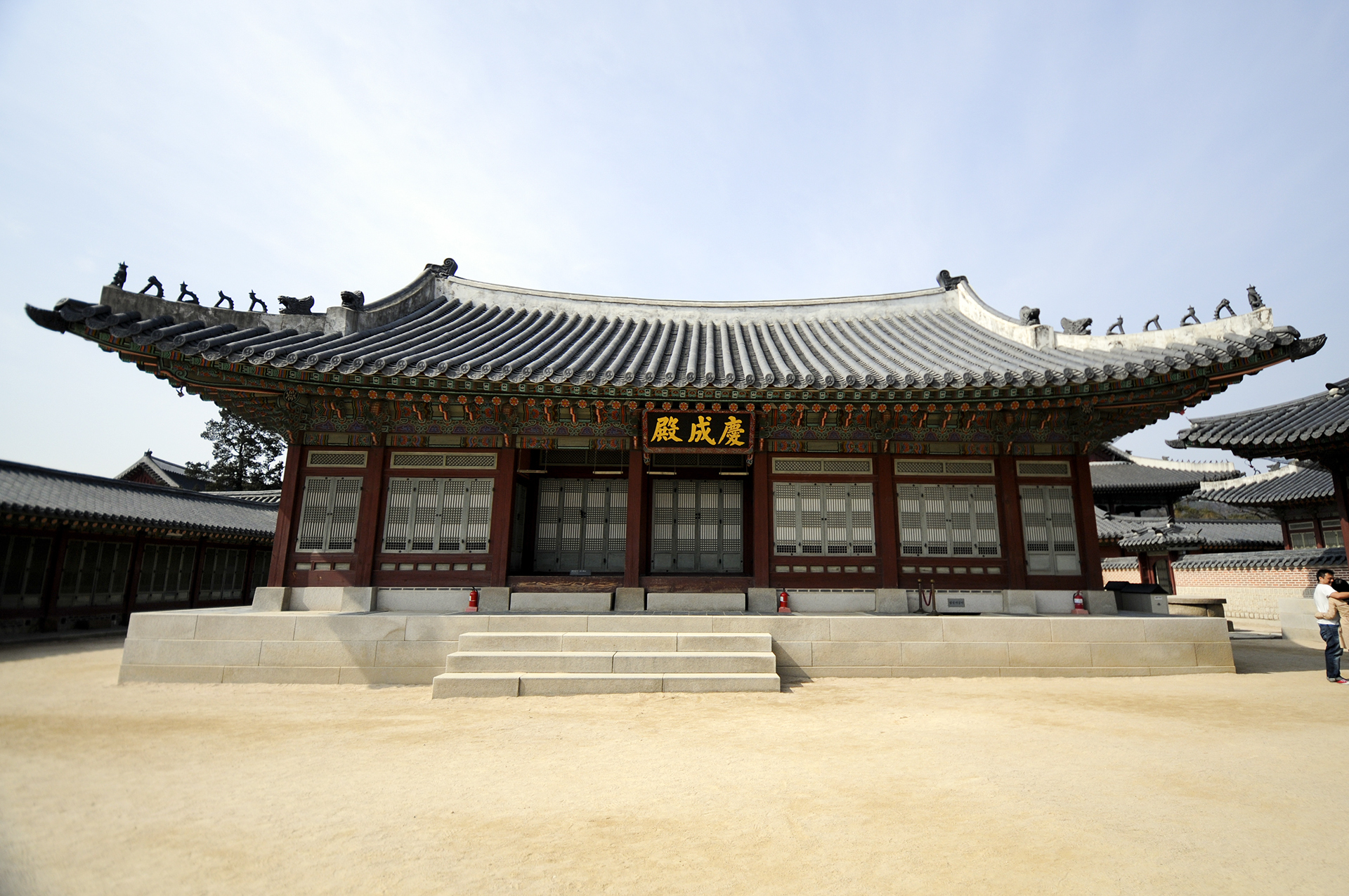 서쪽에 자리잡은 경성전 지붕에는 가로로 하얗게 용마루가 보인다.