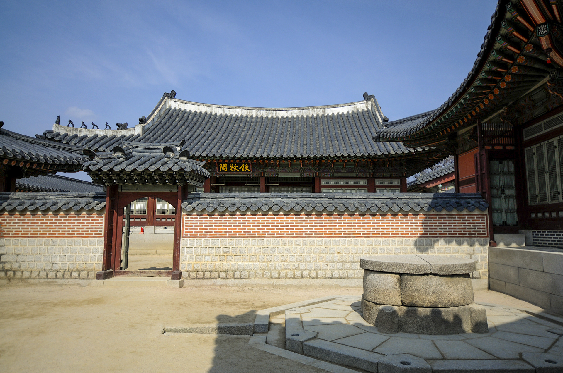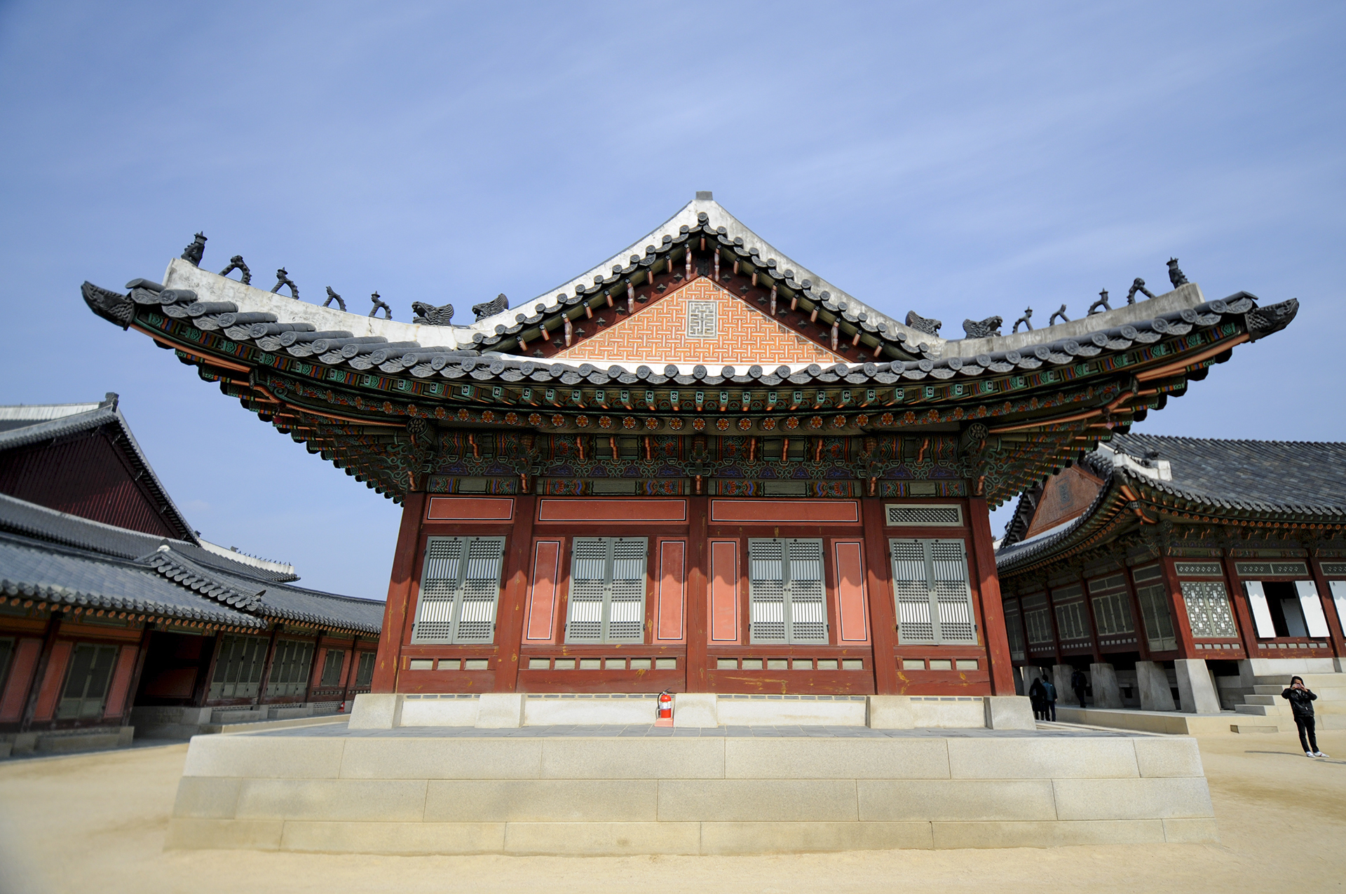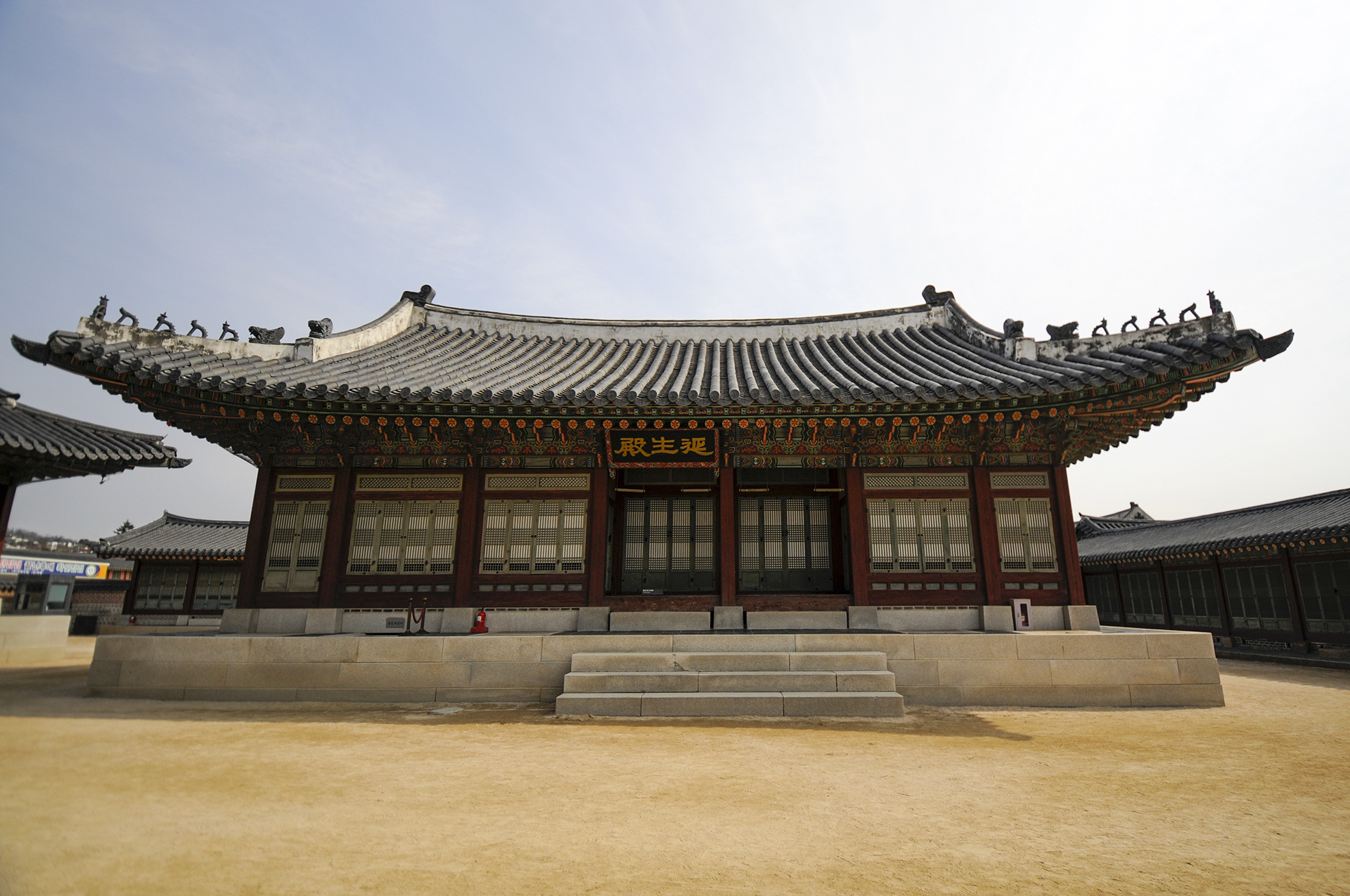 서쪽에 자리잡은 경성전 지붕에는 가로로 하얗게 용마루가 보인다.