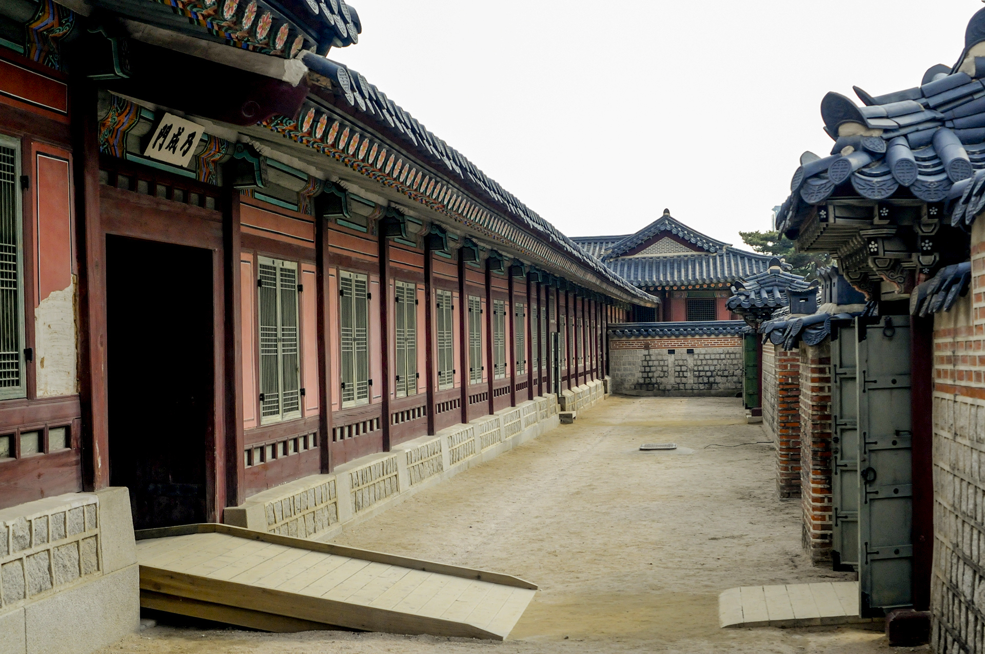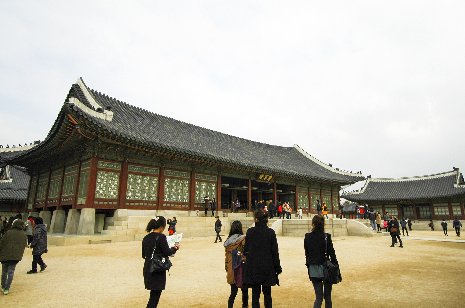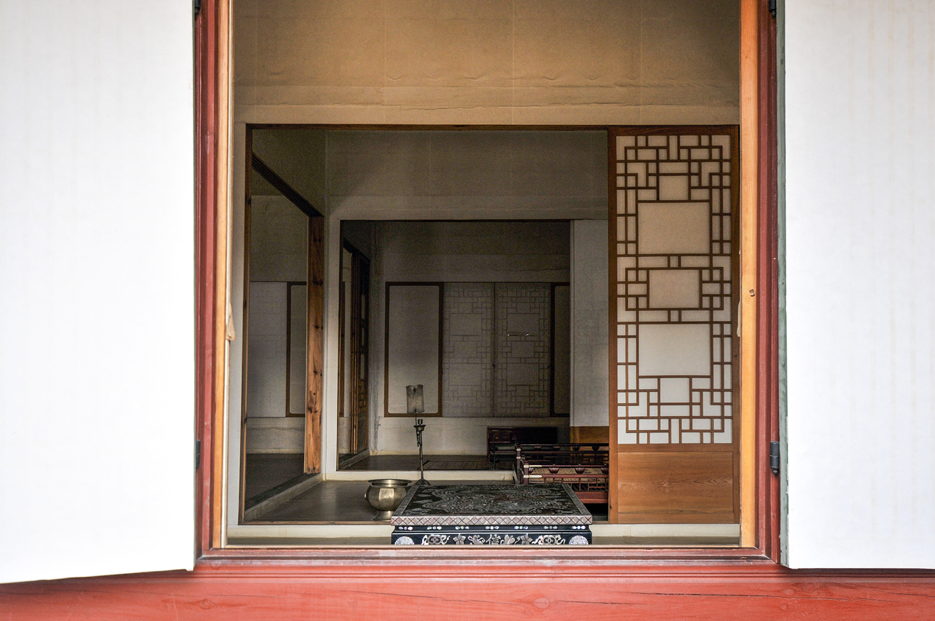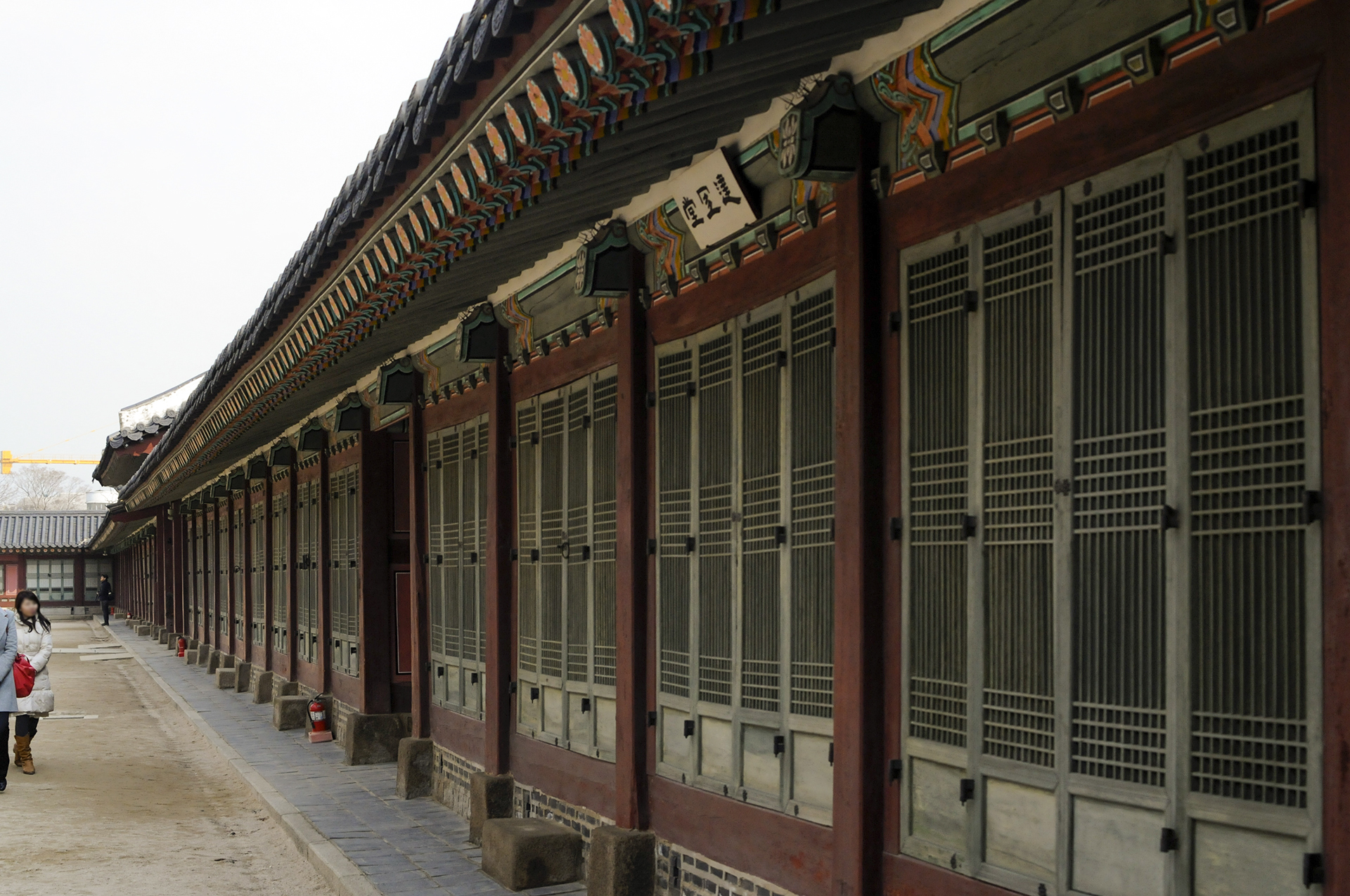 추웠던 2월달에 찍은 사진이라 중앙 3칸을 제외하고는 모든 문이 닫혀있는걸 볼수 있다. 문살의 문양으로 인해 더 품위있어 보인다.