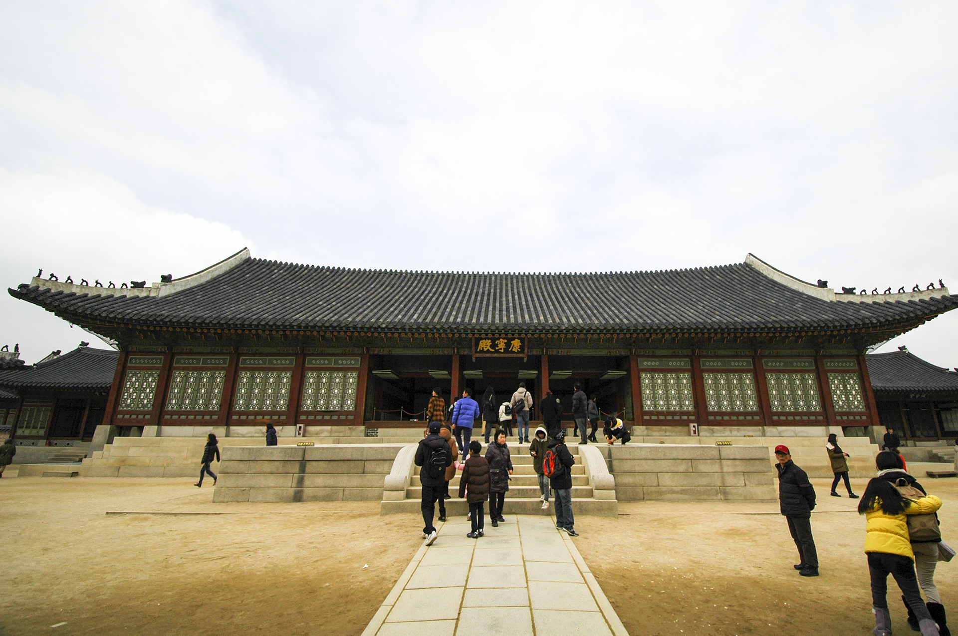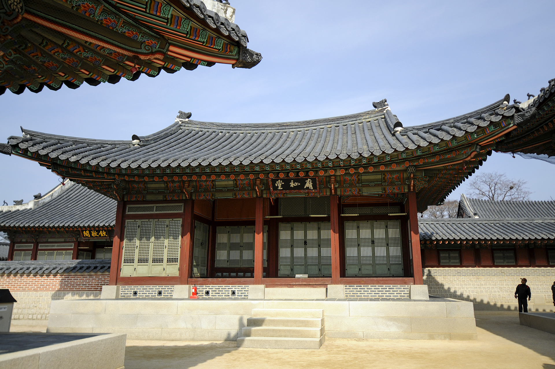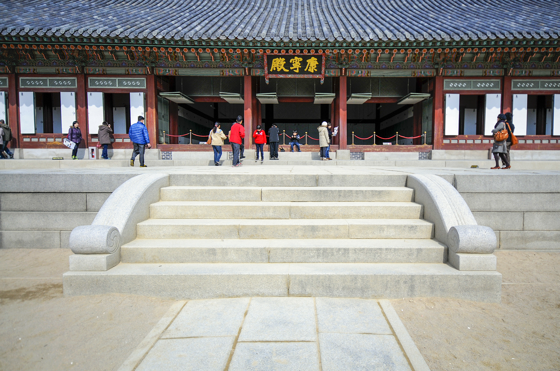 경복궁에는 왕과 왕비의 침전영역이 둘로 구분되어 있다. 그 중 강녕전은 왕의 침전으로, 정면 11칸의 웅장한 모습은 보는이로 하여금 시선을 압도한다.