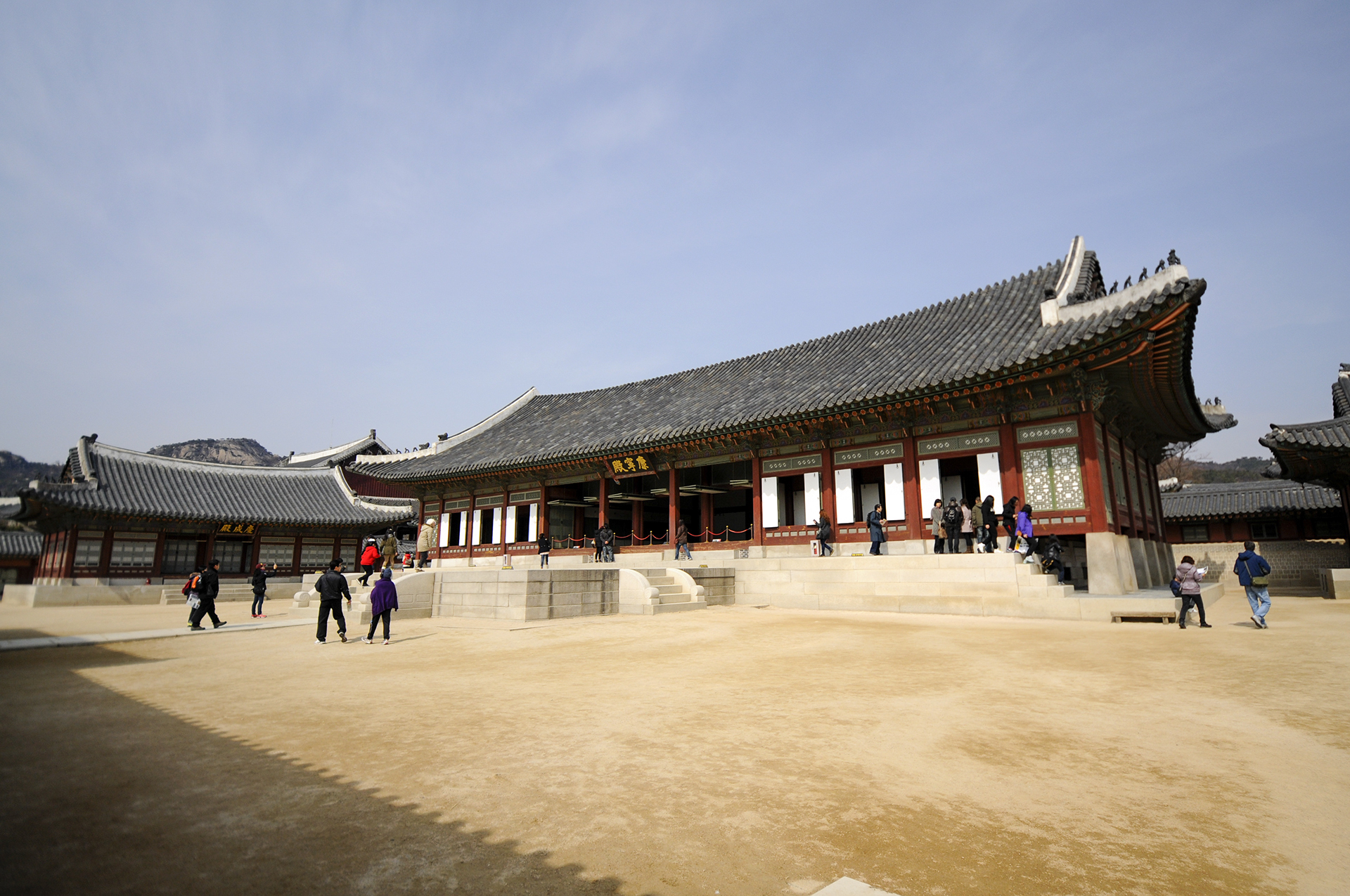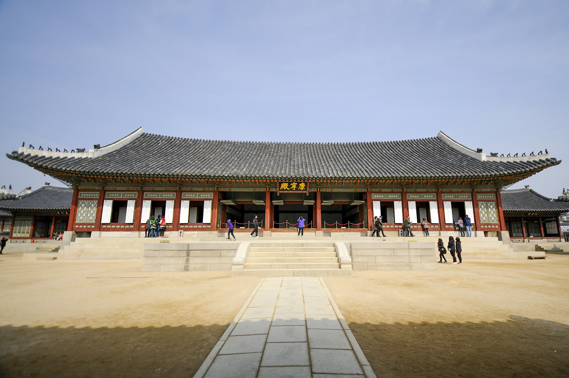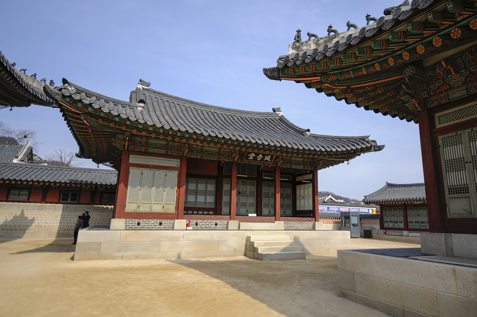 경복궁에는 왕과 왕비의 침전영역이 둘로 구분되어 있다. 그 중 강녕전은 왕의 침전으로, 정면 11칸의 웅장한 모습은 보는이로 하여금 시선을 압도한다.