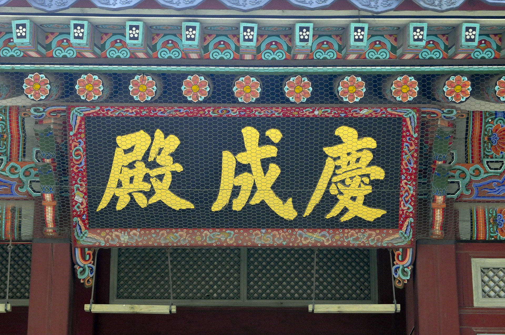완성함을 기뻐한다는 뜻의 경성전은 천지가 만물을 낳고 이루는 것을 본받아 정령을 밝히라는 의미로 정도전이 이름지었다. 현판은 1995년에 설치된 것으로 서예가 우죽 양진니가 쓰고 오옥진이 새겼다.