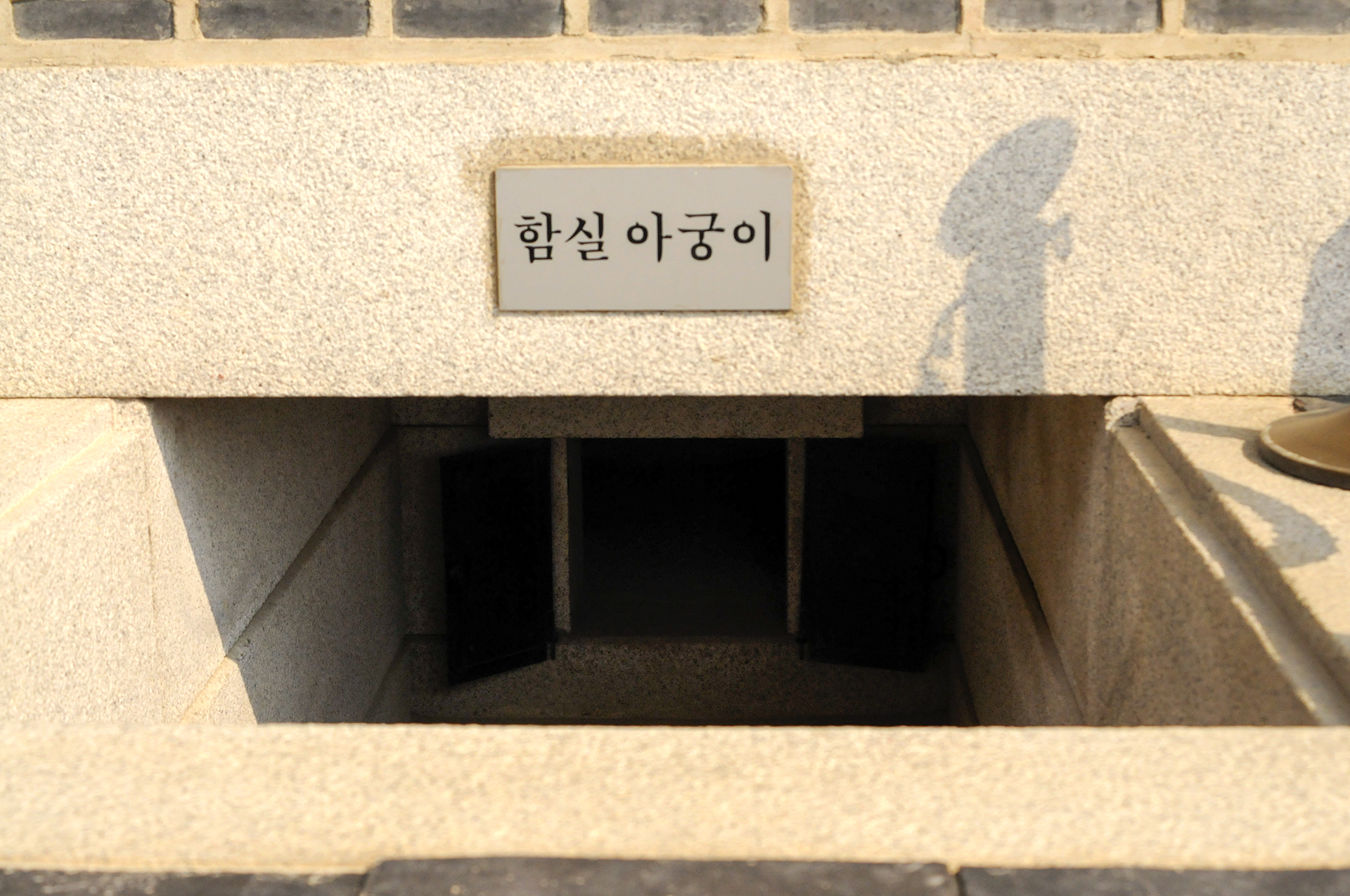 동쪽에서 본 옆모습으로 측면 5칸의 넓은 공간을 이루었다. 지붕 합각의 무늬가 눈에 띄며 아래쪽에 아궁이도 보인다.