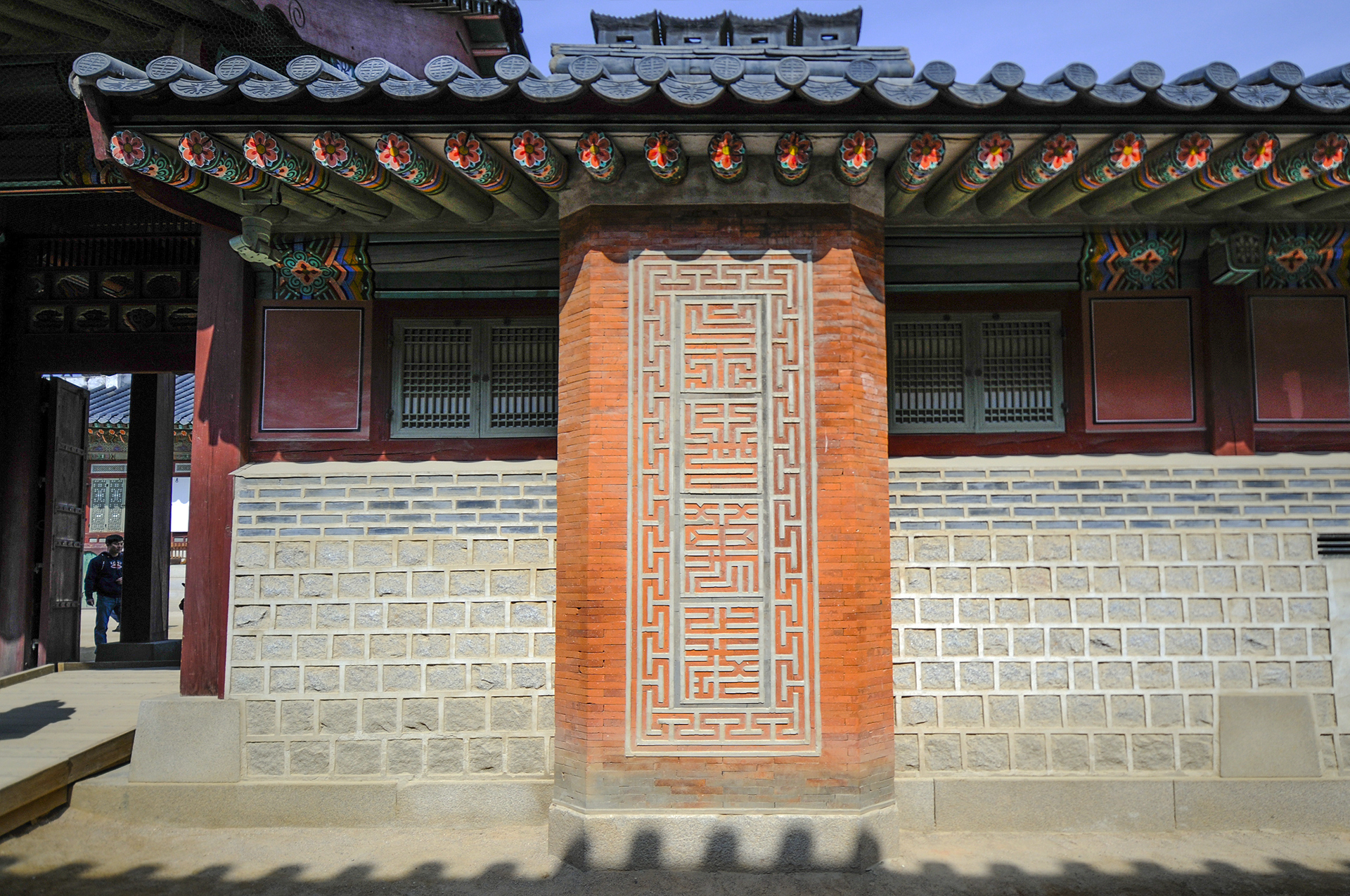 강녕전의 뒷편 북측담장, 즉 교태전으로 들어가는 양의문 담장에 좌우측으로 주황색 전돌을 쌓아 기둥형식으로 붙어있다.