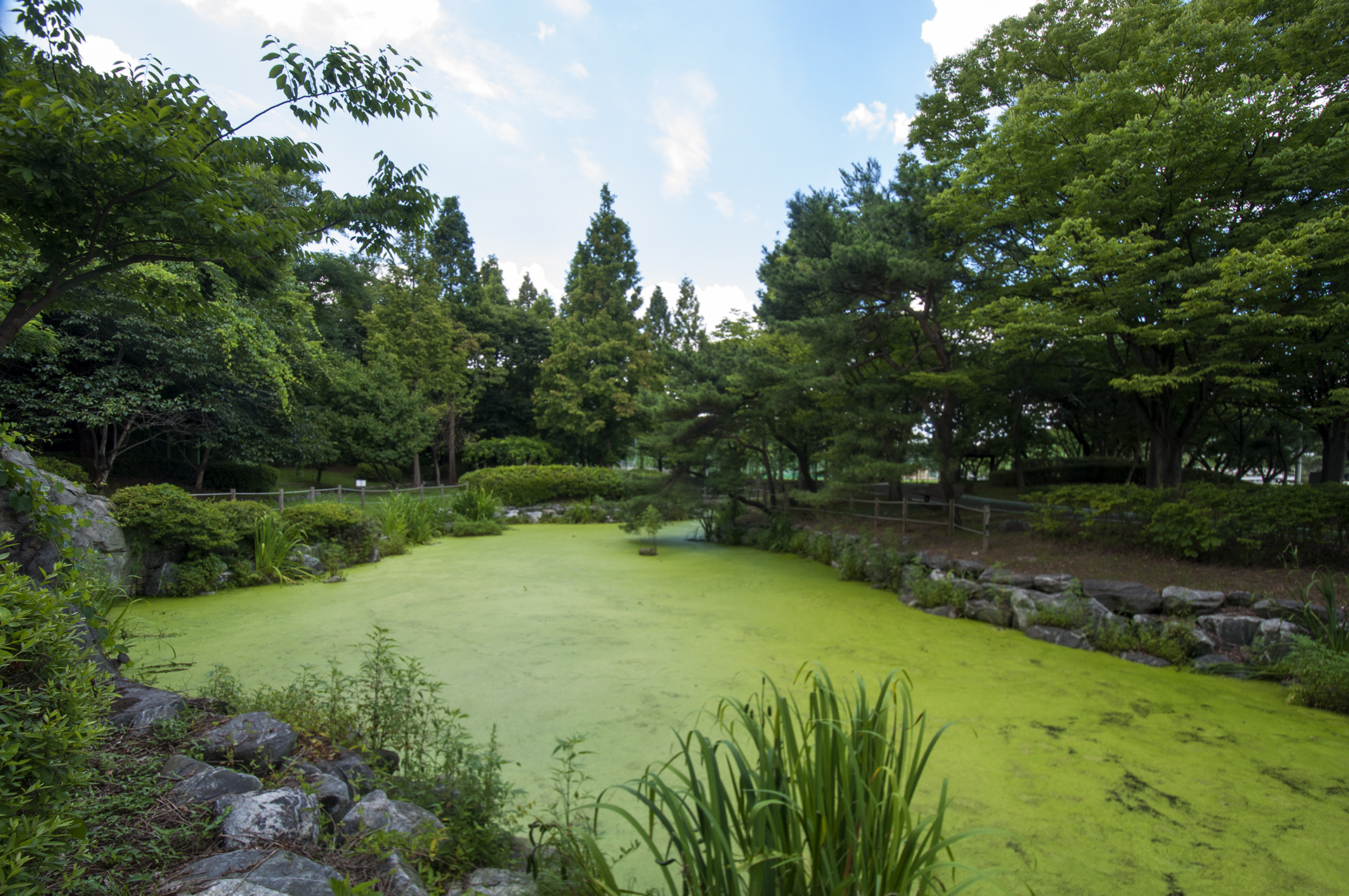 수면을 가득채운 수생식물 덕분에 물고기들도 있다는데 확인할 길이 없다.