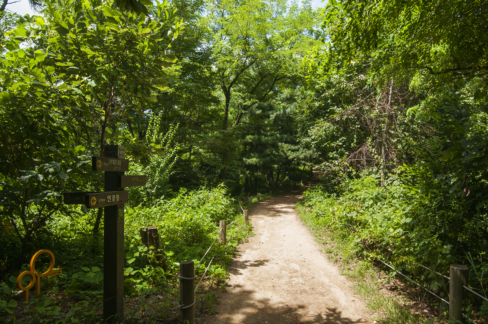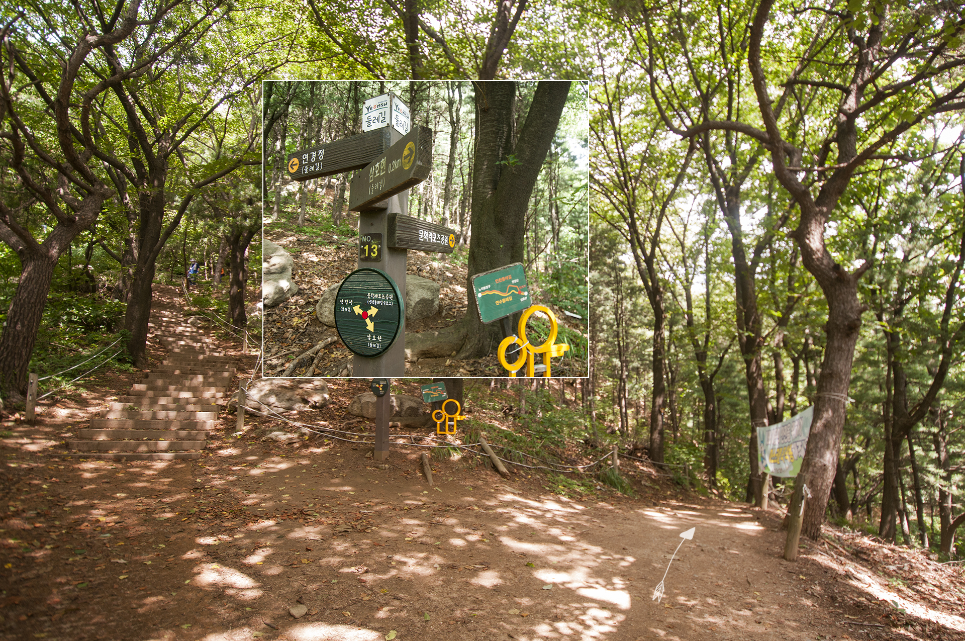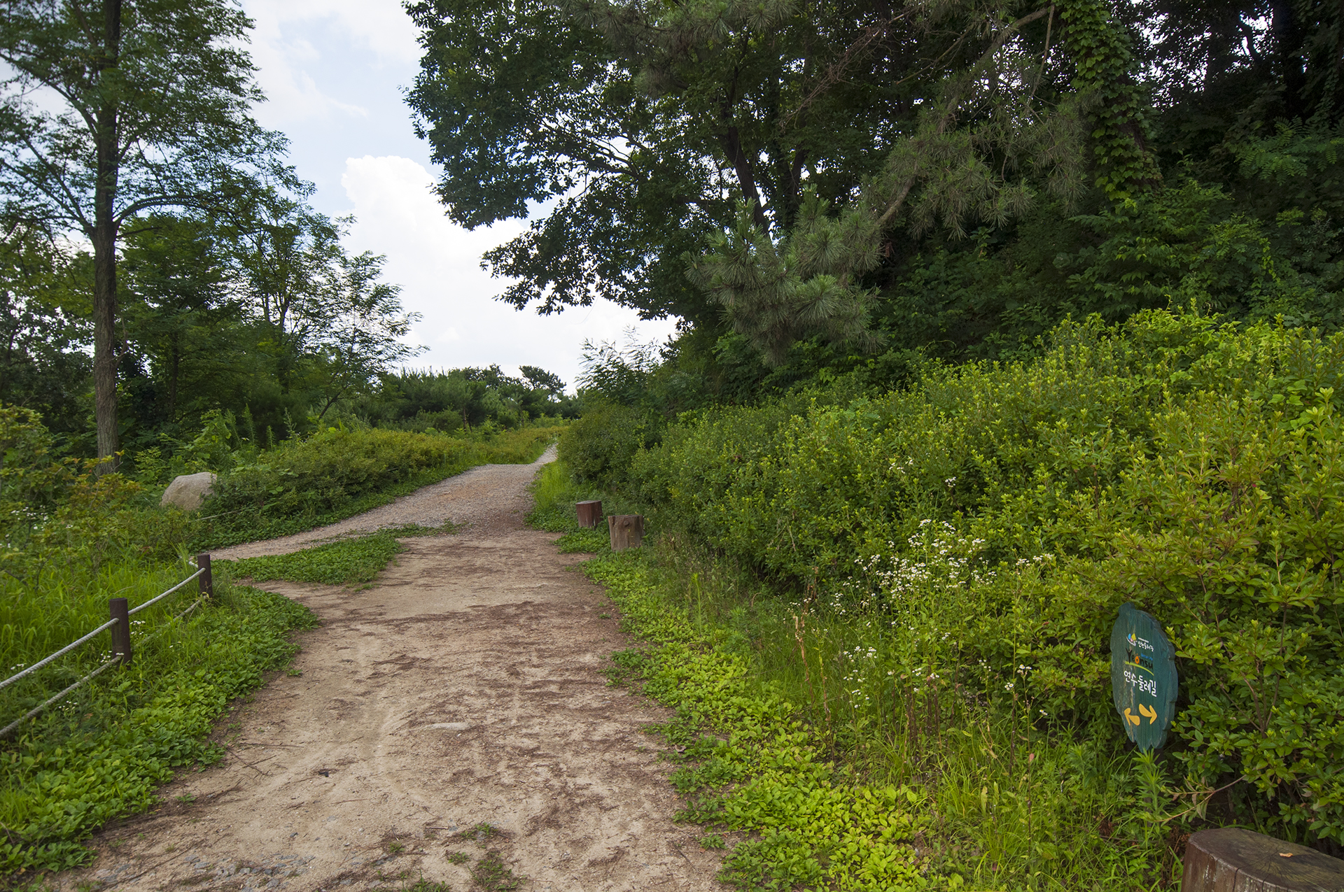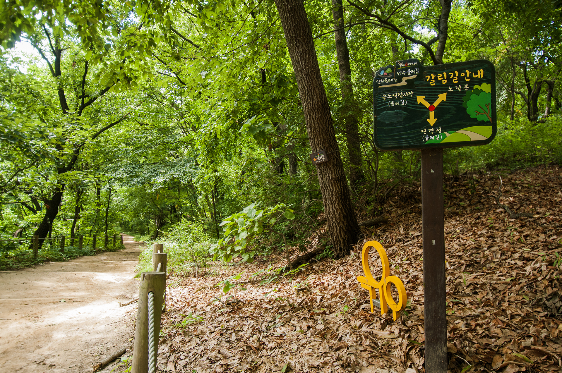 연경정과 문학레포츠공원 갈림길이 나온다. 둘레길 마스코트가 가리키는 방향을 따라 레포츠공원으로 가면 된다.