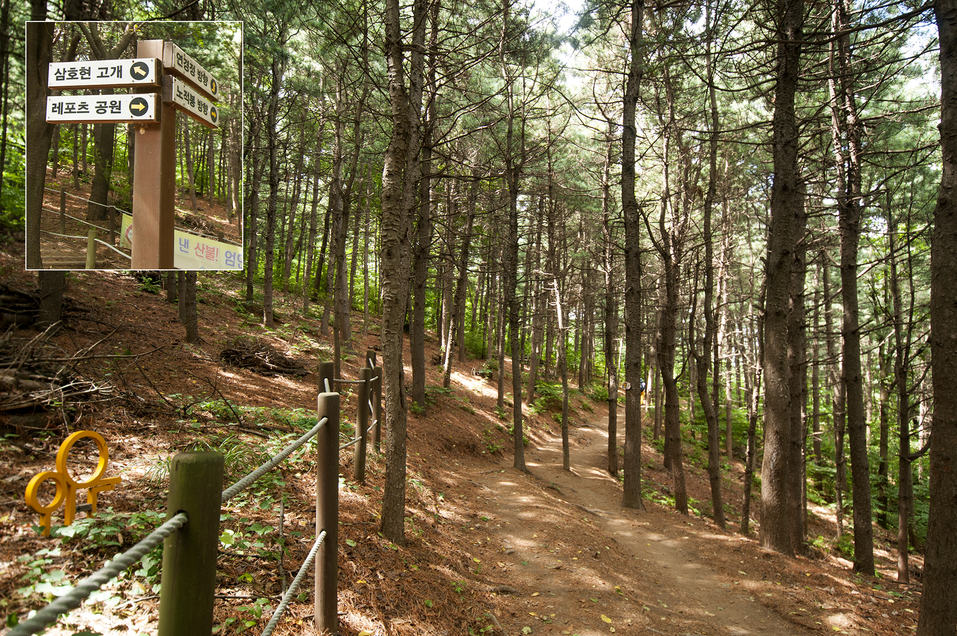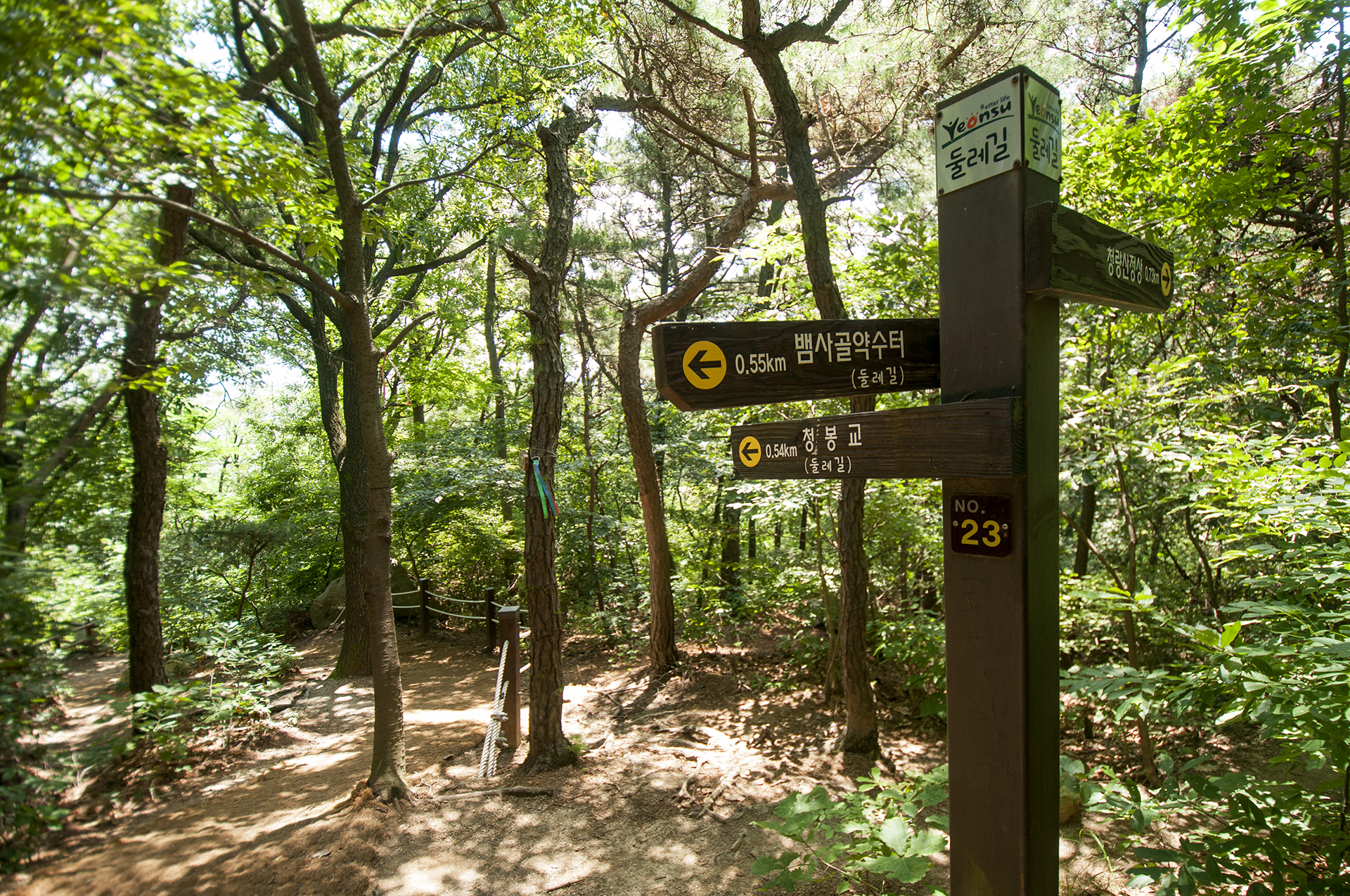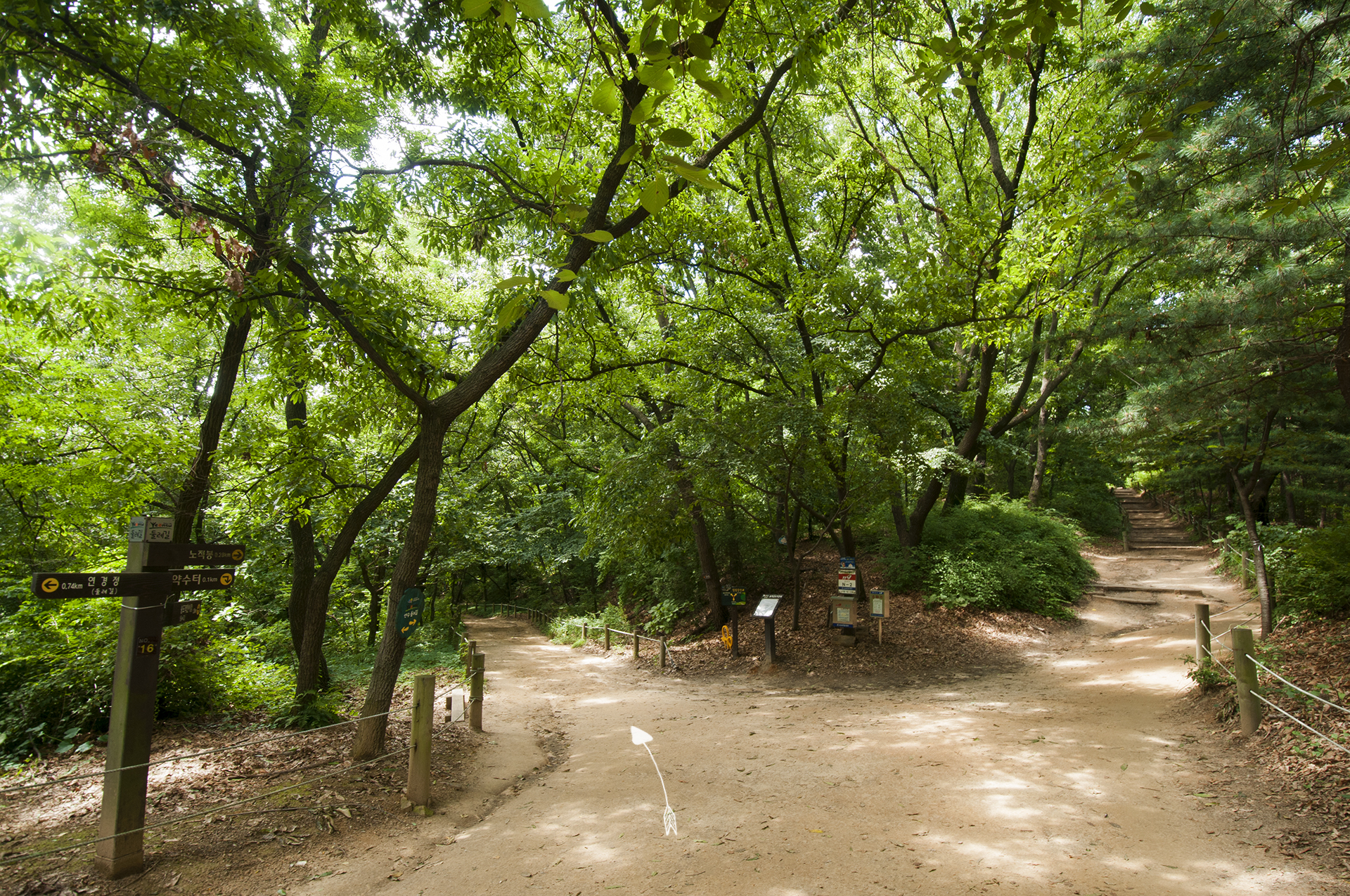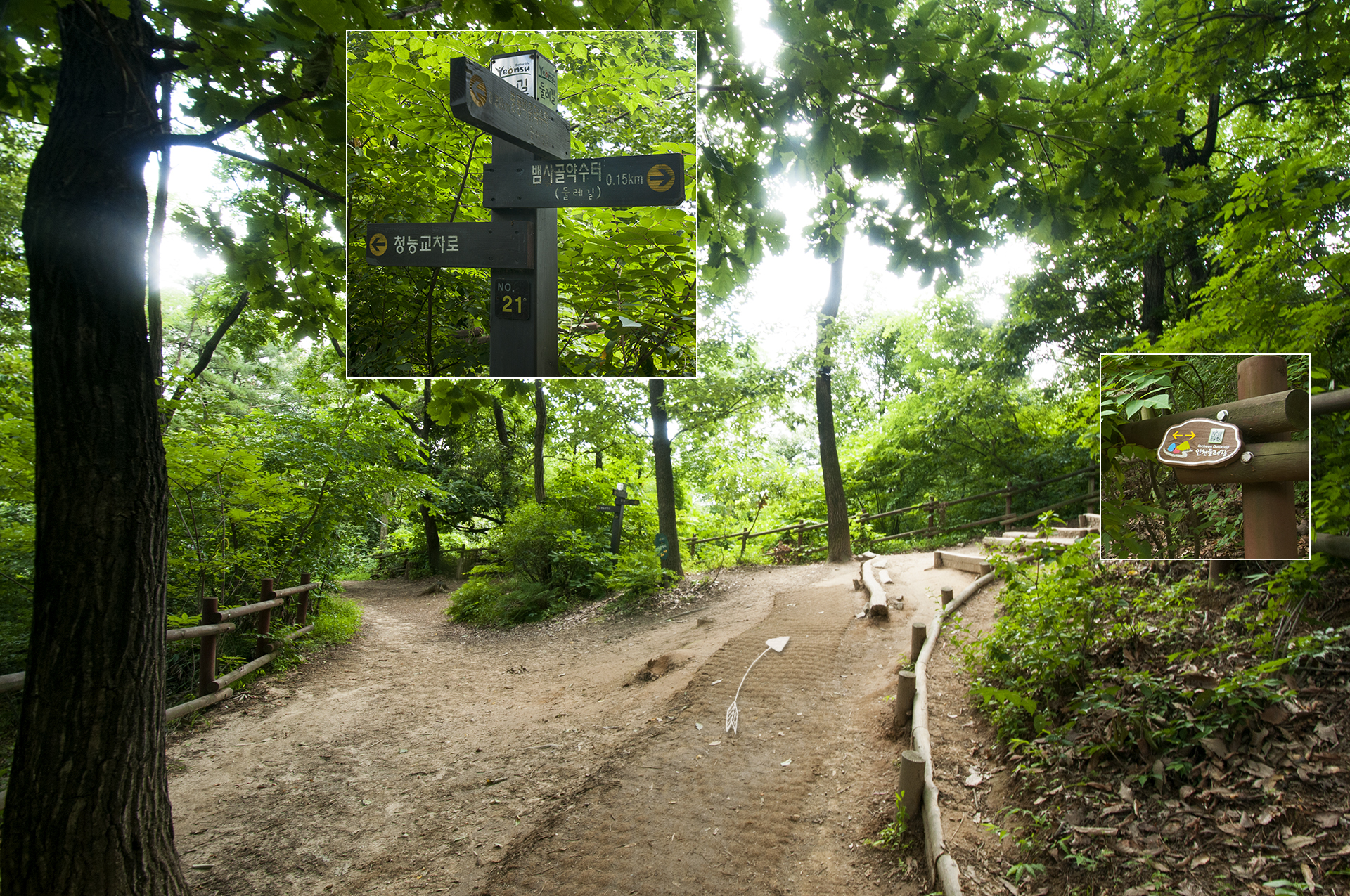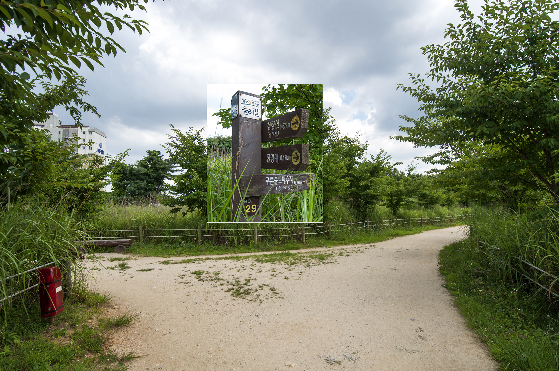 연경정과 문학레포츠공원 갈림길이 나온다. 둘레길 마스코트가 가리키는 방향을 따라 레포츠공원으로 가면 된다.