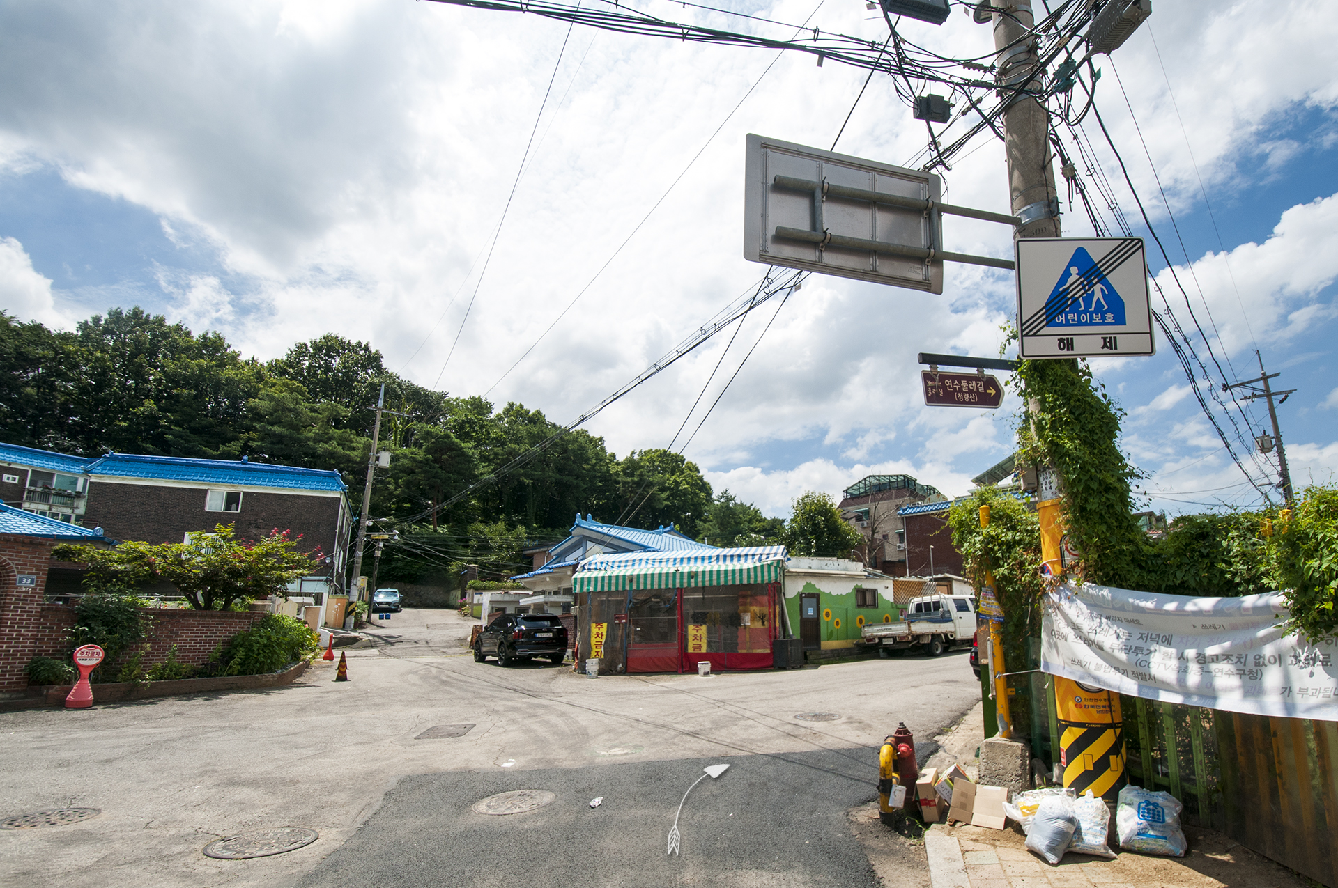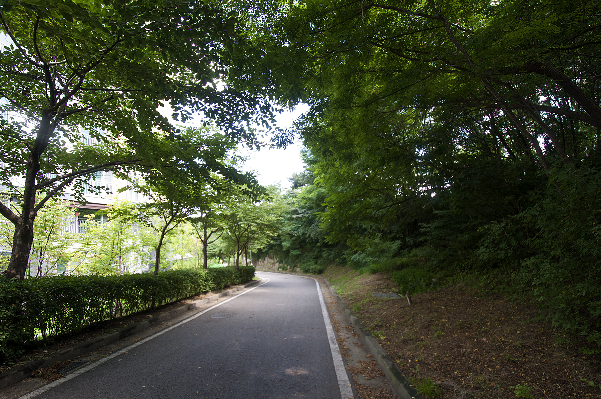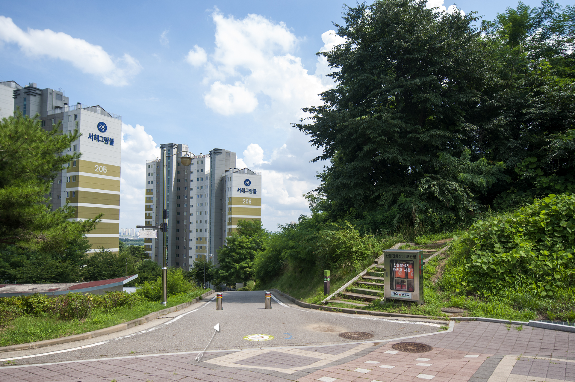시원한 아파트 옆길을 내려가면 만나게 되는 T자형 삼거리
