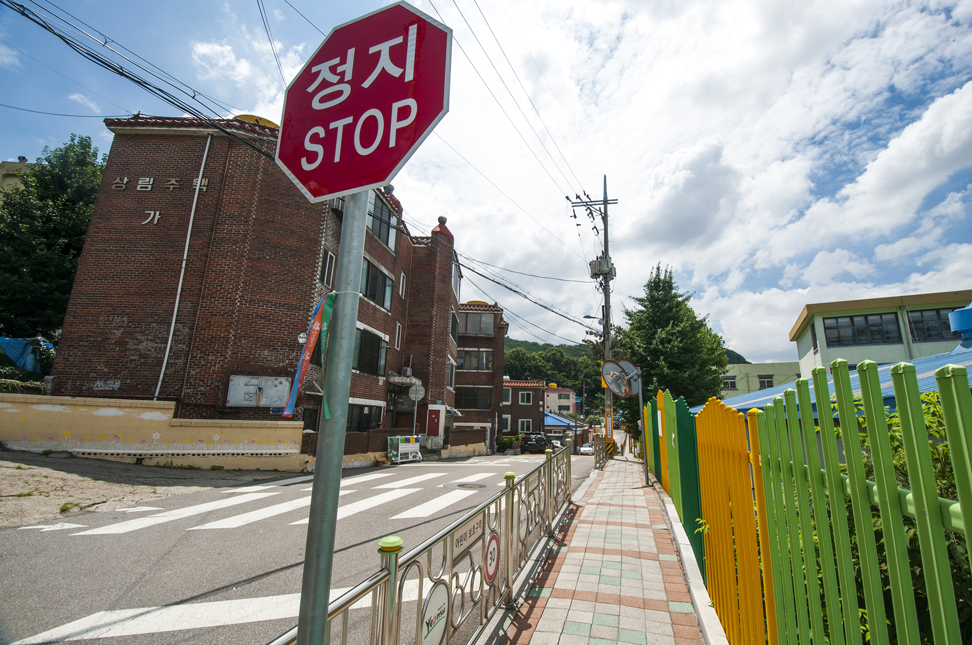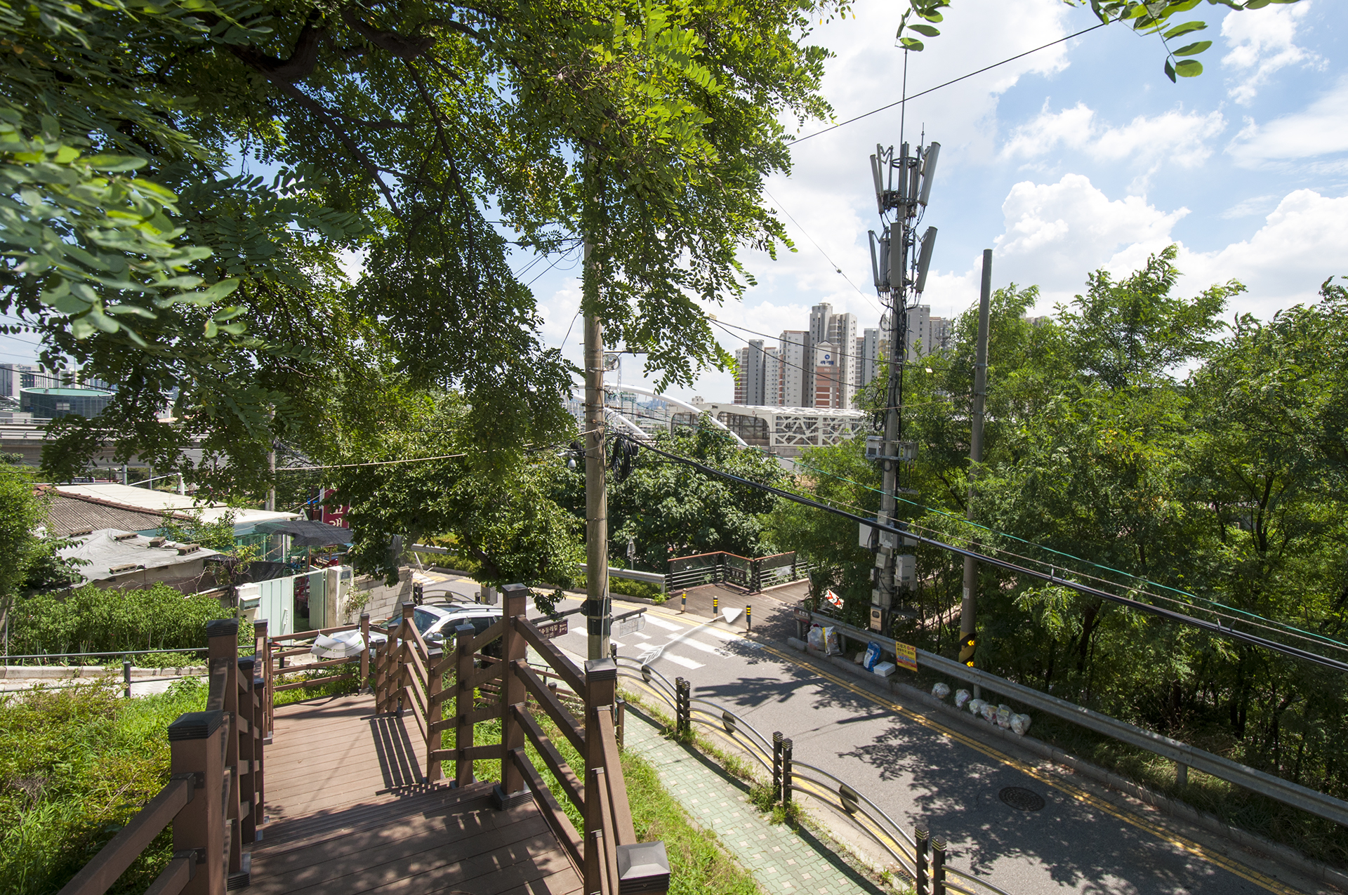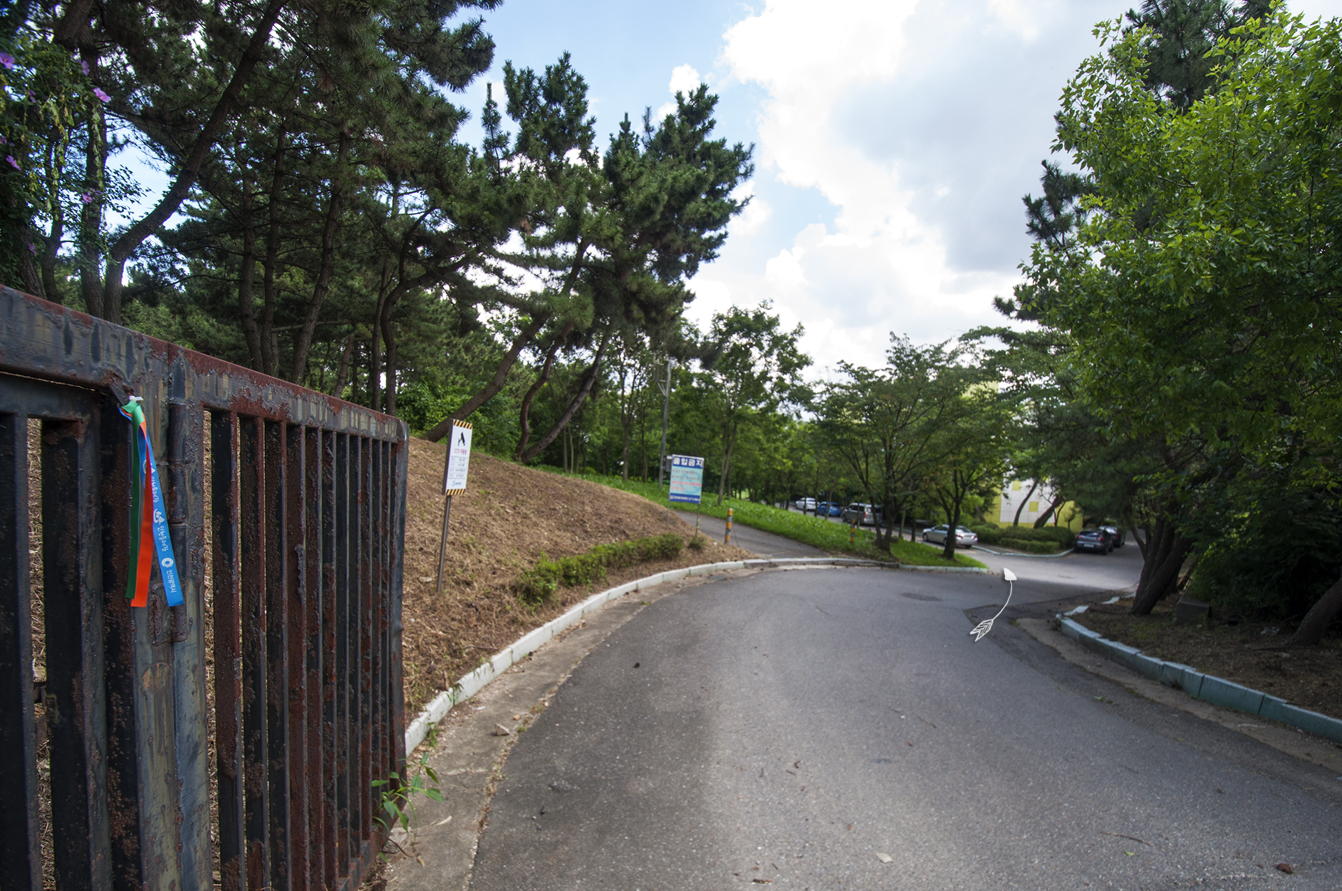 시원한 아파트 옆길을 내려가면 만나게 되는 T자형 삼거리