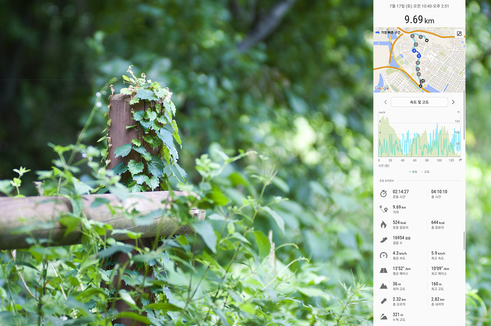 총 9.69km, 4시간10분이 걸렸다. (8코스 포함 20.22km)