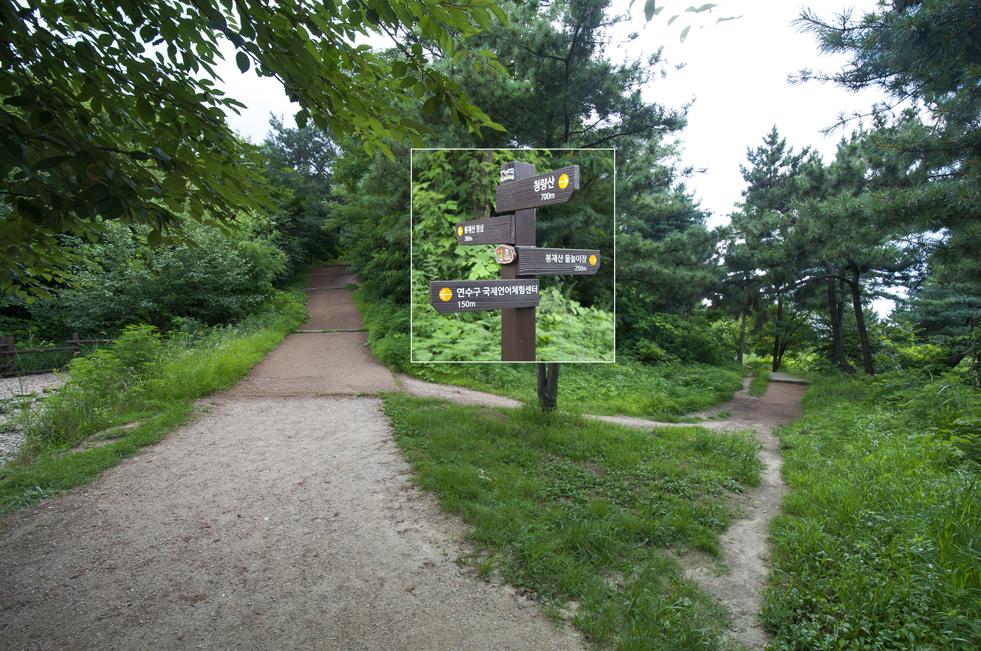 계단길이 아니라 좌측 연수둘레길로 걸어도 봉재산 정상으로 올라갈 수 있다.