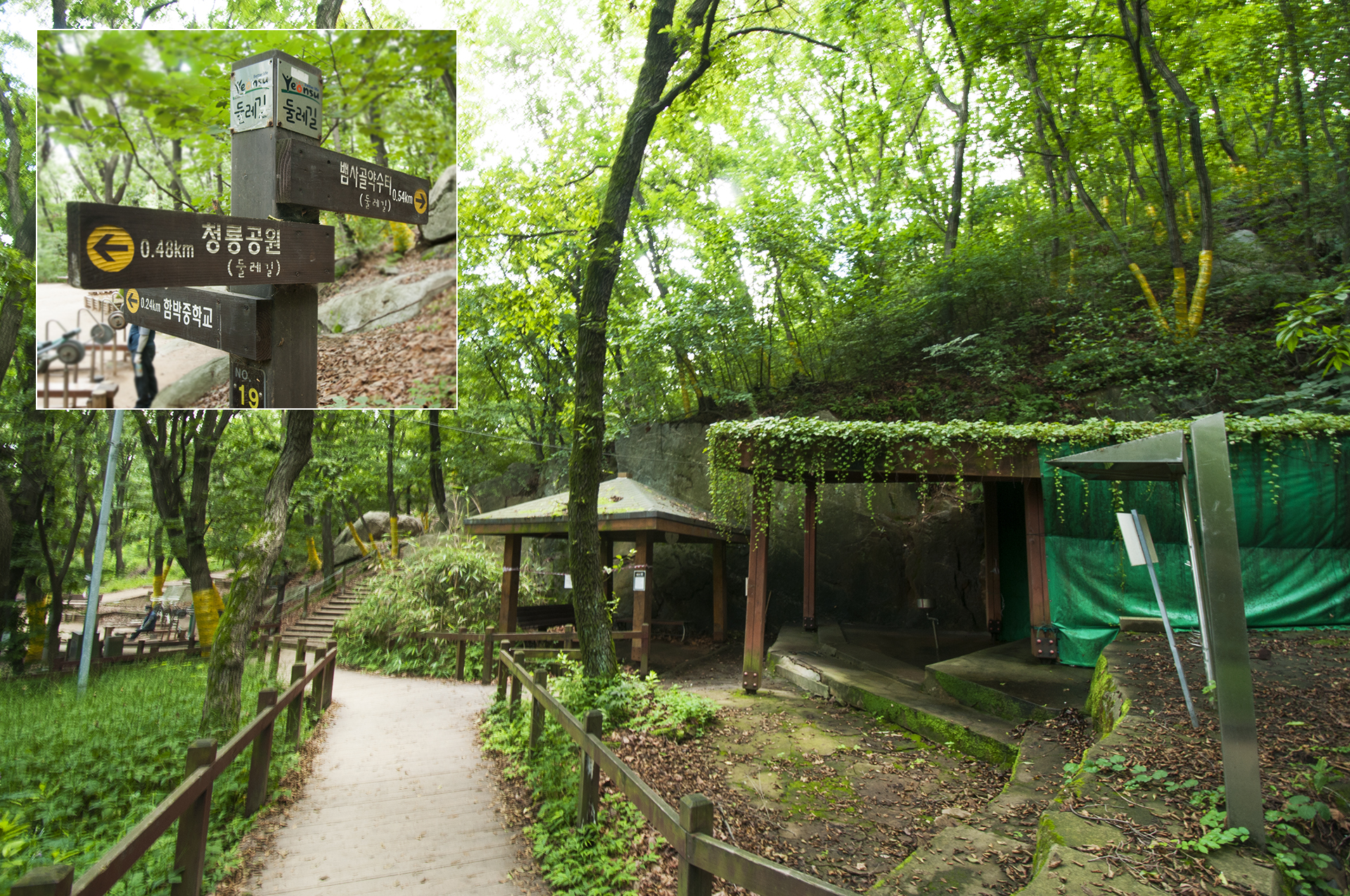 신선약수터와 연경정 방향 갈림길