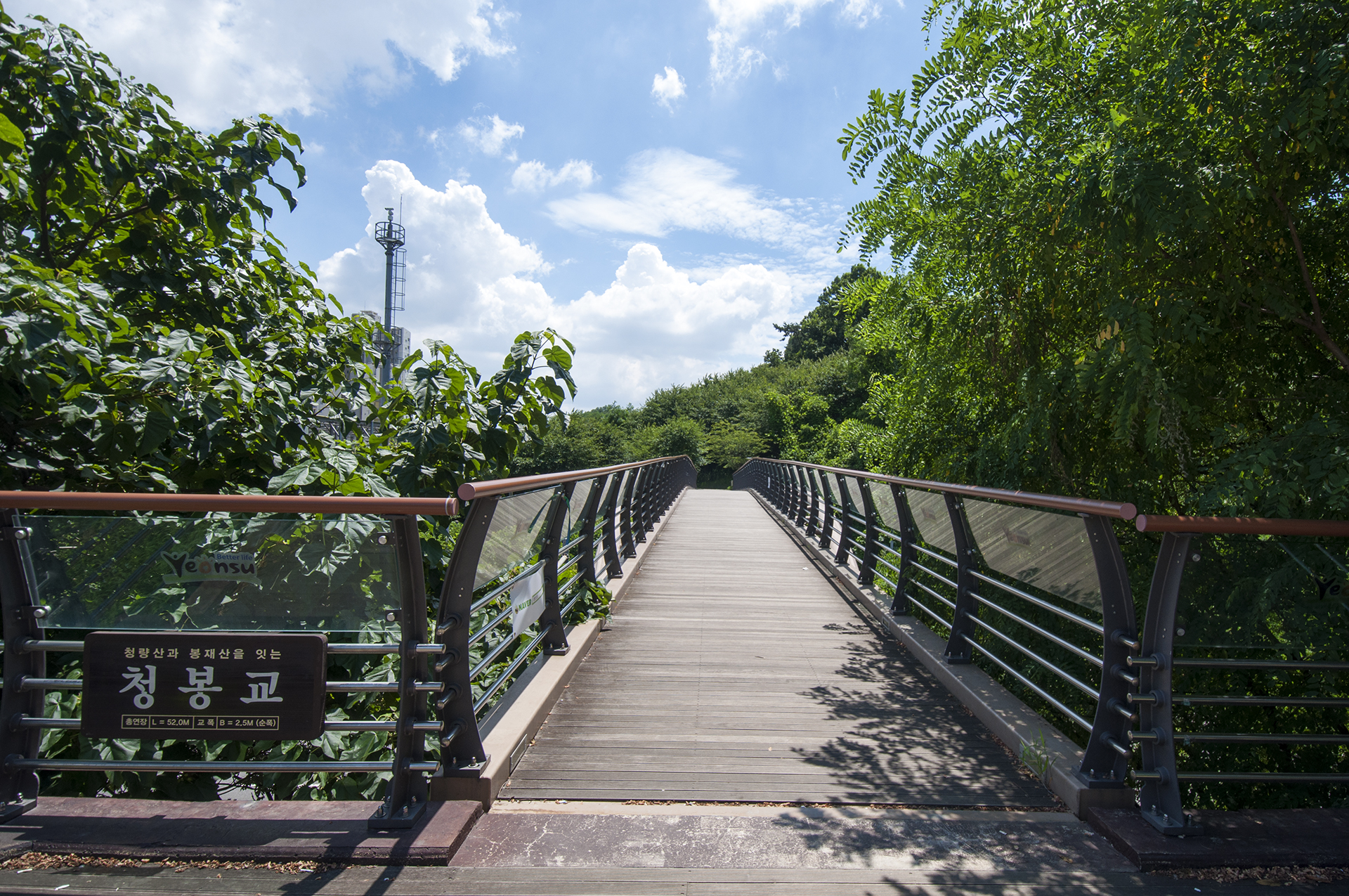 청량산과 봉재산을 이어주는 52m의 다리다. 그래서 이름도 청봉교인가 보다.