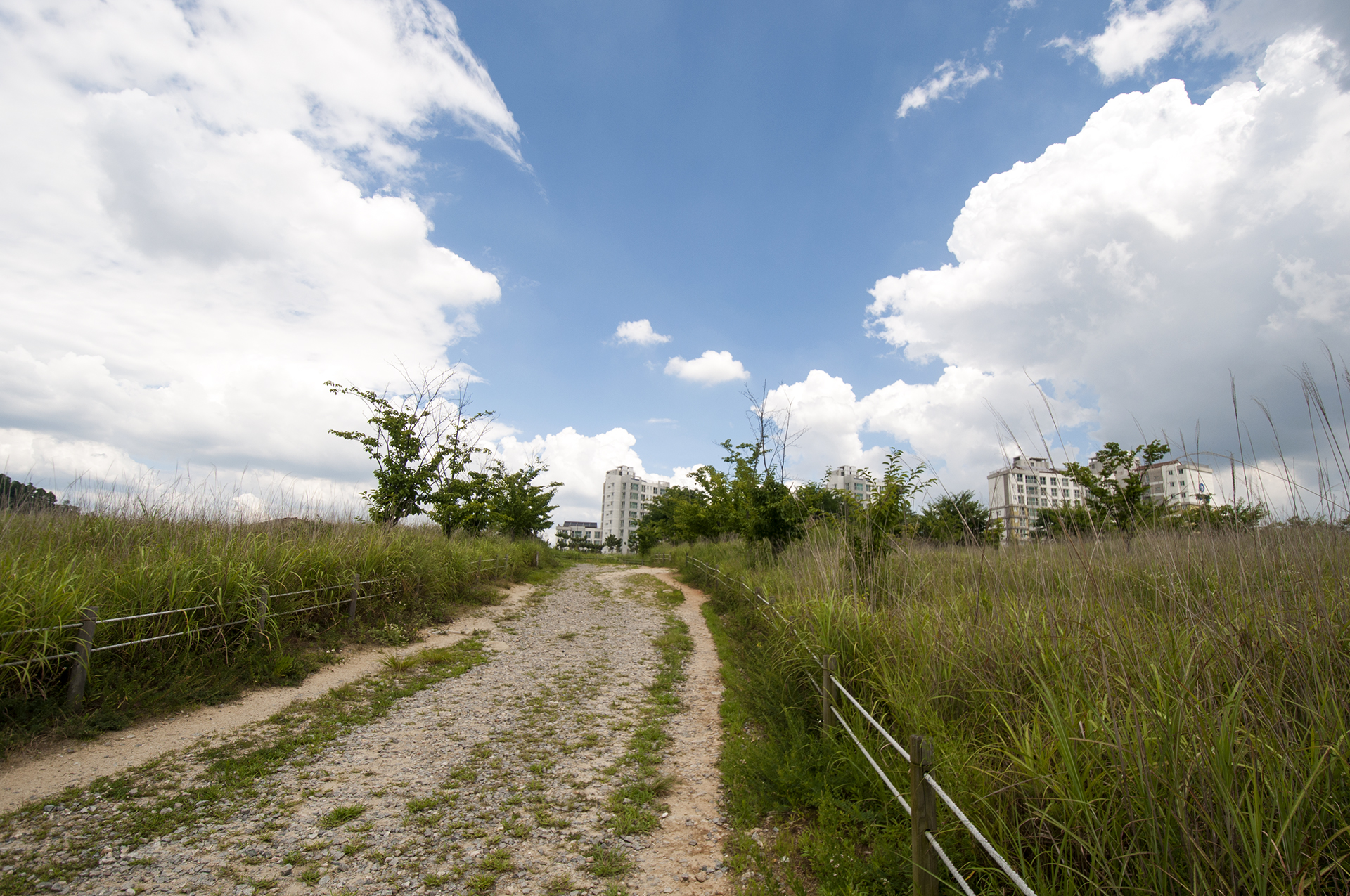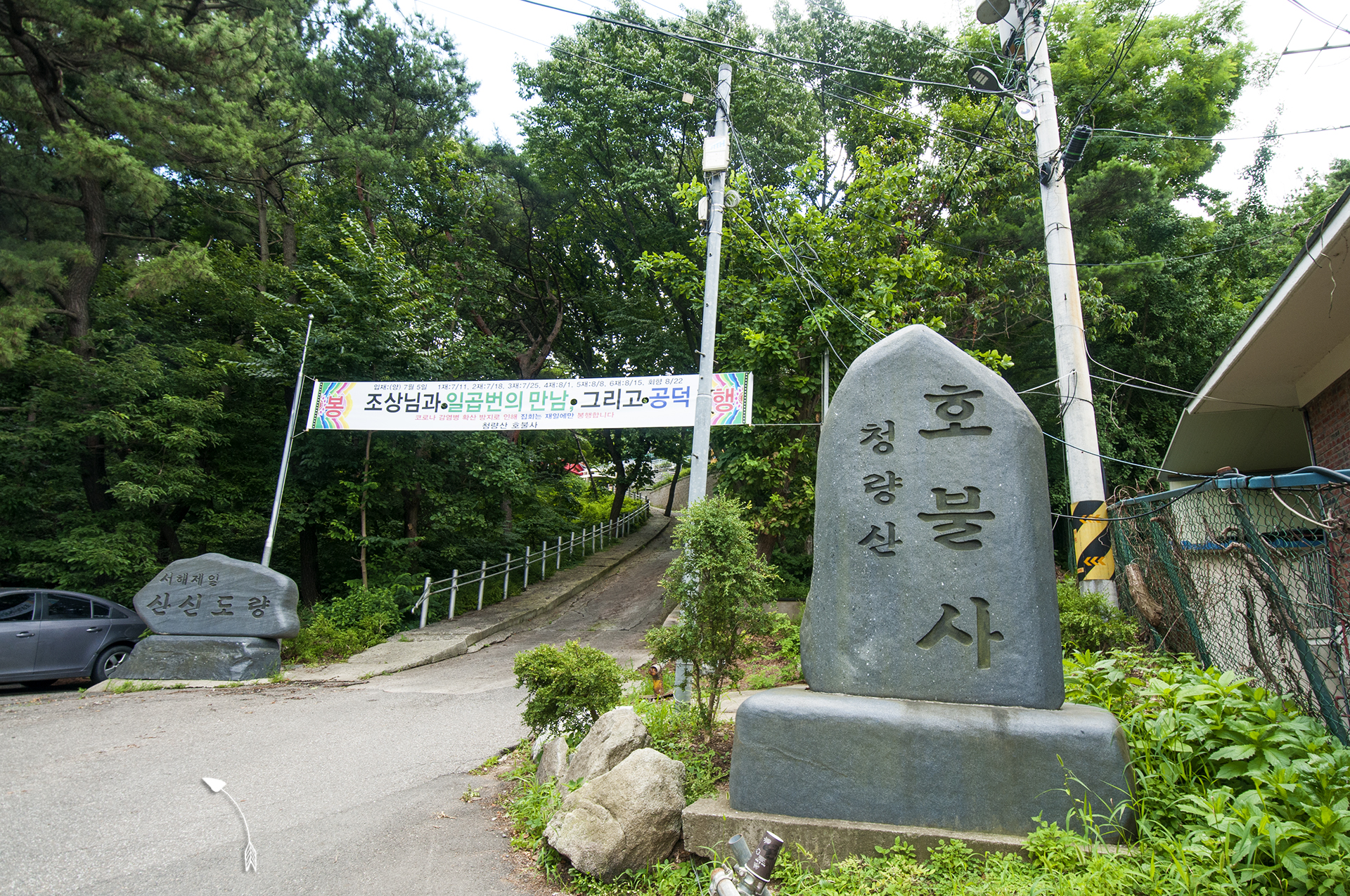 산속을 걷는 동안 바람과 그늘이 좋아 시원했는데, 이제 대략 20분 정도는 땡볕을 걸어야 한다.