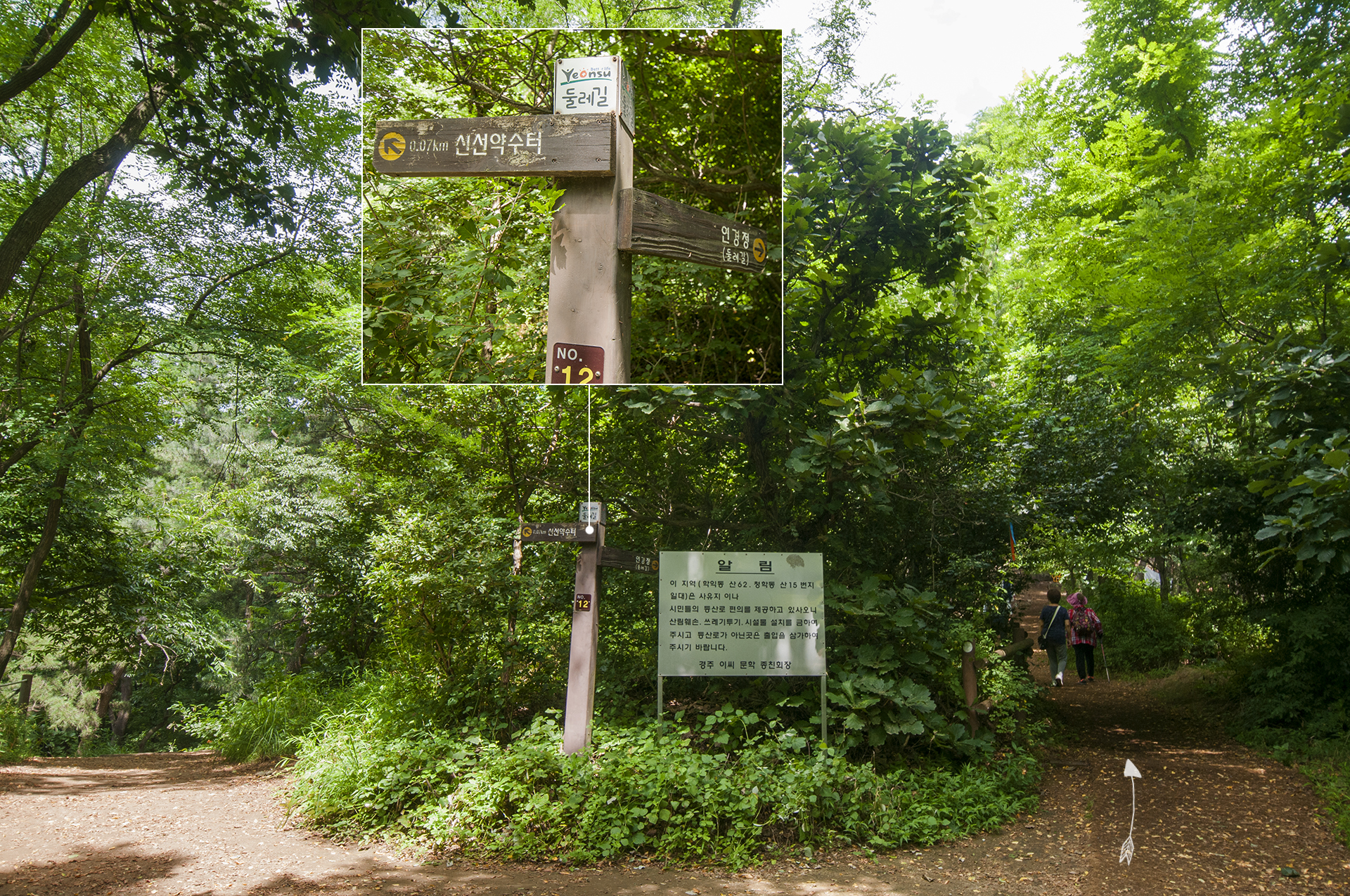 이 지역은 사유지로 시민들의 편의를 위해 등산로를 제공하고 있다는 알림글이 있다. 고맙^^