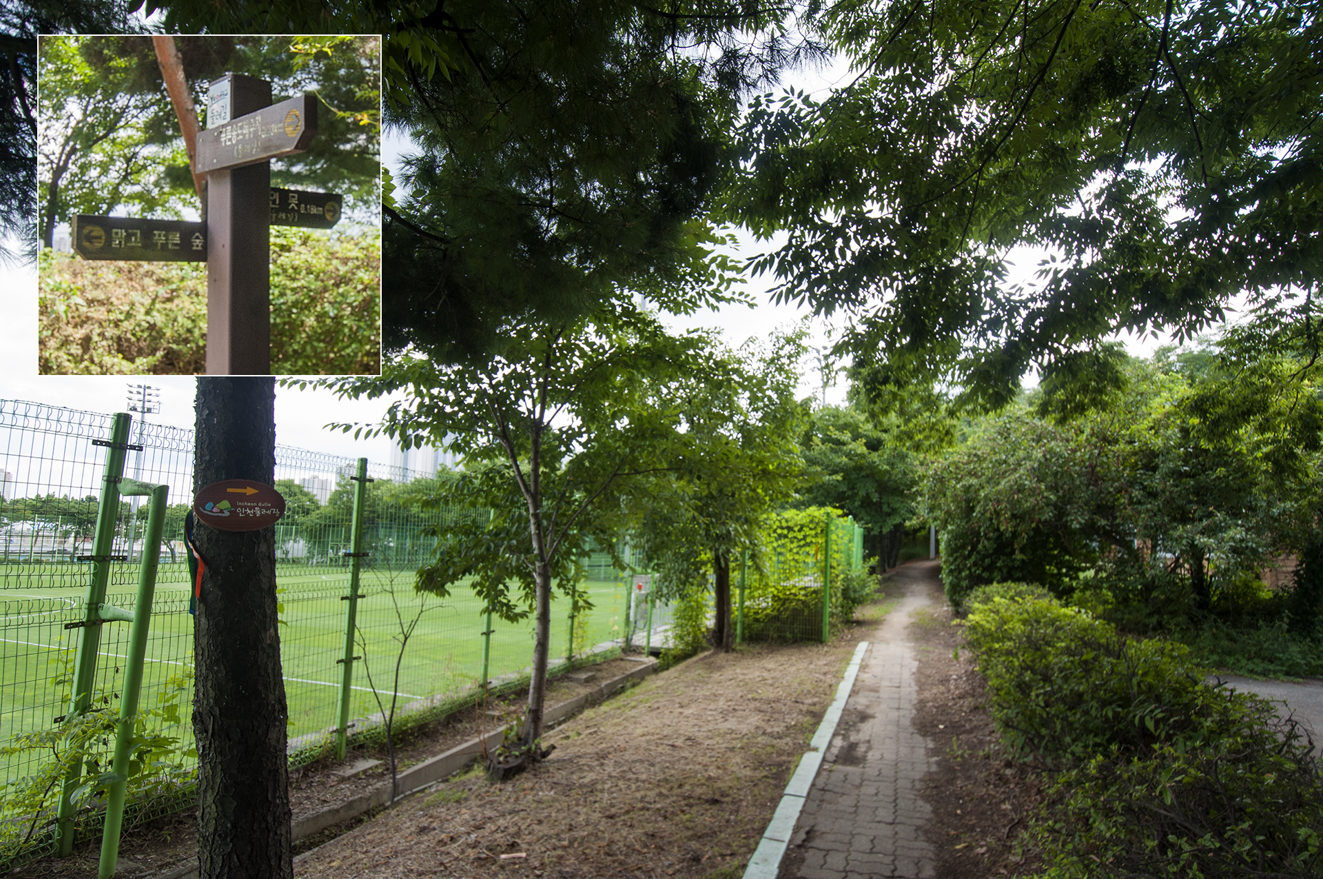 에어건 시설을 지나 운동장을 보면서 둘레길을 걷다보면