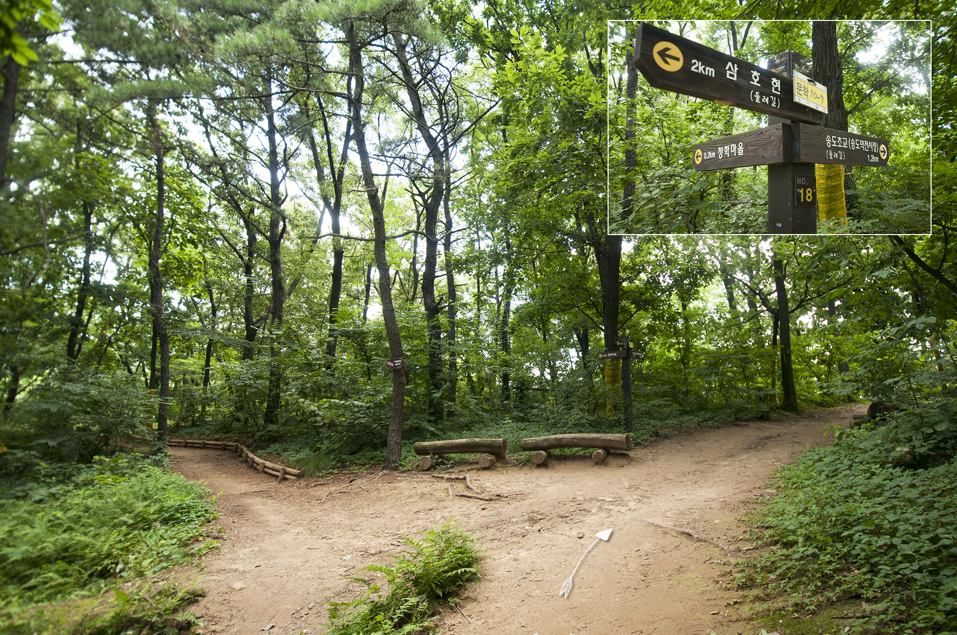 이제부터는 문학산탐방로를 따라 길을 걸으면 된다.