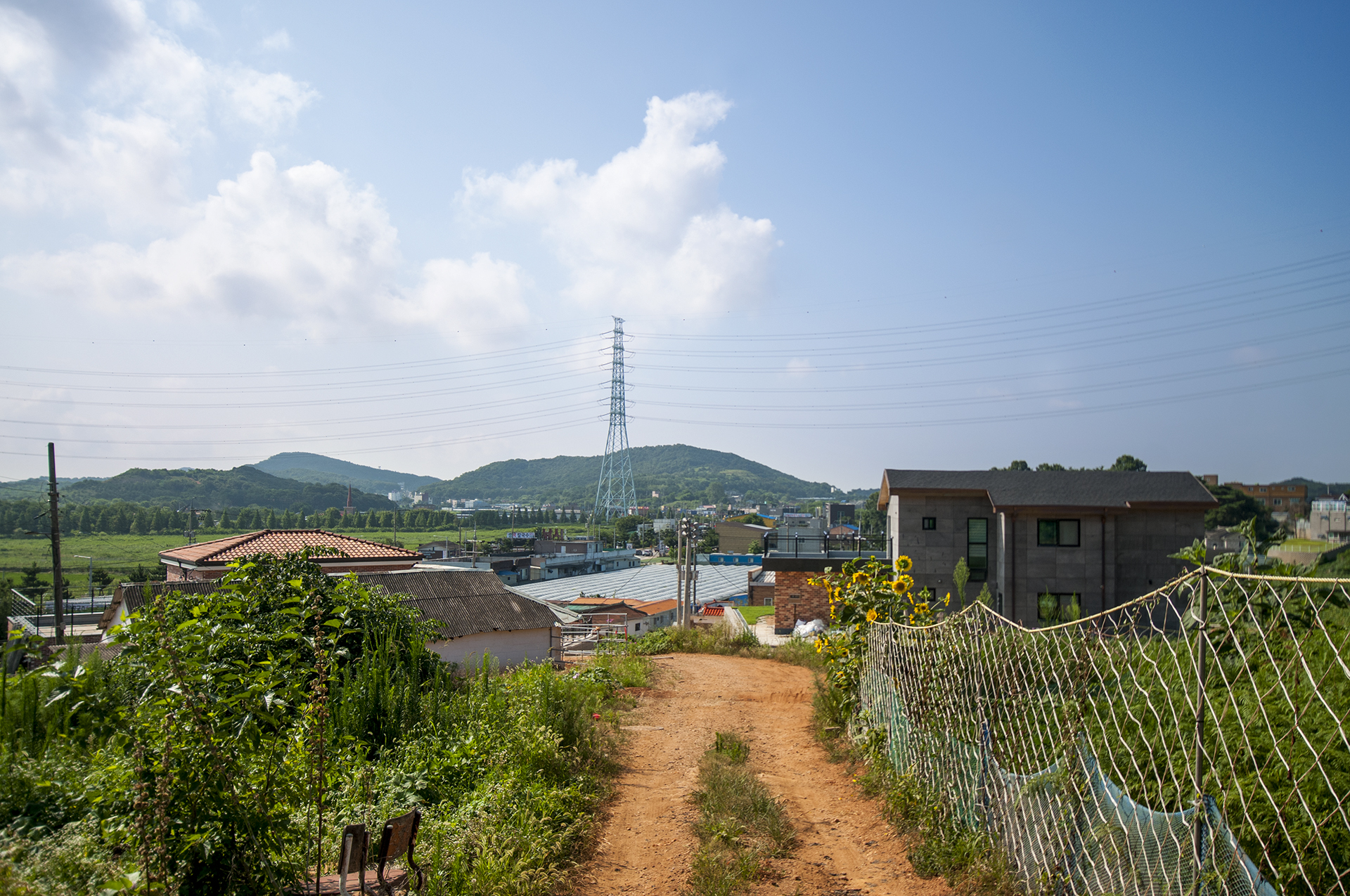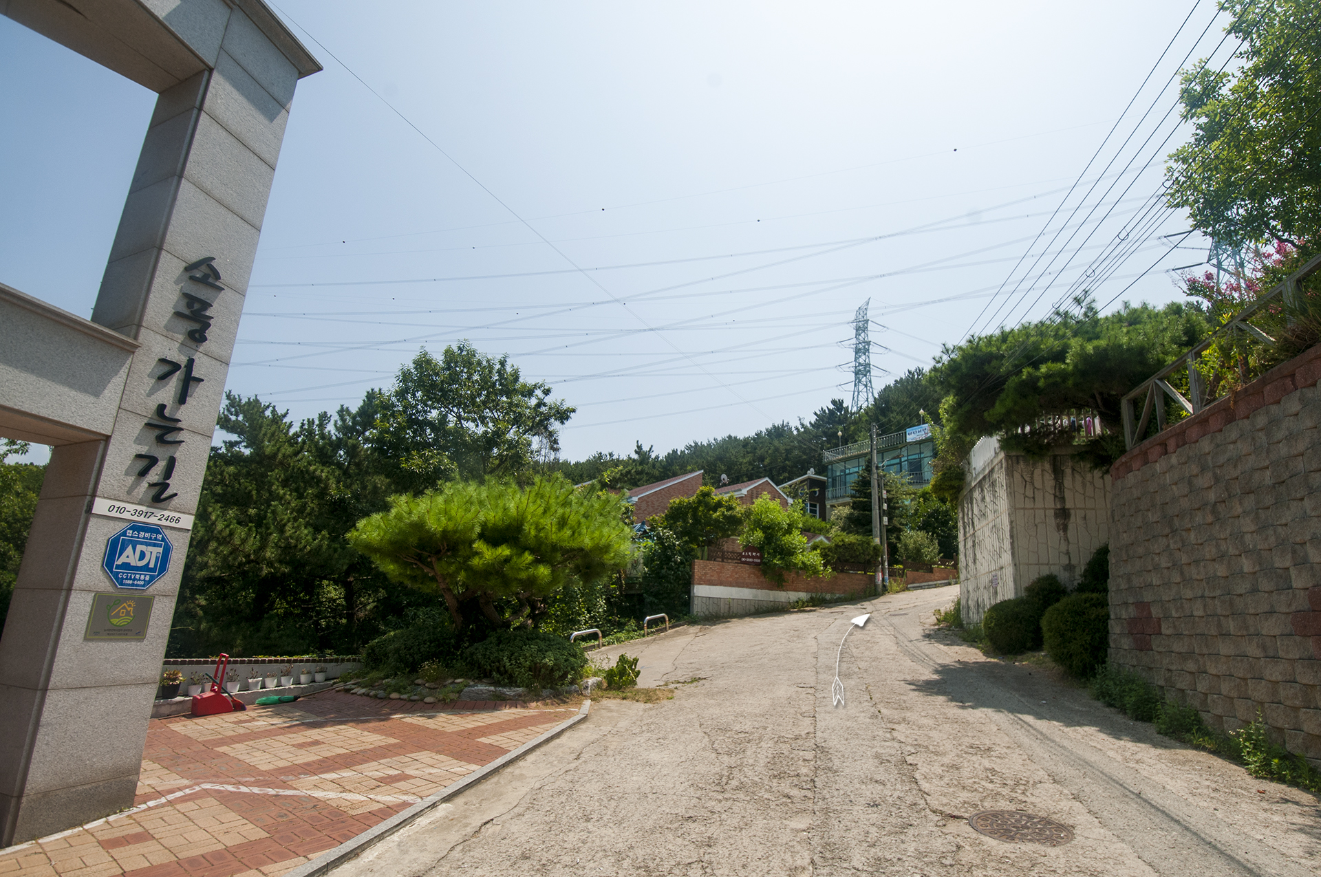 5~6분 정도 걷다보면 잠시 숲을 벗어나 마을길로 들어서게 된다.