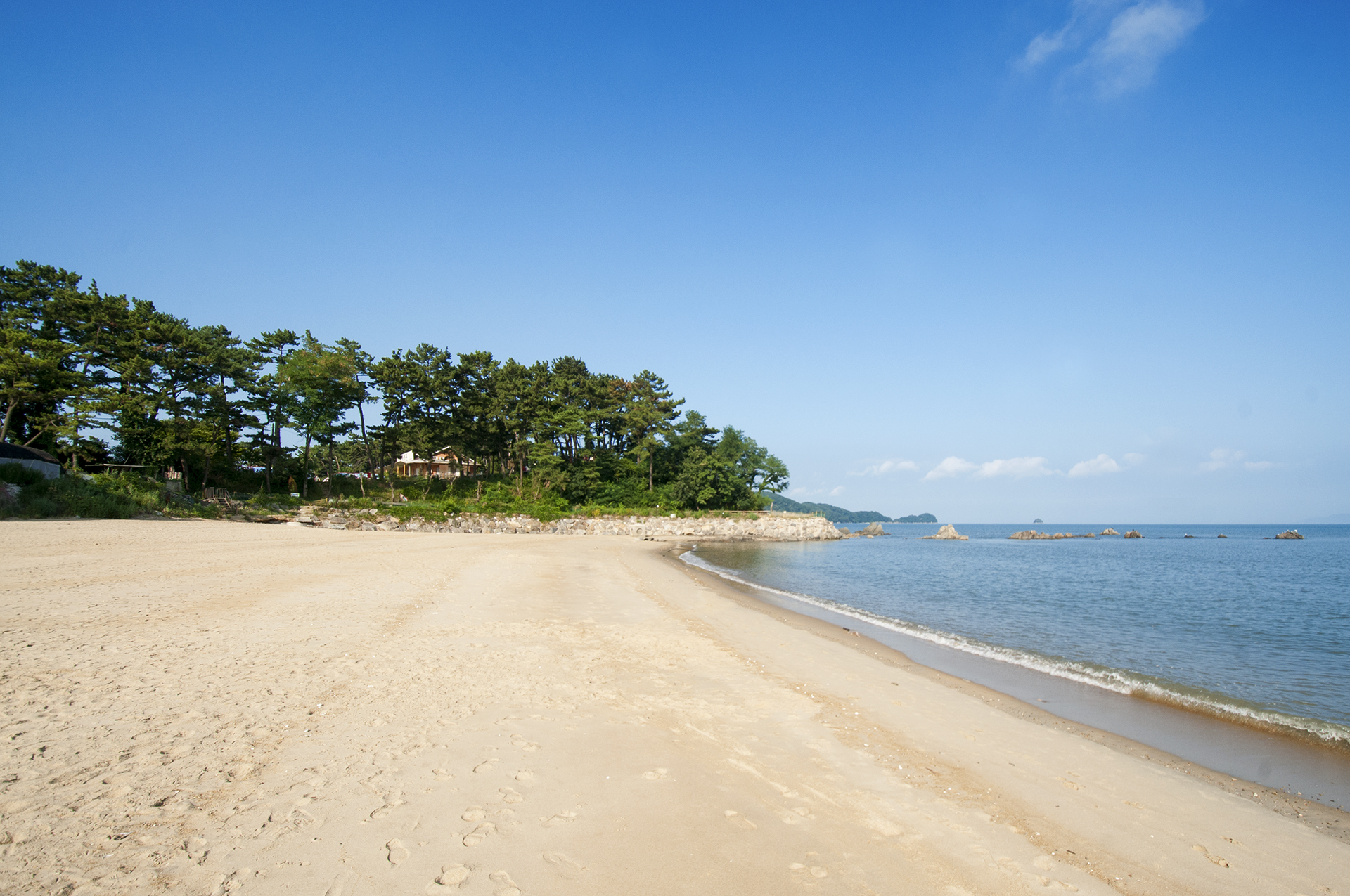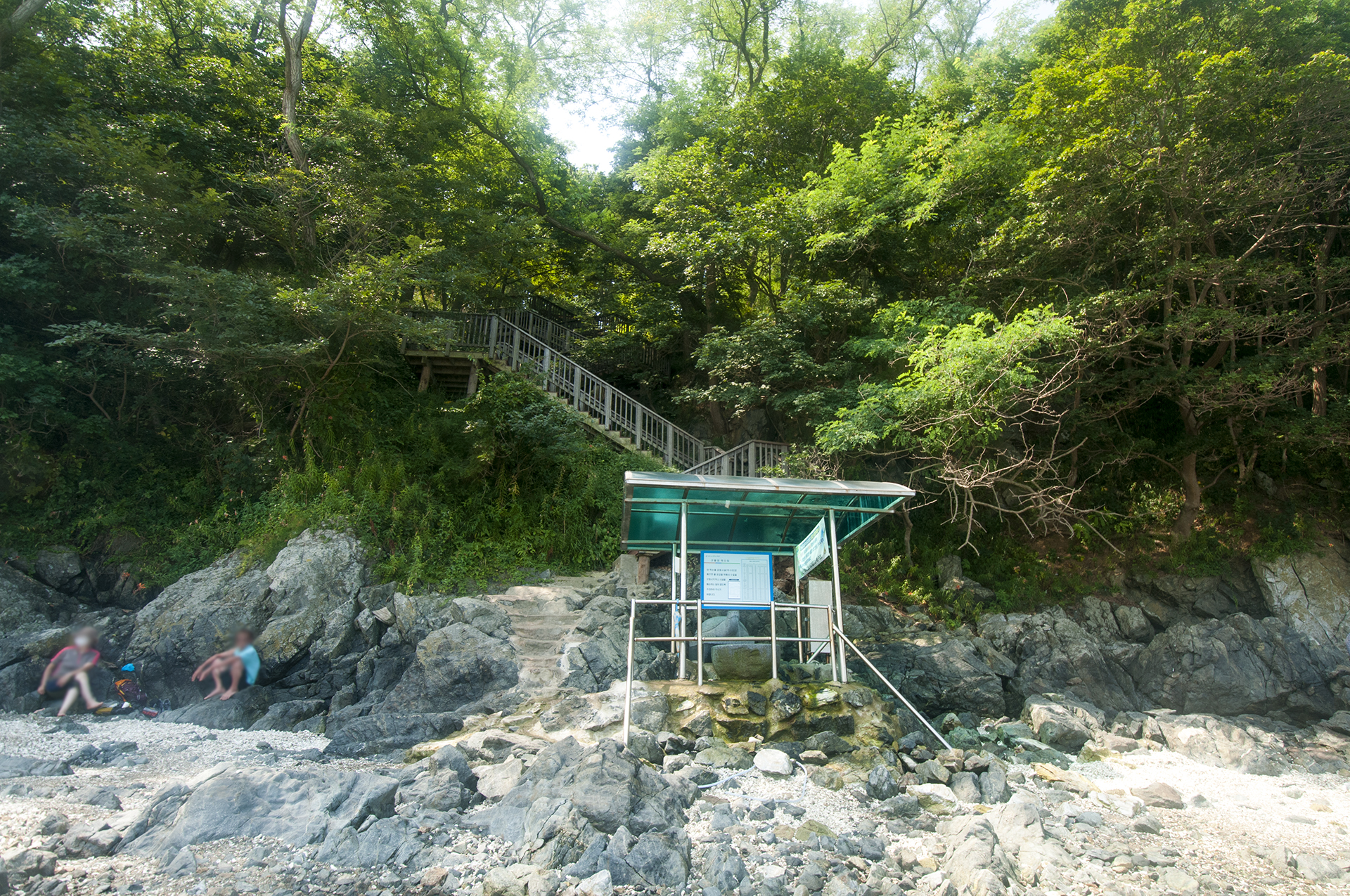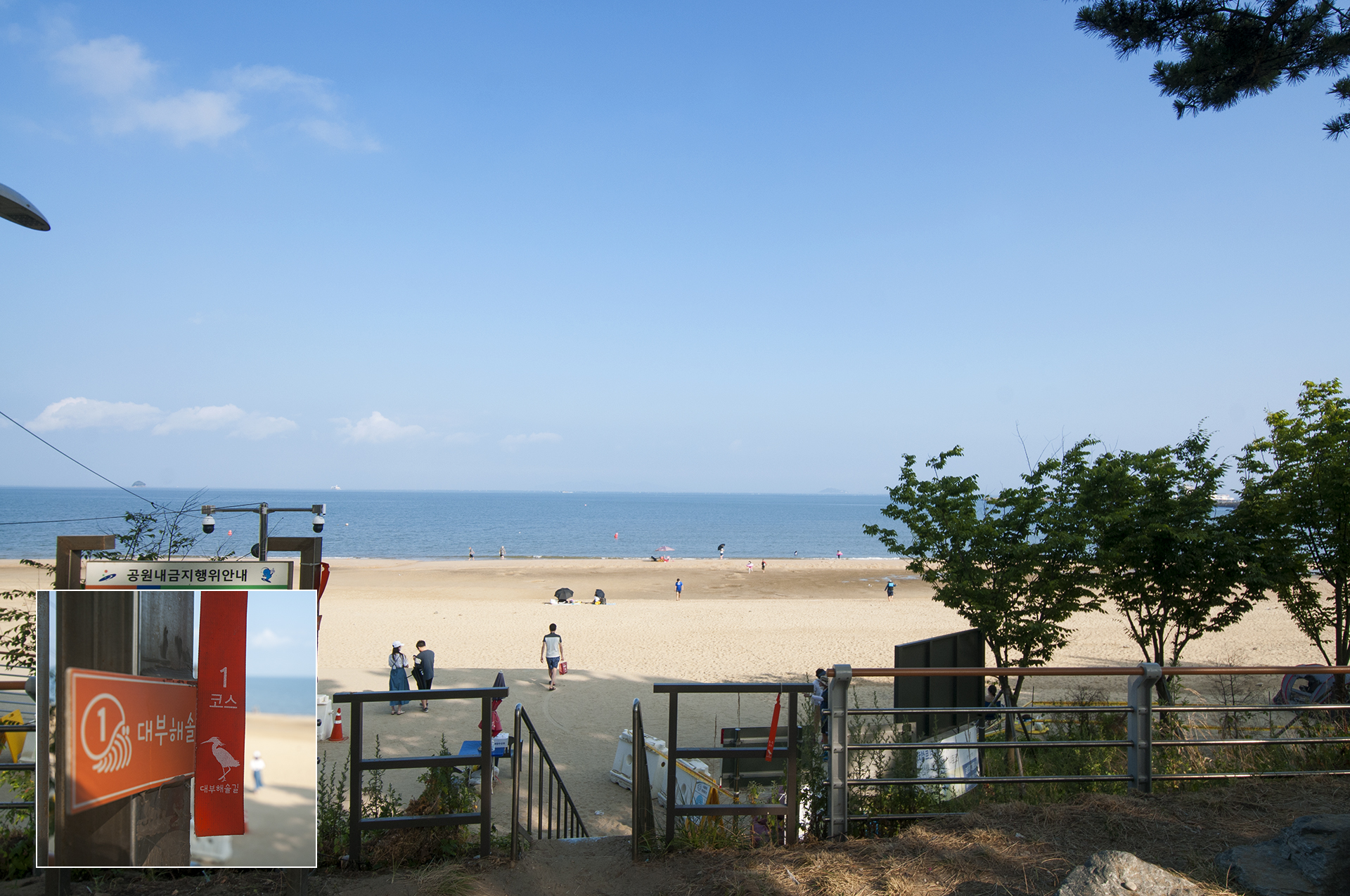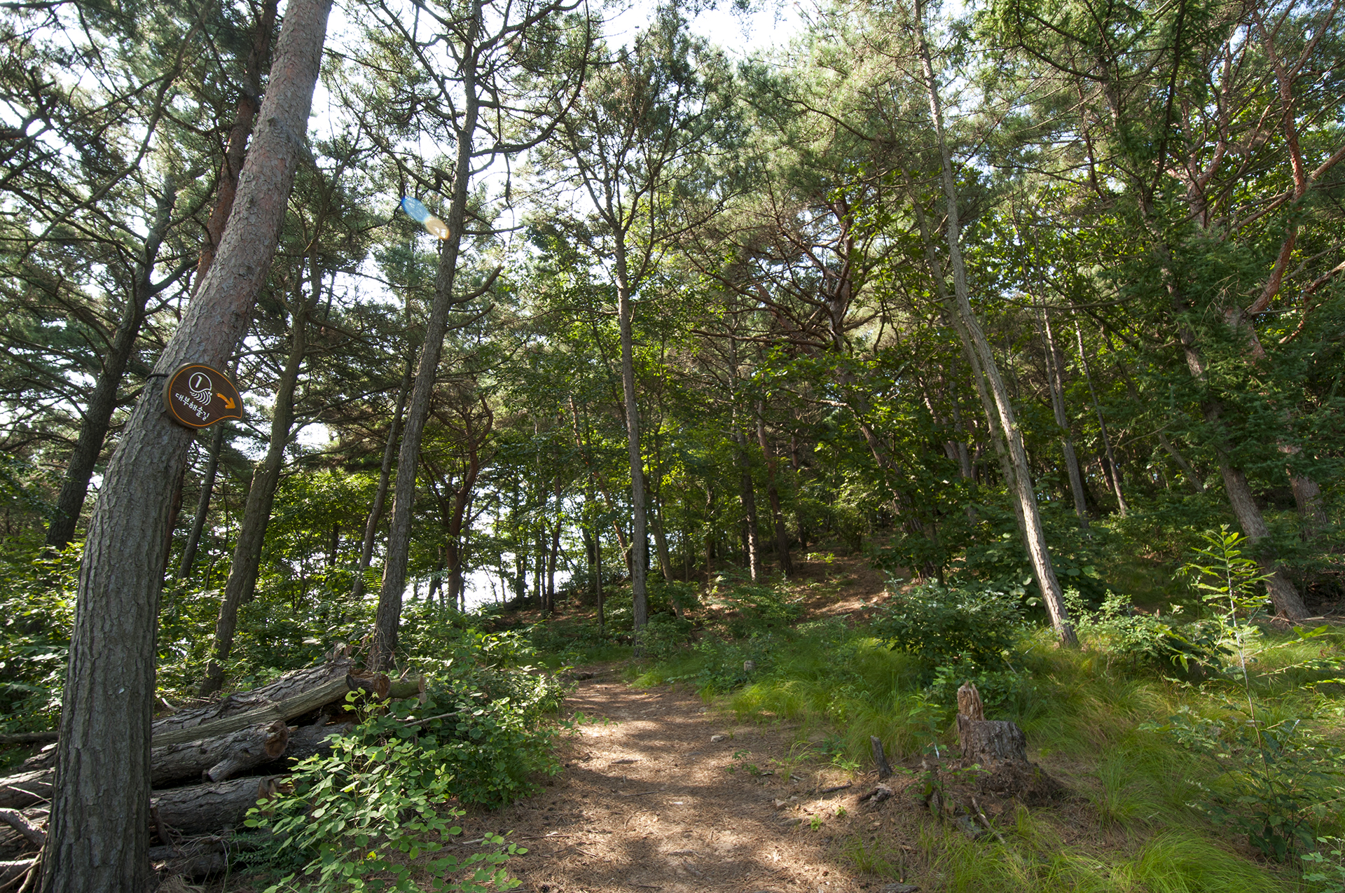해송이 시원한 그늘을 만들어주는 산책로를 따라 걷다가 끝부분에서 해변으로 내려간다.