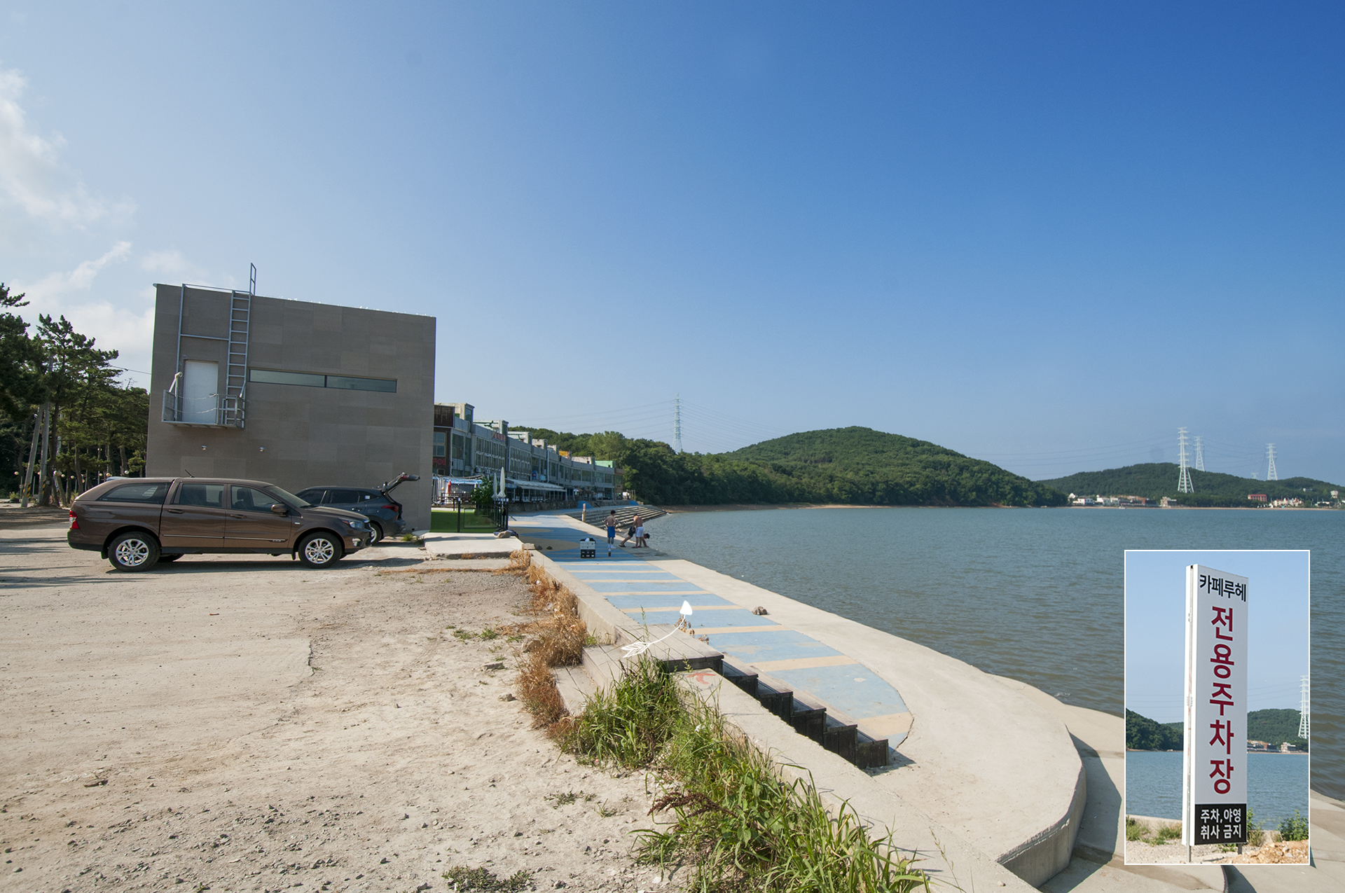카라반 캠핑장을 지나고, 카페 루헤 전용주차장에 들어서면 카페 뒷쪽 해안가로 걸어야 한다.