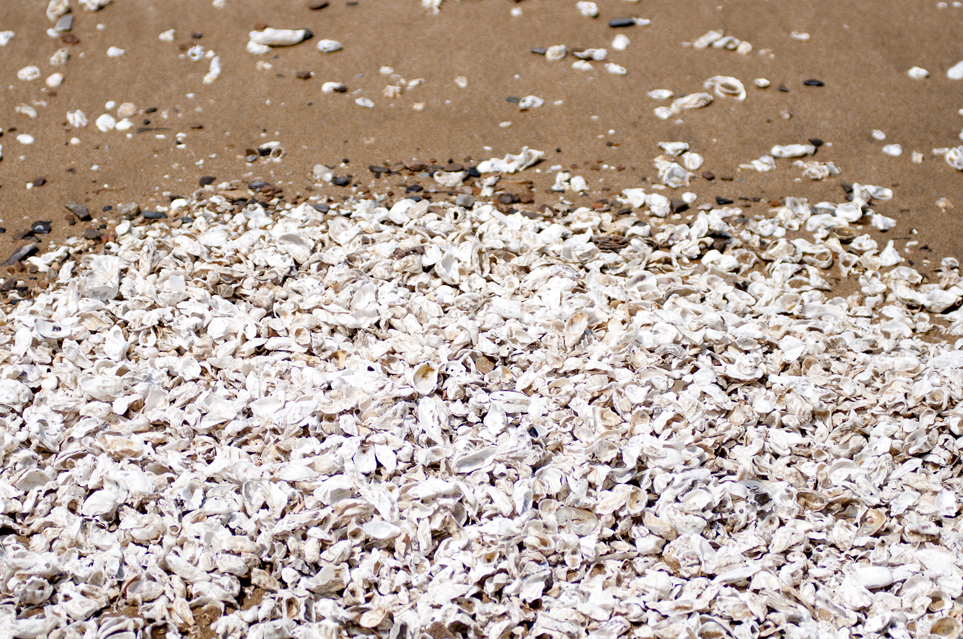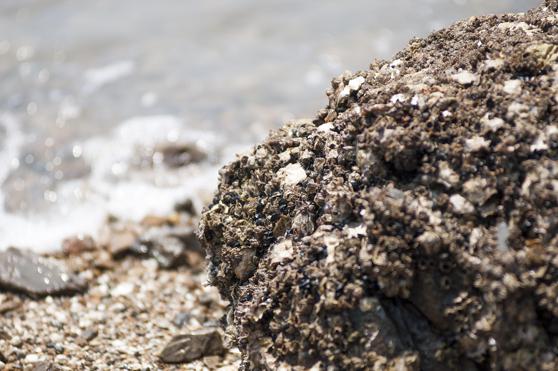 굴껍질과 따개비들이 다닥다닥 붙어있는 바위는 온통 석회질 껍데기로 장식되어 있다.