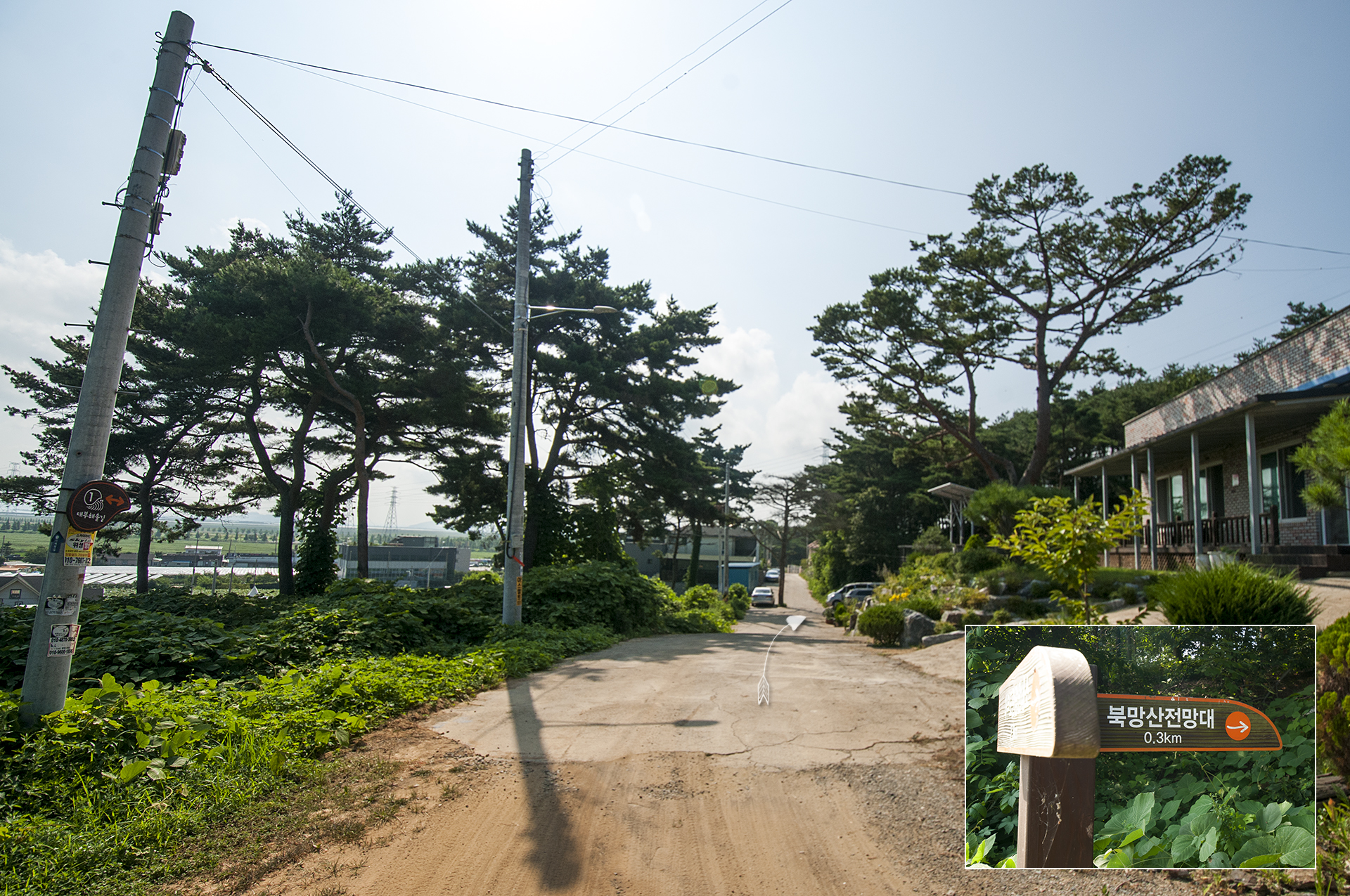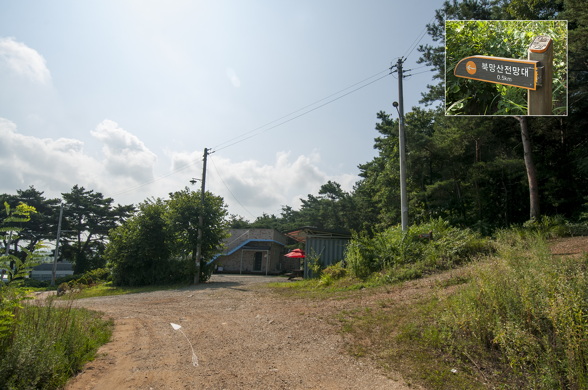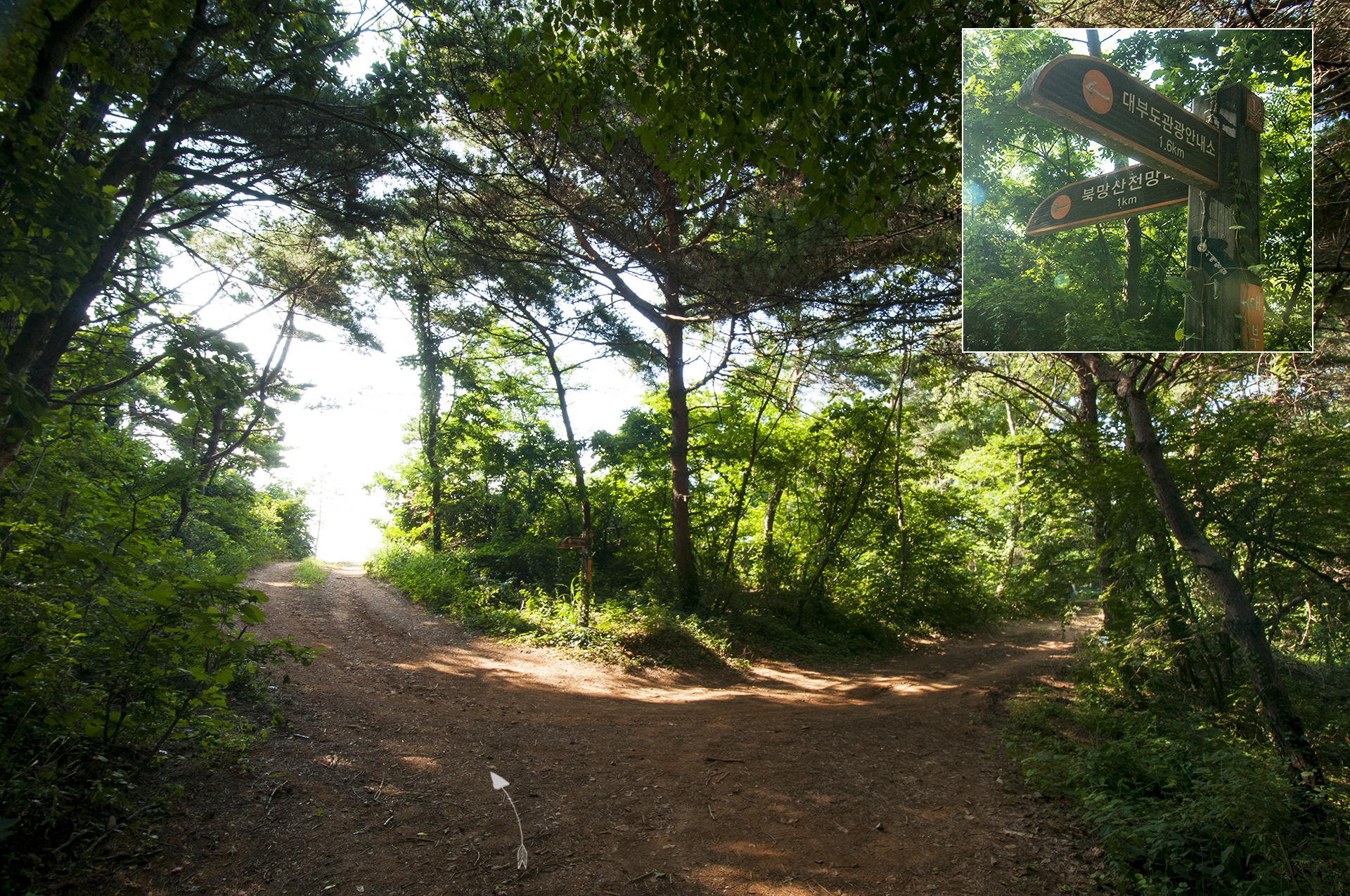 북망산전망대가 0.5km 남은 지점, 산으로 올라가지 않고 왼쪽 길로 잠시 내려간다.