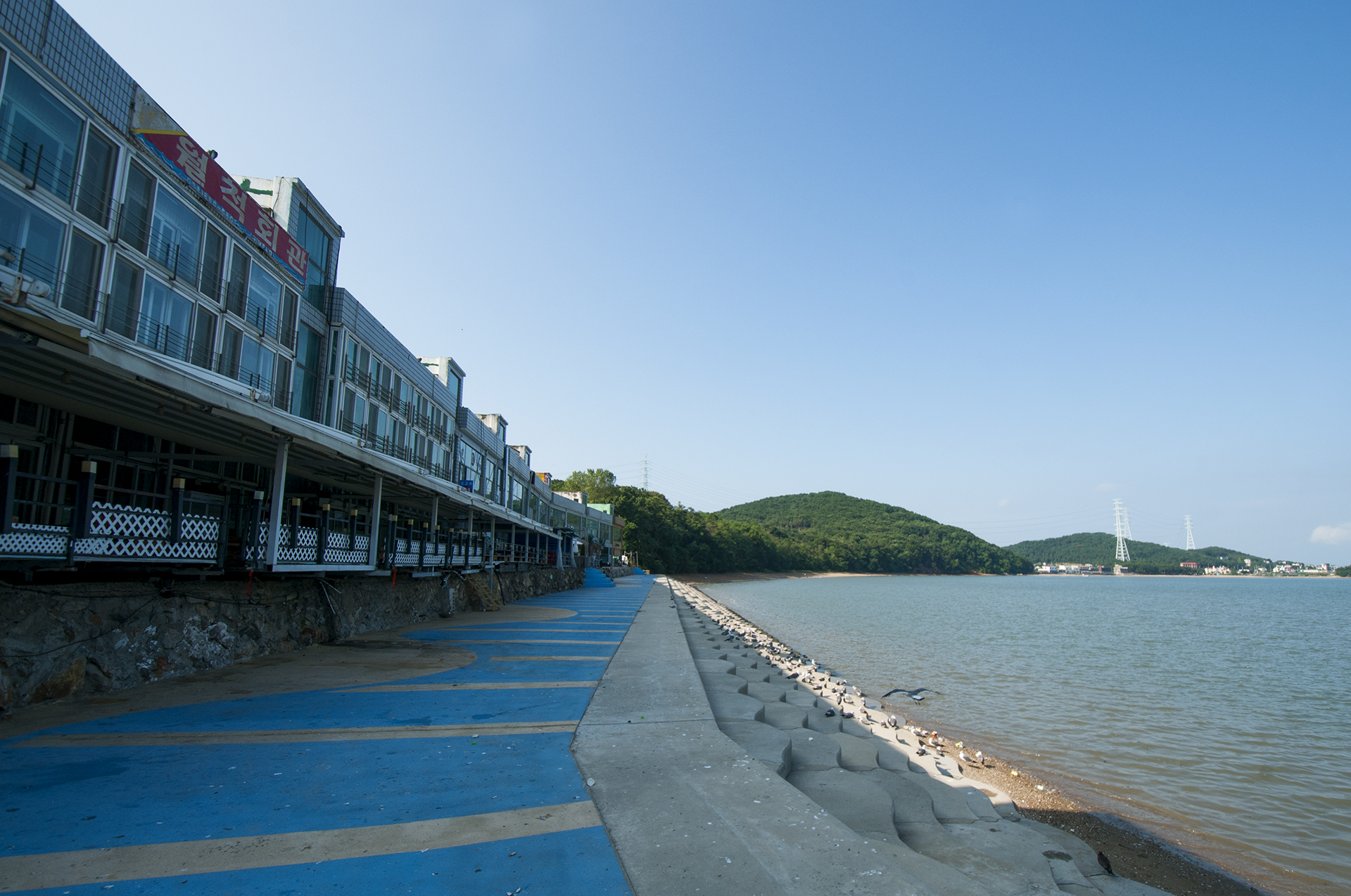 해안가로 식당과 횟집, 카페들이 즐비하다.