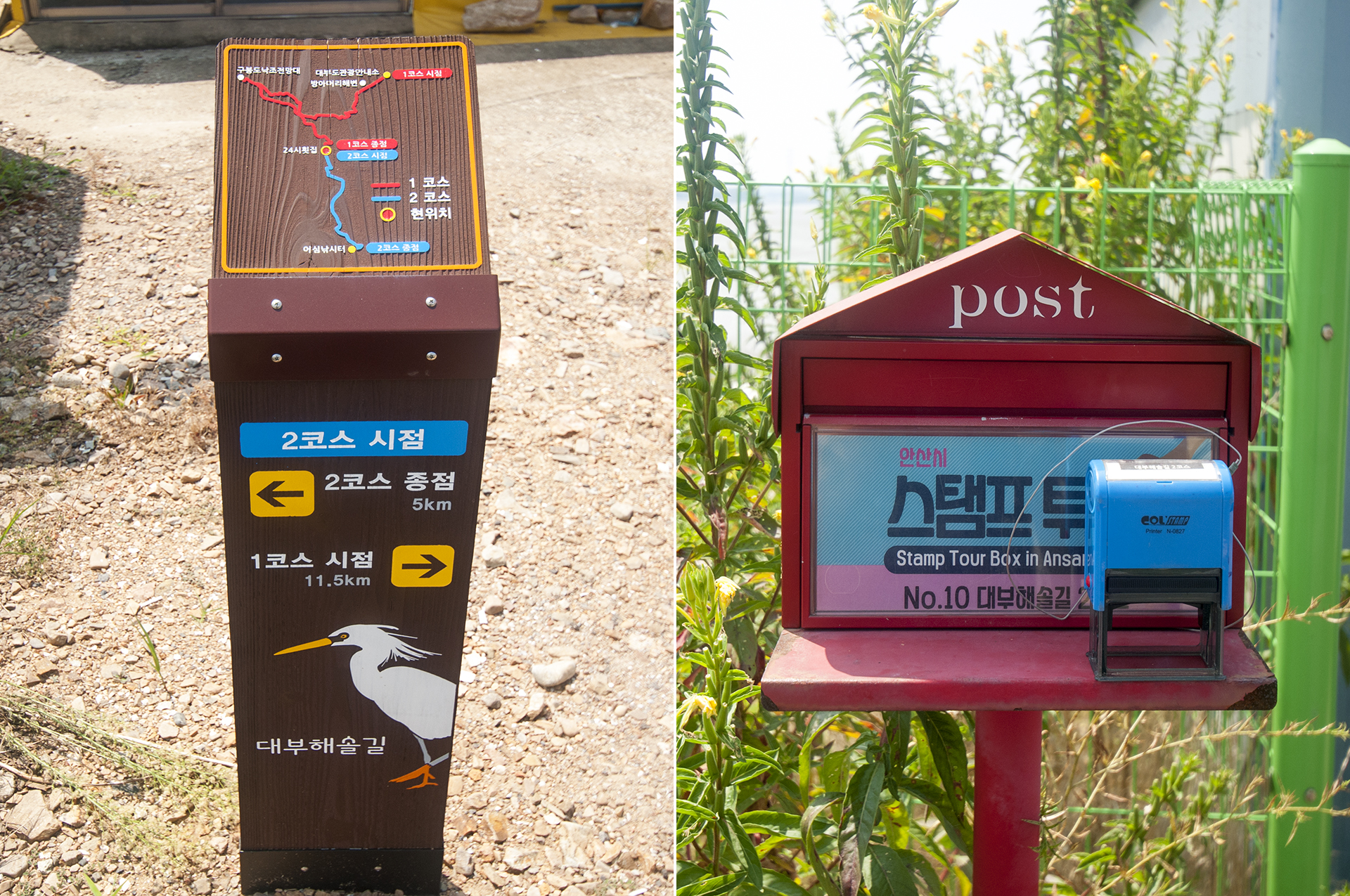 그랬지만 횟집 옆에 요렇게 종점을 알리는 코스정보와 스탬프 투어 박스가 설치되어 있었다.