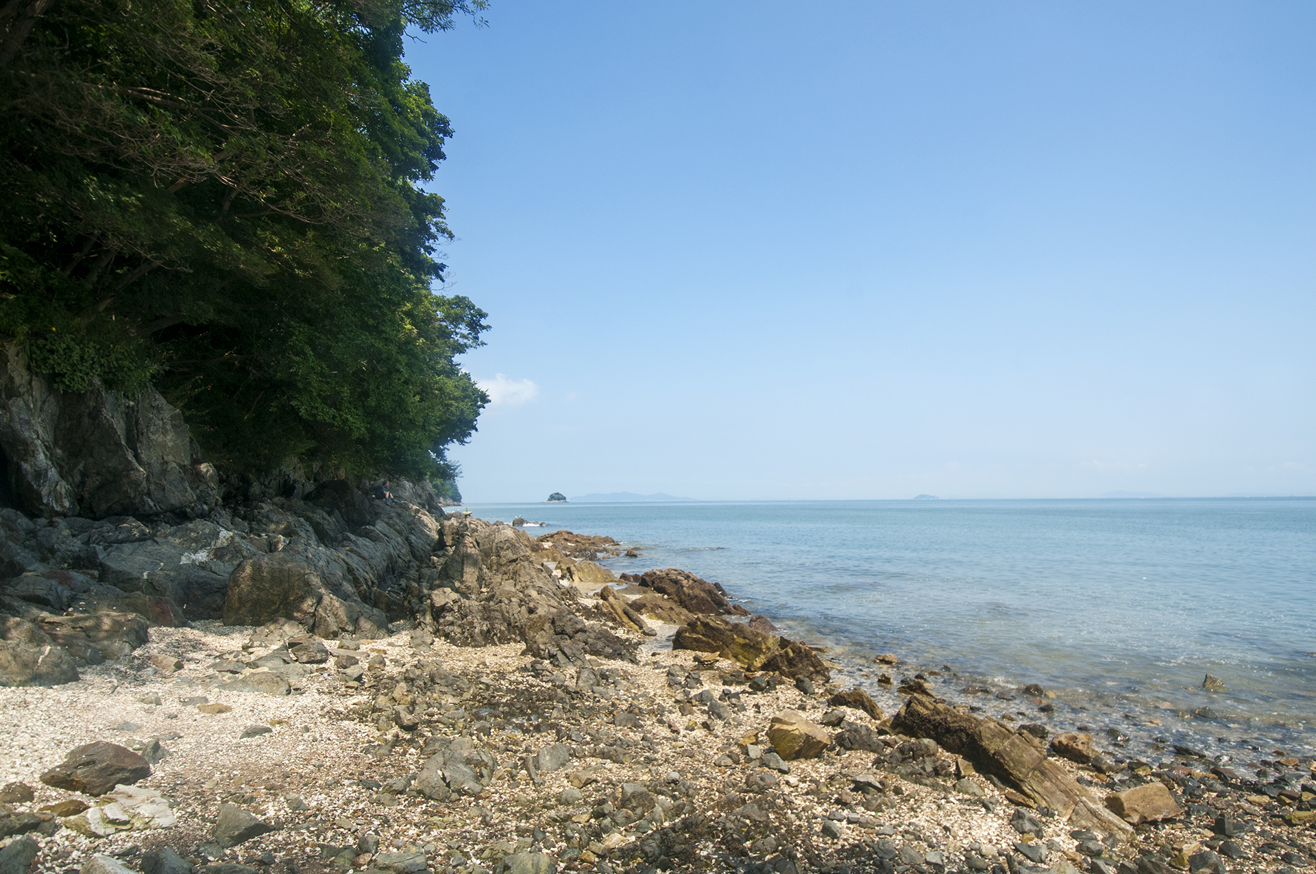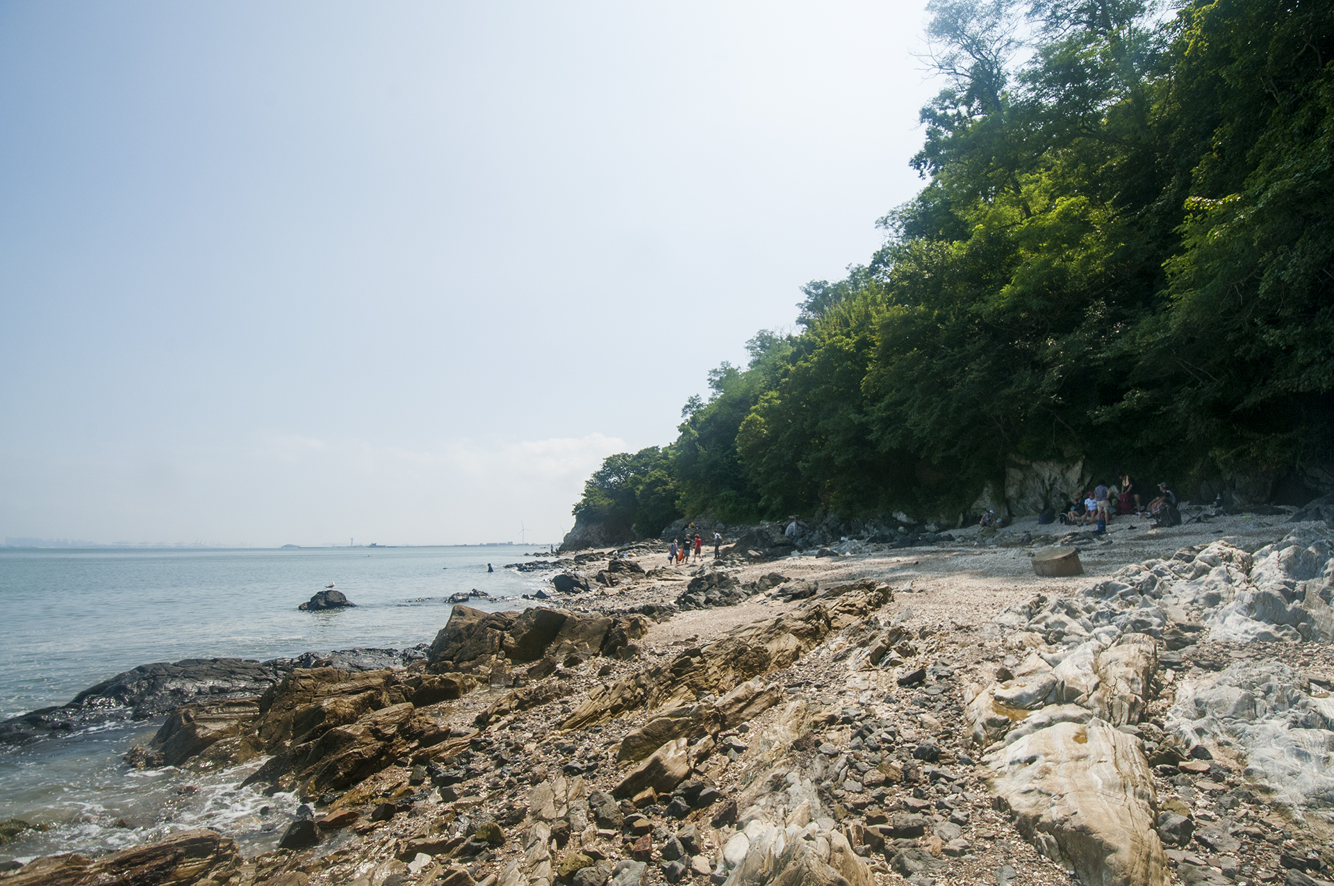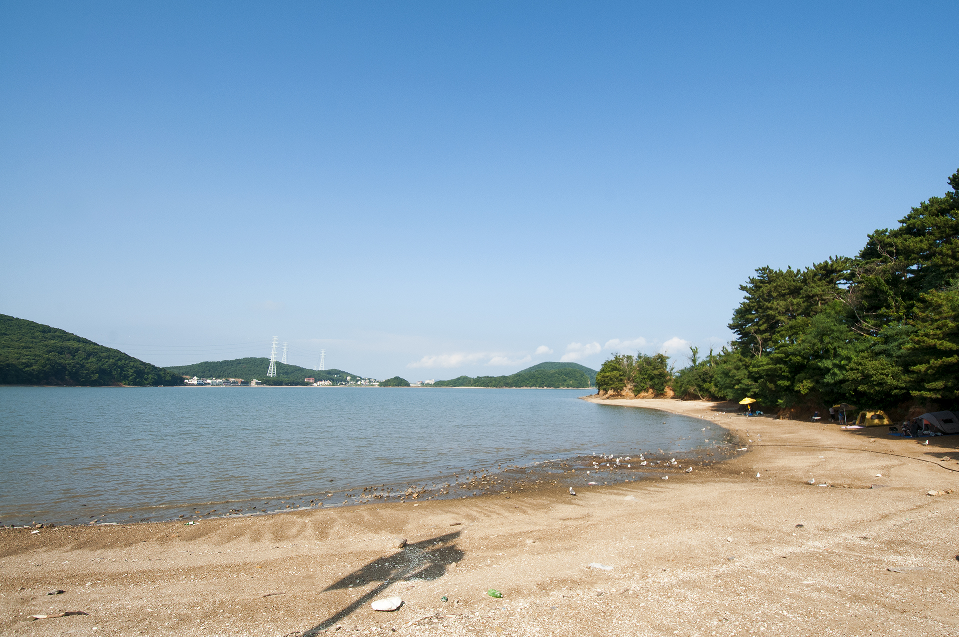 해안가로 보이는 저 숲이 바로 돈지섬, 오늘의 종착지점이 되는 곳이다.