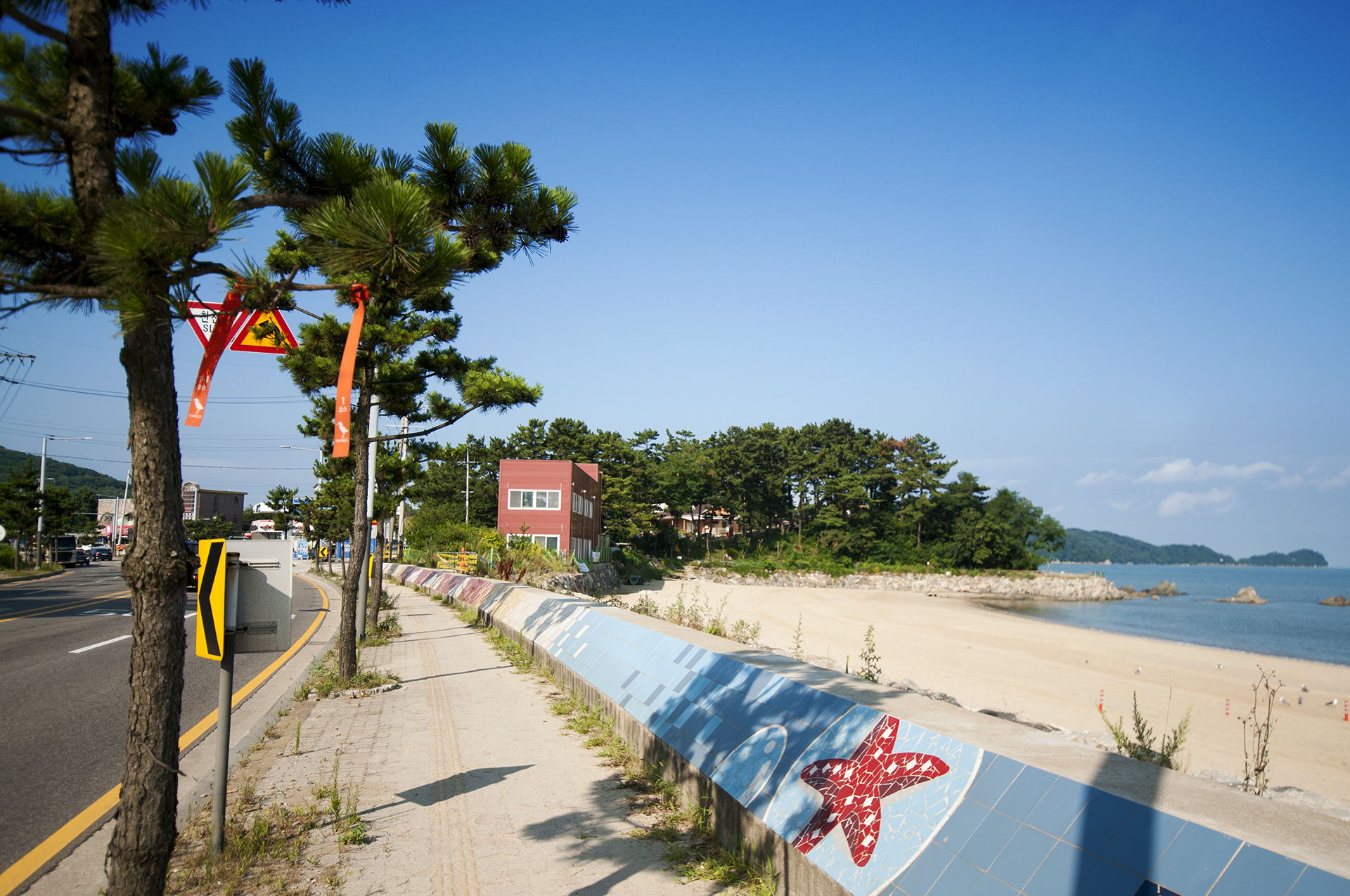 버스를 타기 위해 왔던 길(대부해안로)를 다시 돌아가 푸른섬캠핑장 입구를 지나 계속 도로를 따라 걸으면 된다.
