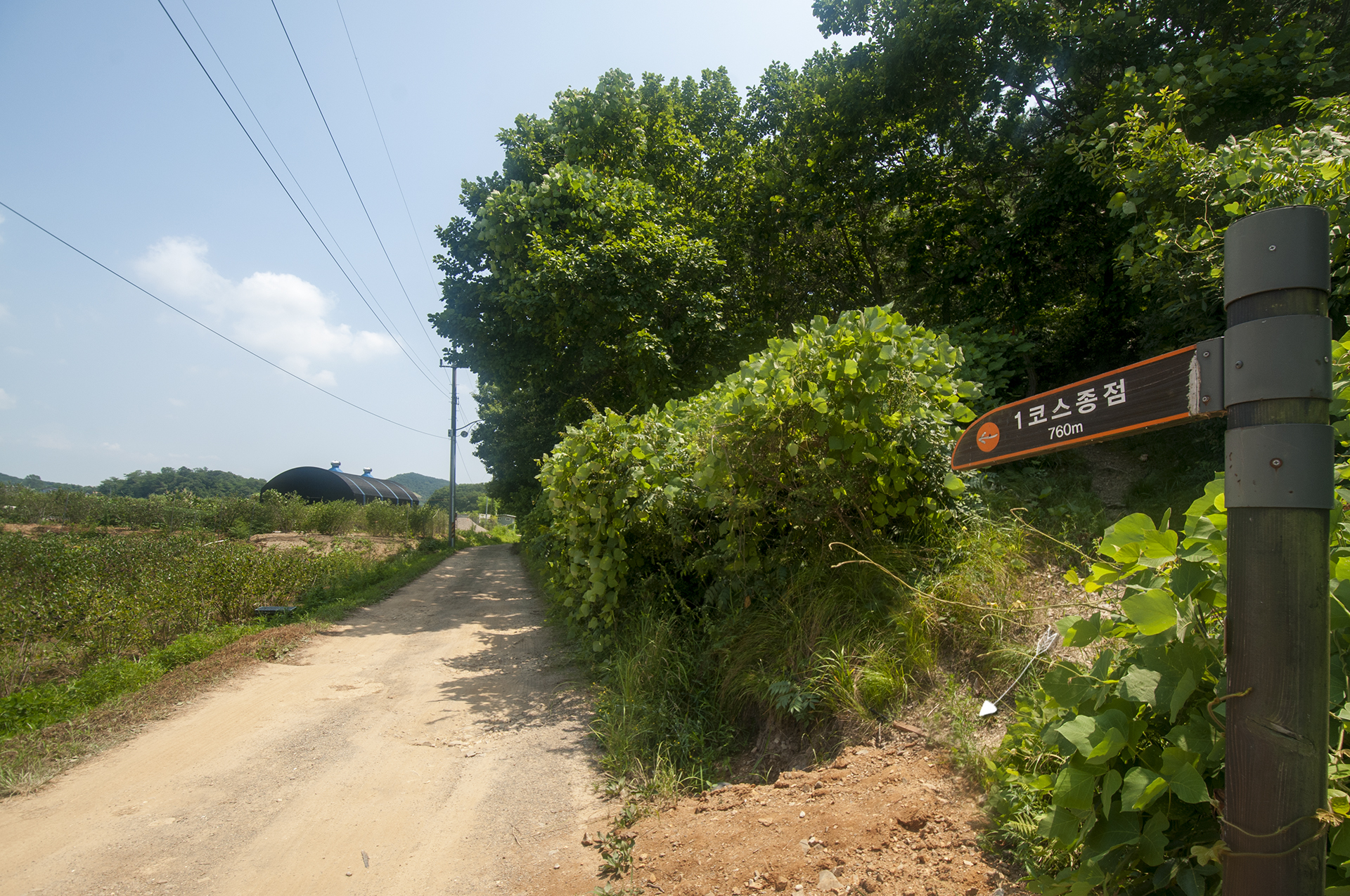 이렇게 돈지섬 숲길을 빠져나오면 이제 종점까지 760m 남았다는 반가운 이정표를 만나게 된다.