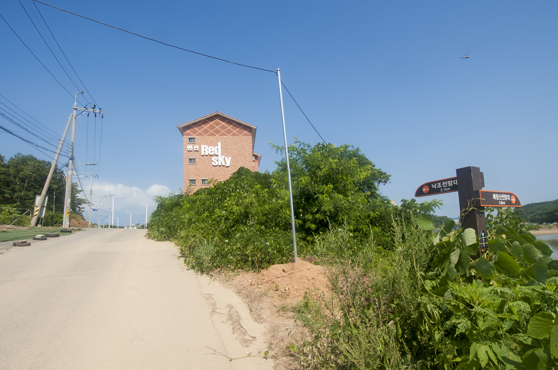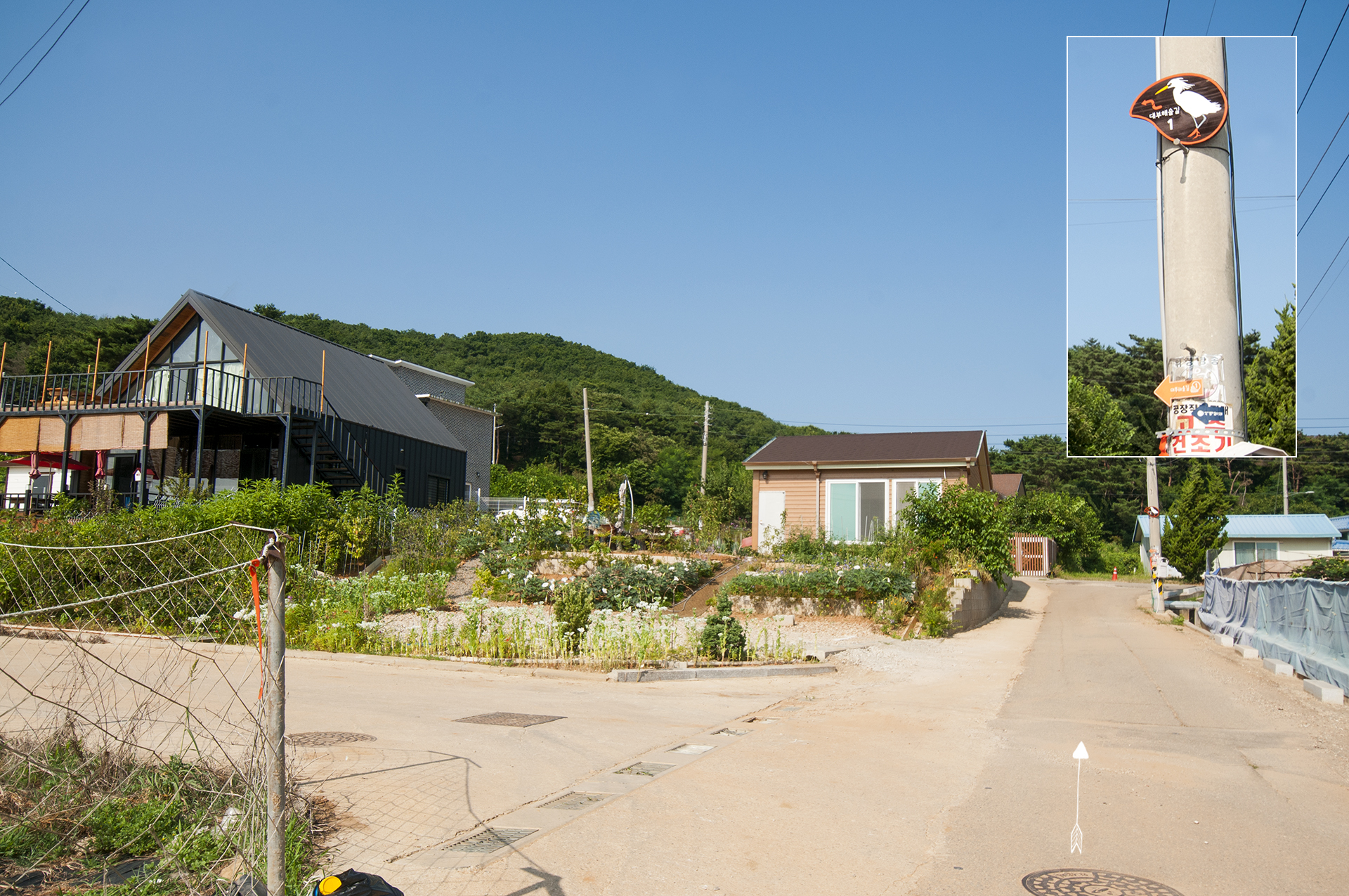 삼거리에 도착하면 왼쪽에 바로 보이는 노을이 아름다운 펜션으로 간다.