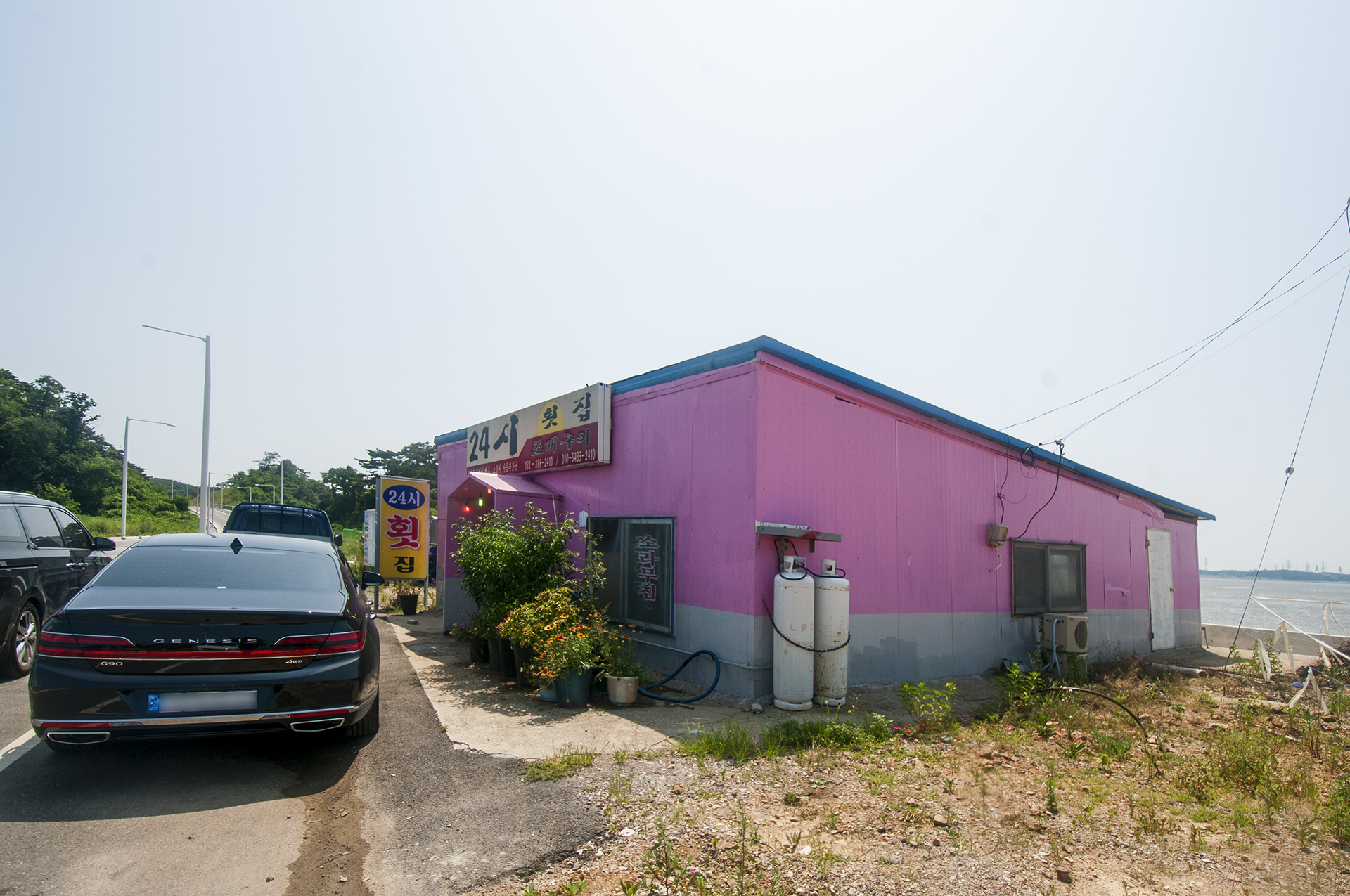 안산친환경 수산종자 생산센타 앞을 지나면 전방에 덩그러니 자리잡은 오늘의 종점, 24시 횟집이 보인다.