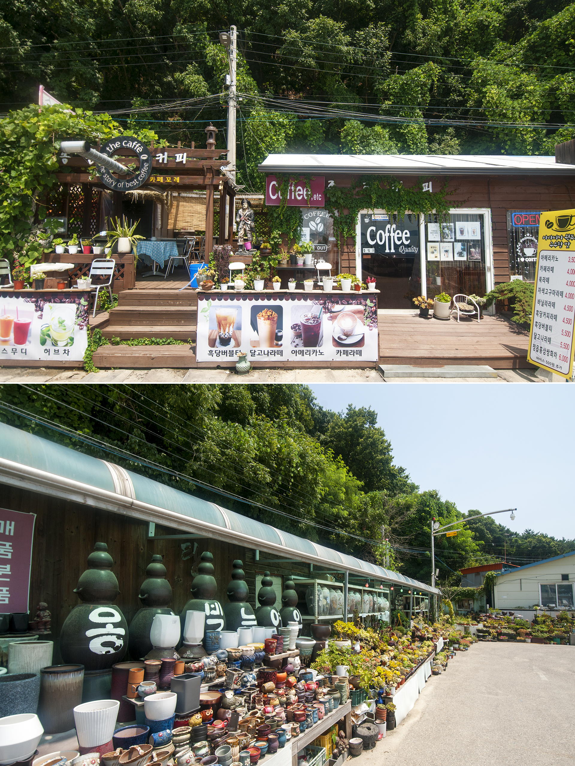 카페와 옹기빚는 여인이라는 다육이 매장도 있다.