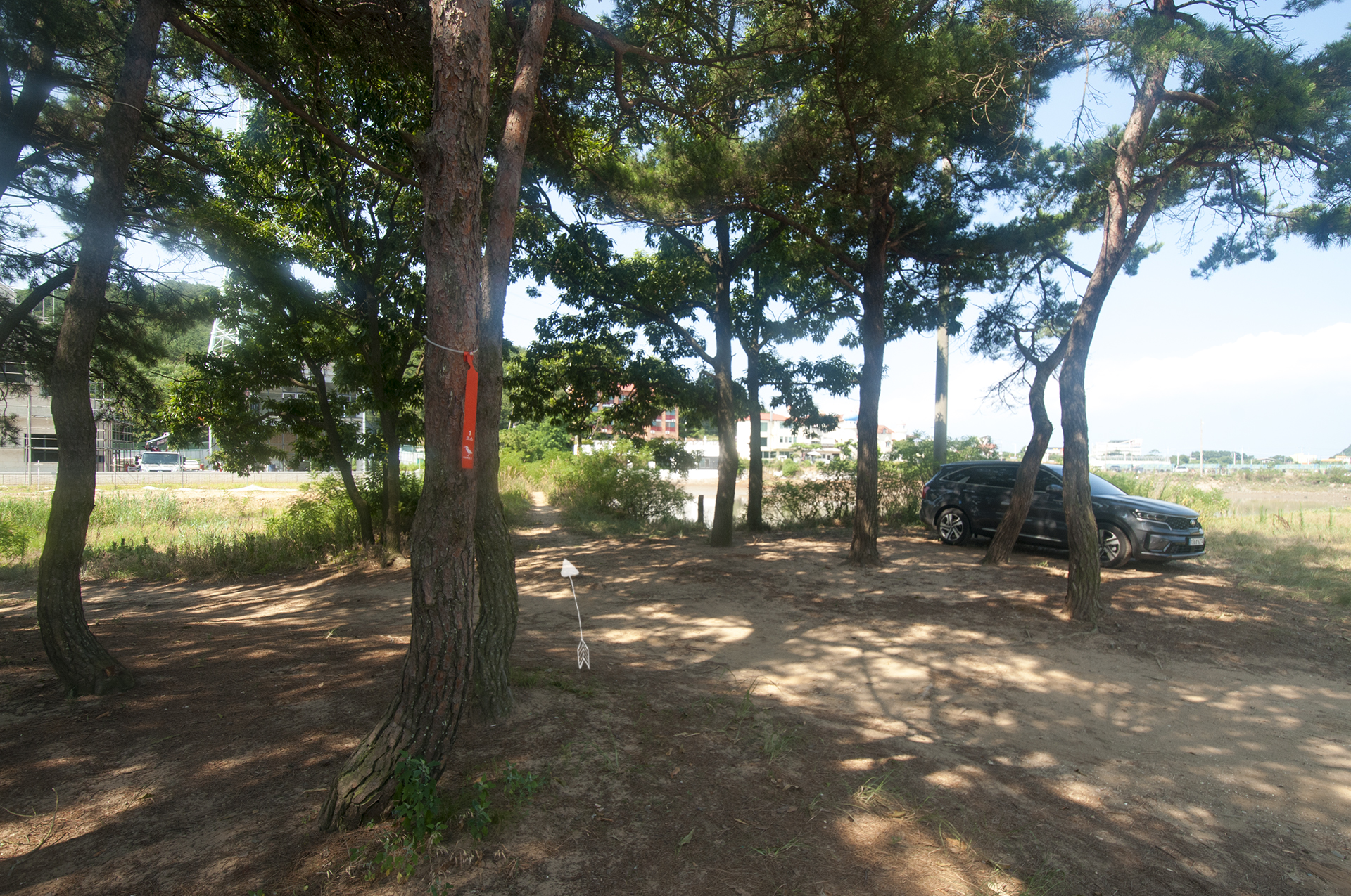 해솔길 안내를 따라 계속 직진하면서 푸른섬캠핑장 전용주차장을 지난다.