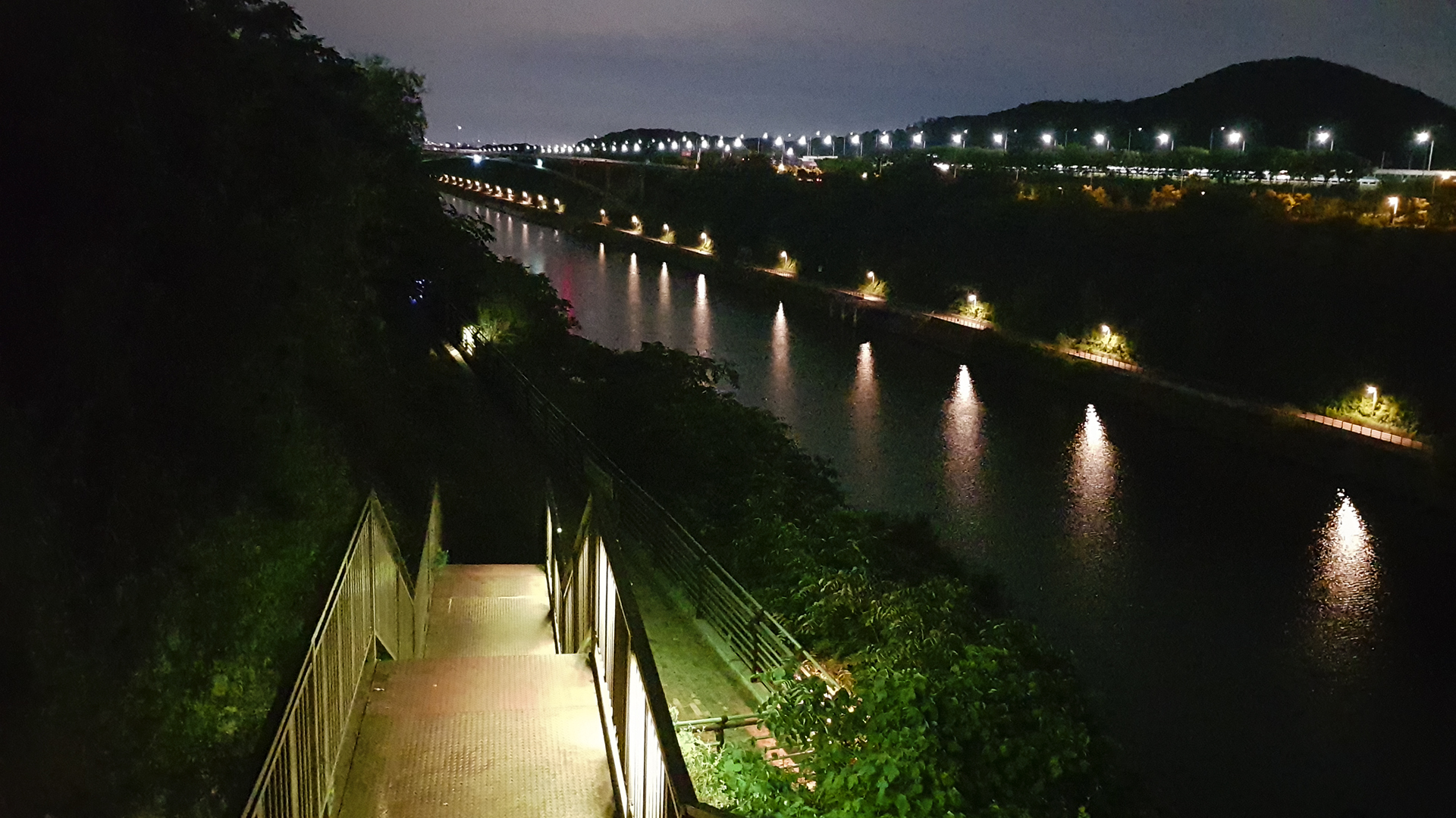 아래 보이는 길은 국토종주자전거길로 야간에도 라이딩하는 분들이 의외로 많았다.