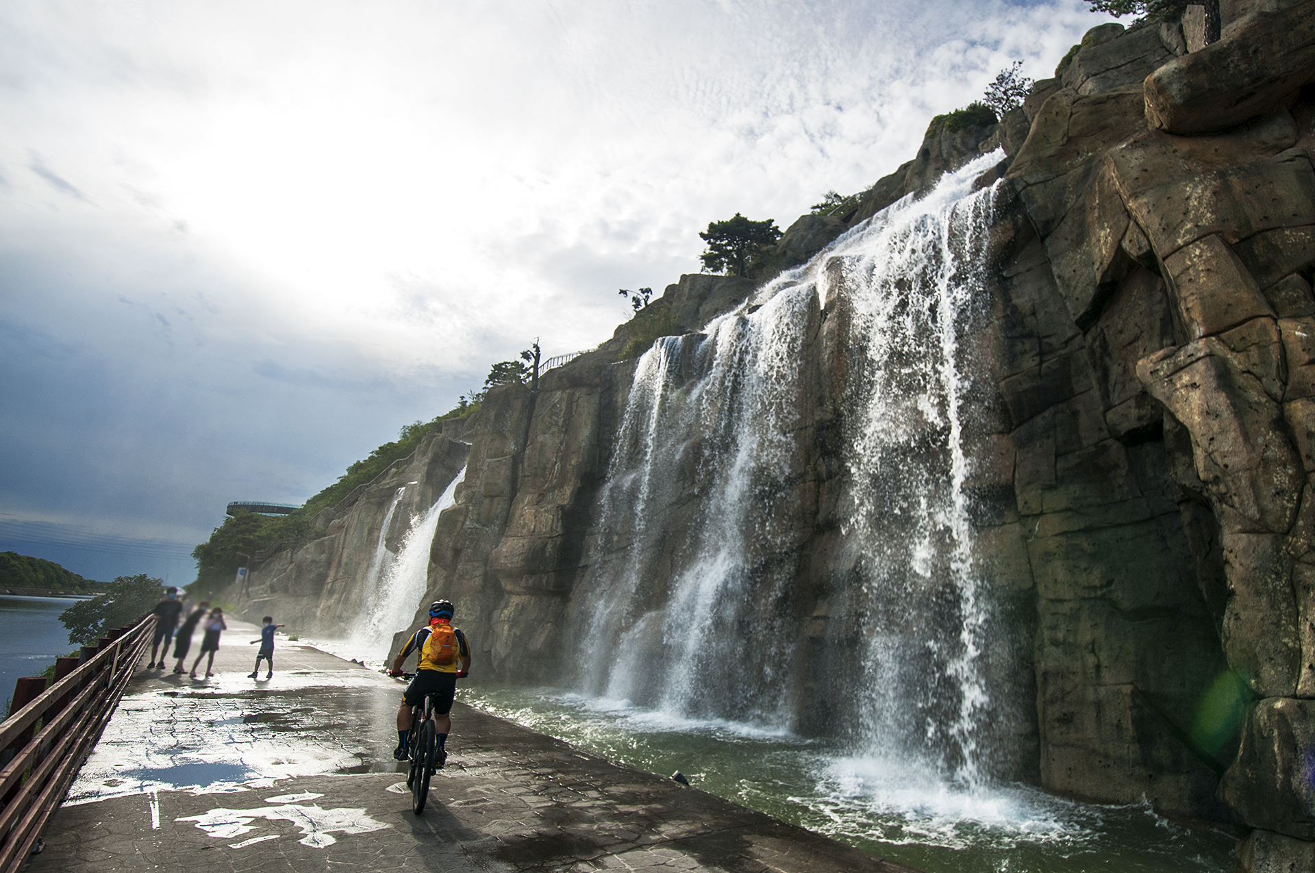 폭포 하단부로 내려오니 이 시간에도 자전거 라이딩하시는 분들이 지나간다.