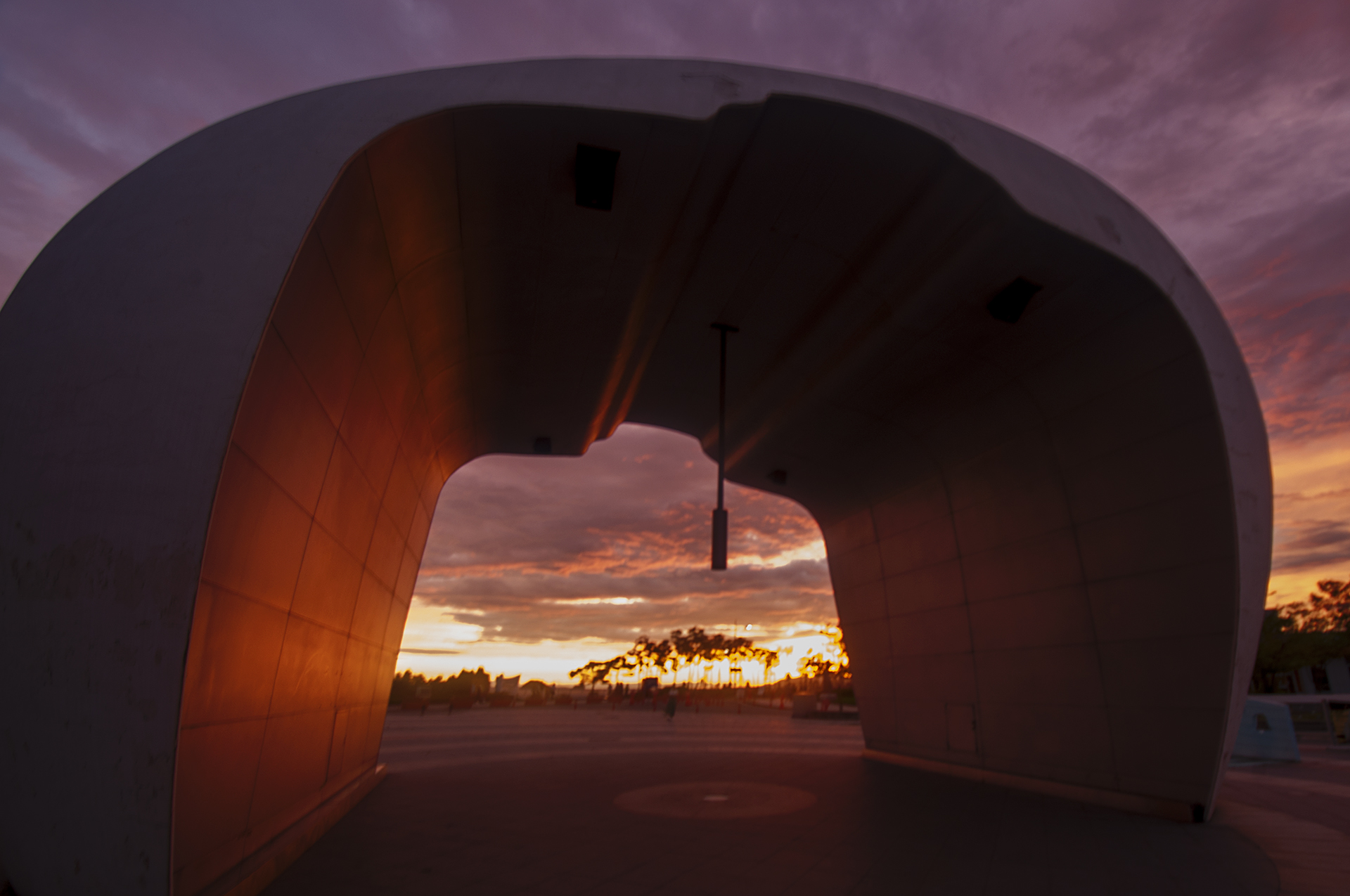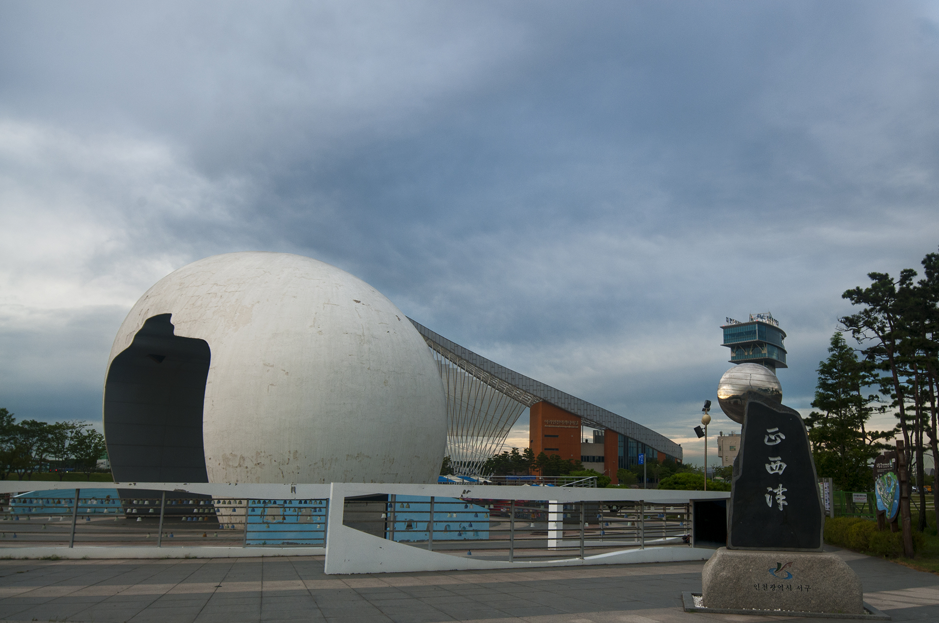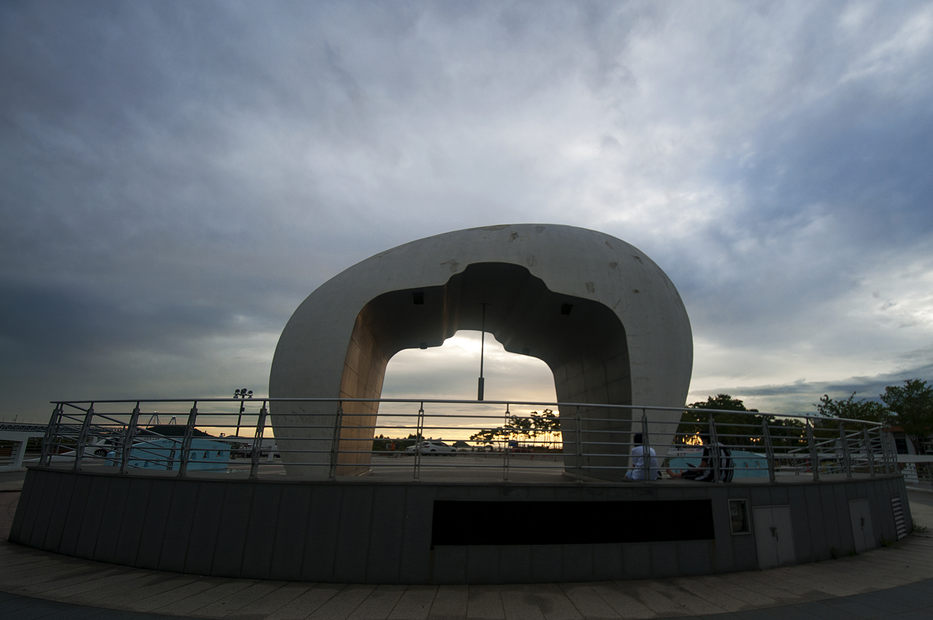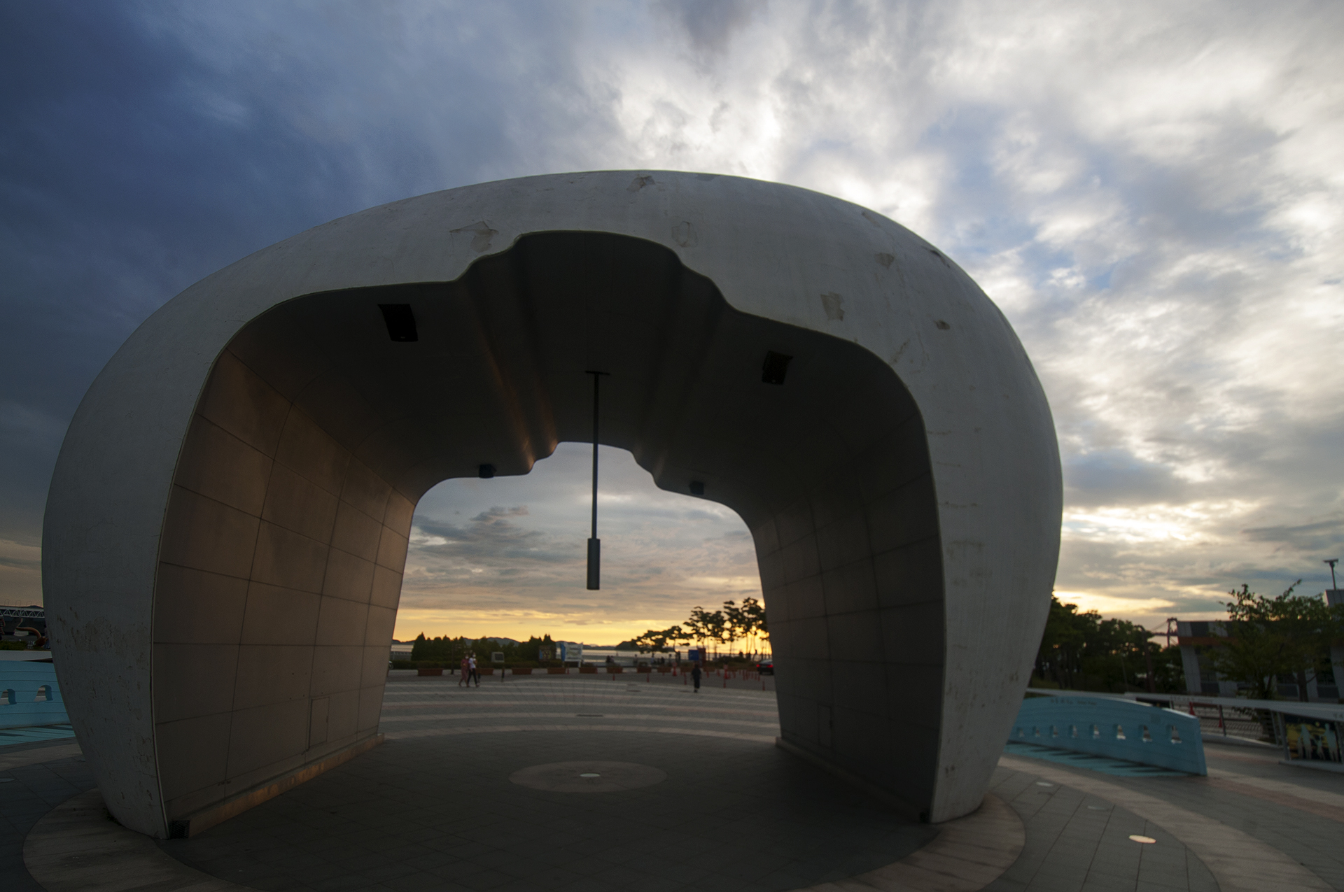 하늘빛과 낙조의 변화에 따라 상단 원형 구의 색깔이 변하며 다양한 모습이 연출된다.