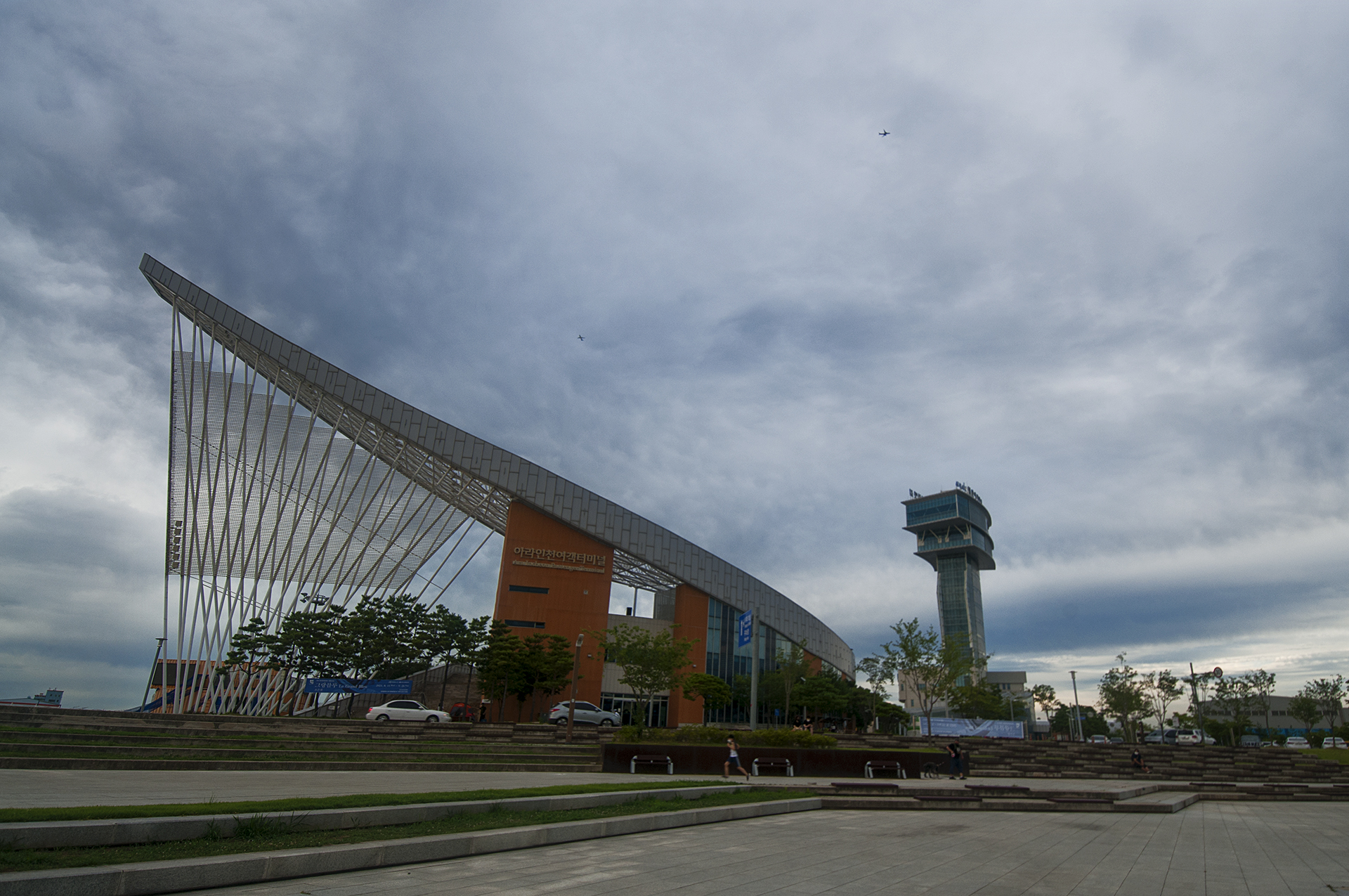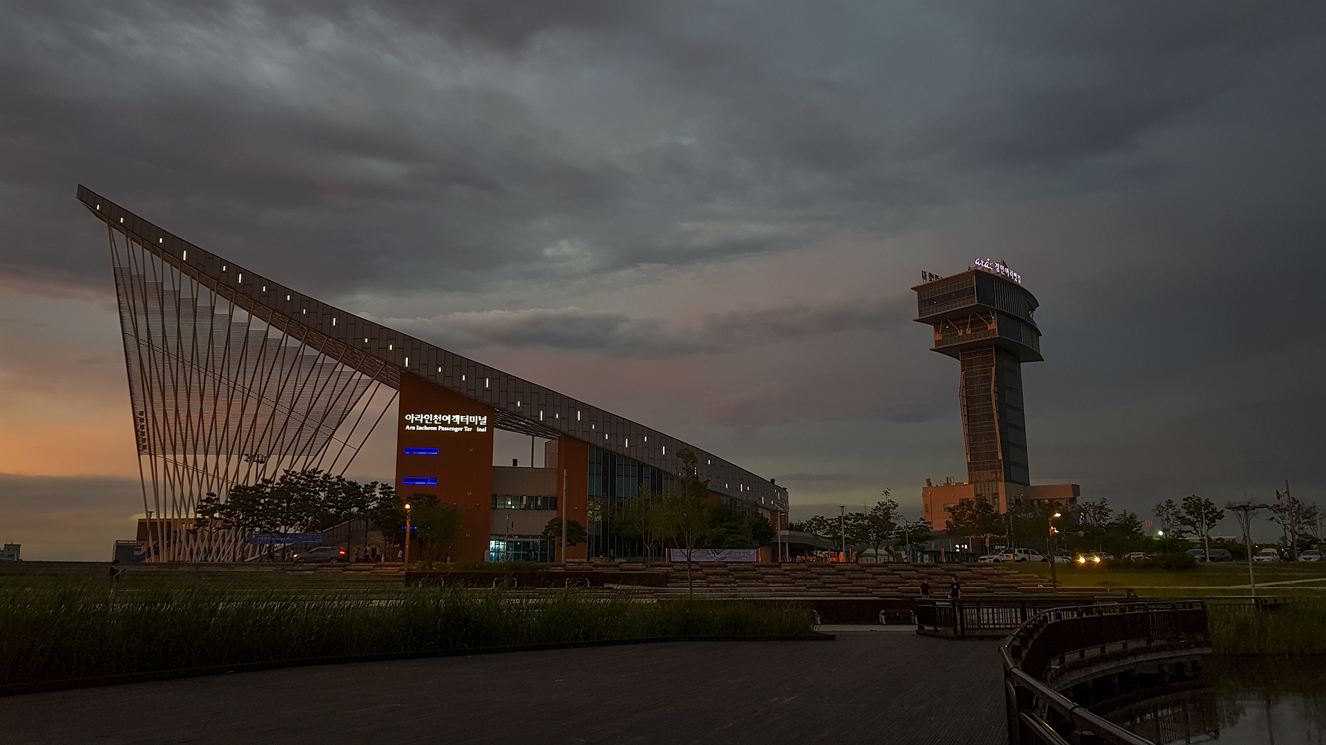아라인천여객터미널과 아라타워의 모습.