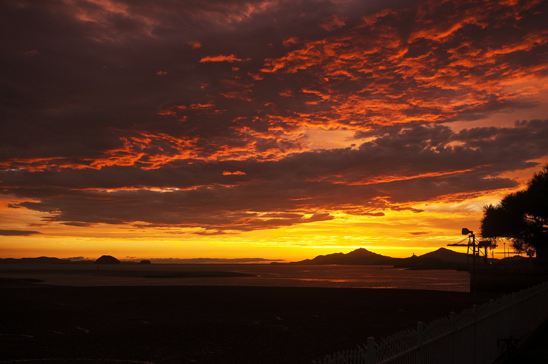 해가 떨어진 후 붉게 물든 하늘에 노을빛이 장관을 연출하고 있다.