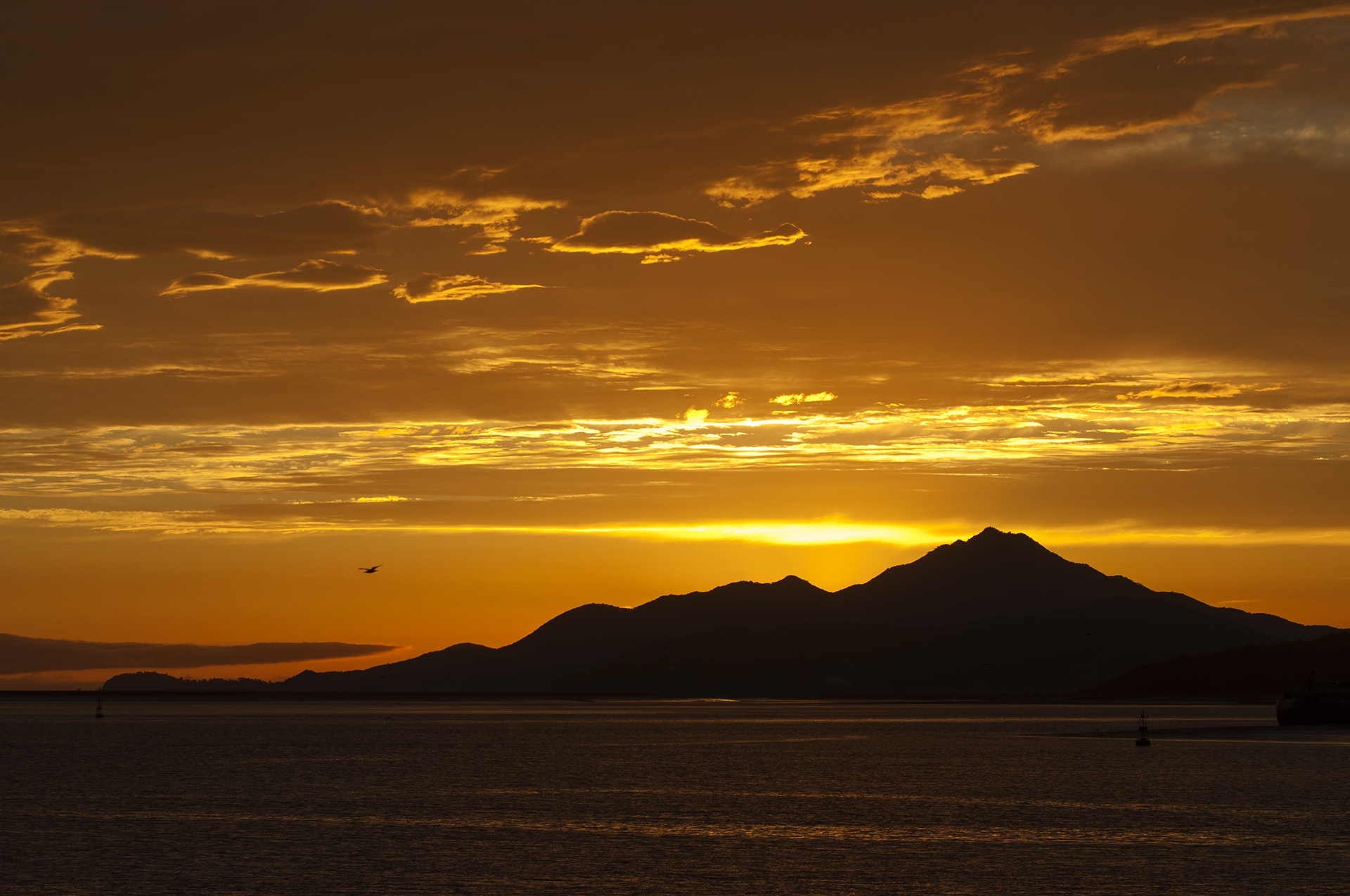 갈매기 한마리의 멋진 비행과 함께 해는 다시 구름 속으로 빨려들어 가는 중이다.