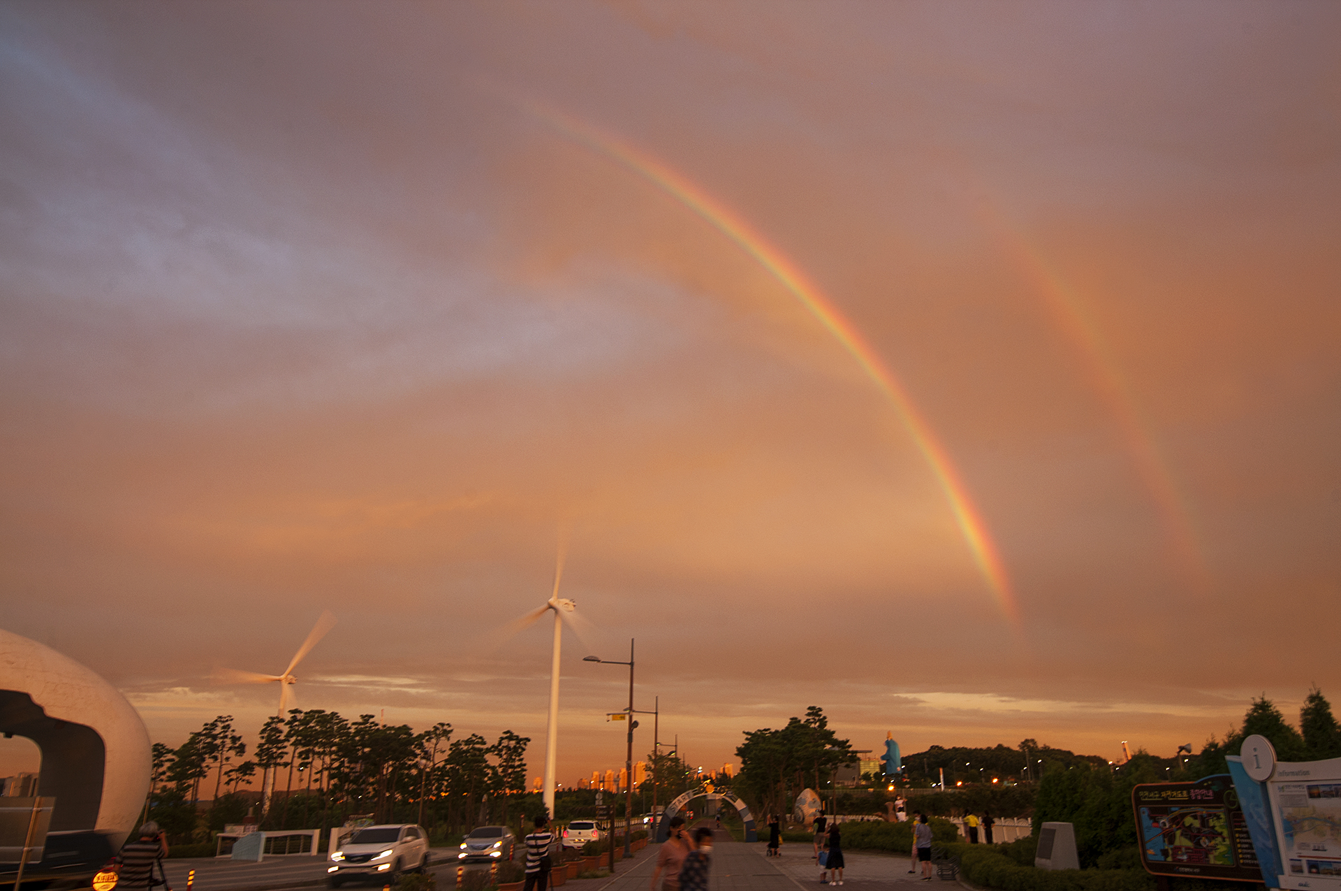 쌍무지개가 떻다. 처음엔 오른쪽만 보이는 상태.