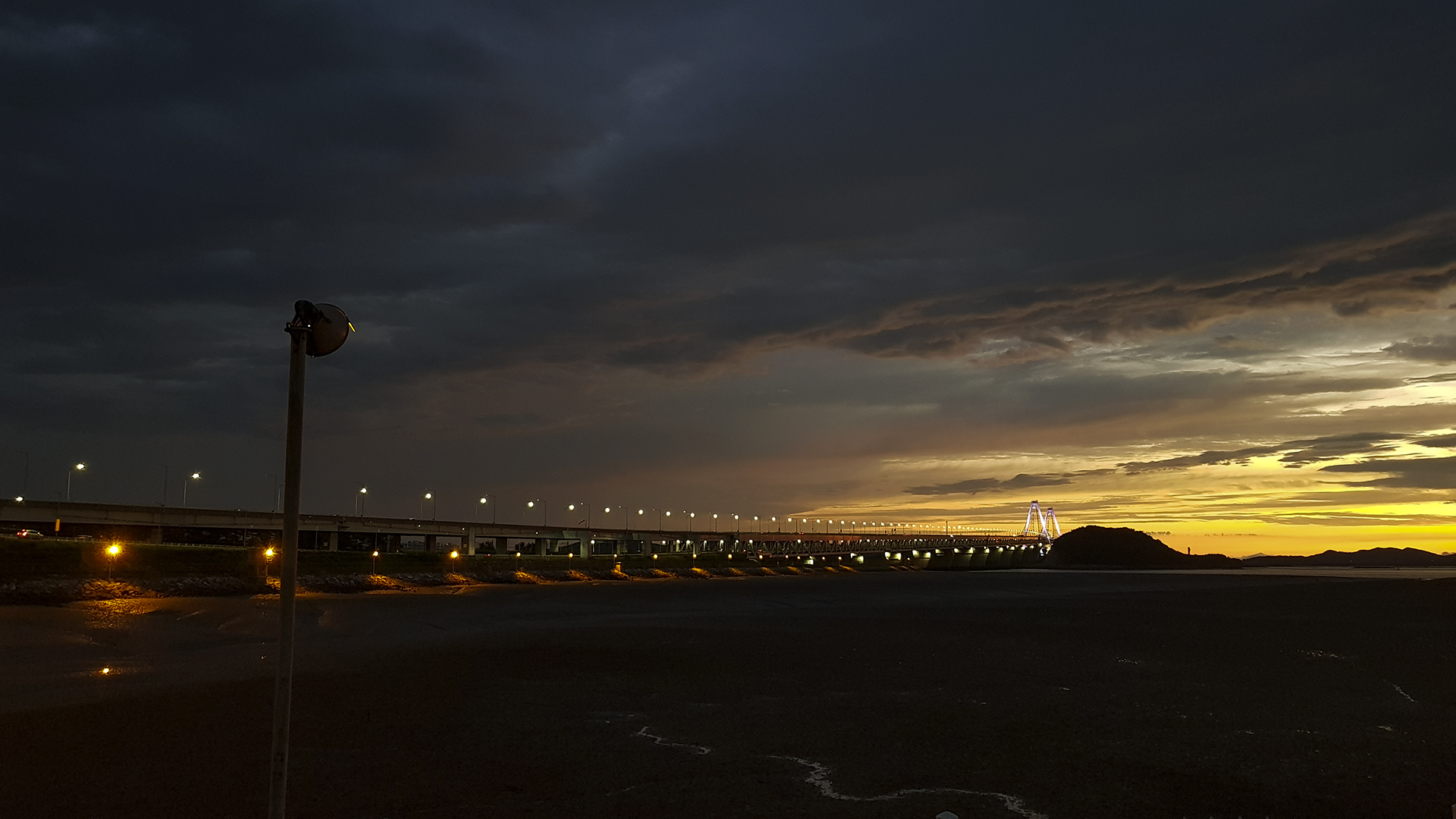 미련을 남긴채 다시 아라마루로 돌아가는 중에 아직도 노을빛이 좋아 영종대교 야경을 한컷 담아본다.